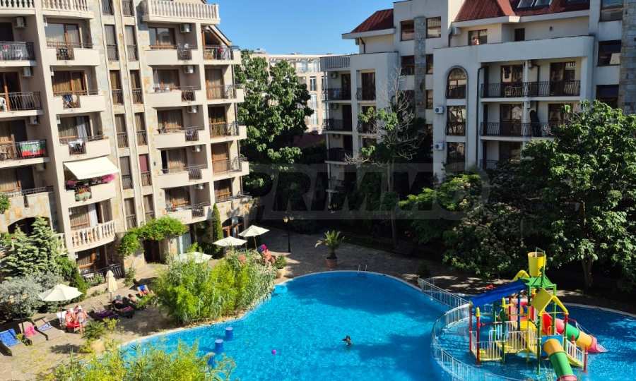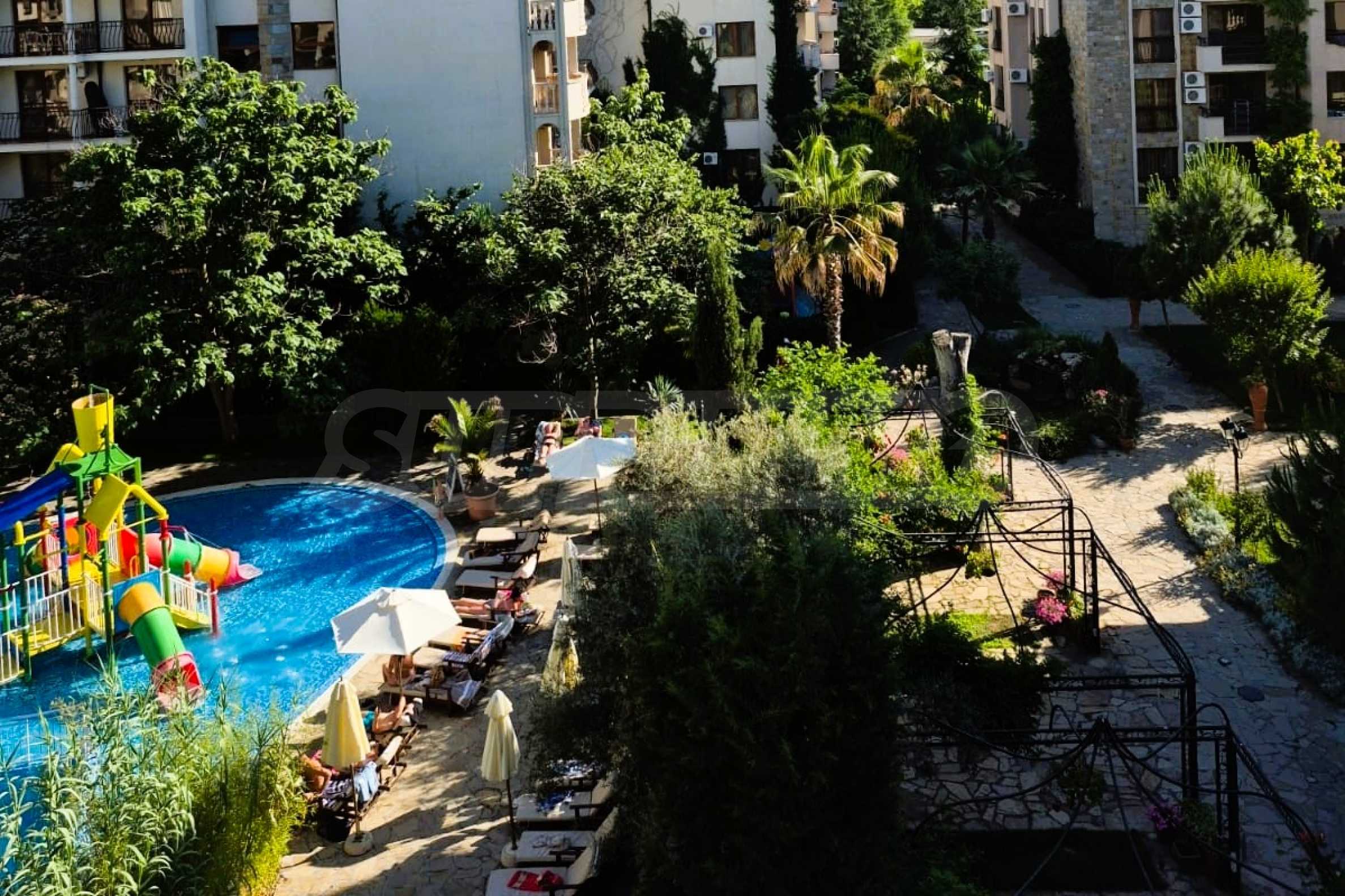 Wir bieten Ihnen ein Ein-Zimmer-Apartment in einem exklusiven Komplex mit vielen Annehmlichkeiten in Meeresnähe in Sunny Beach zum Kauf an.