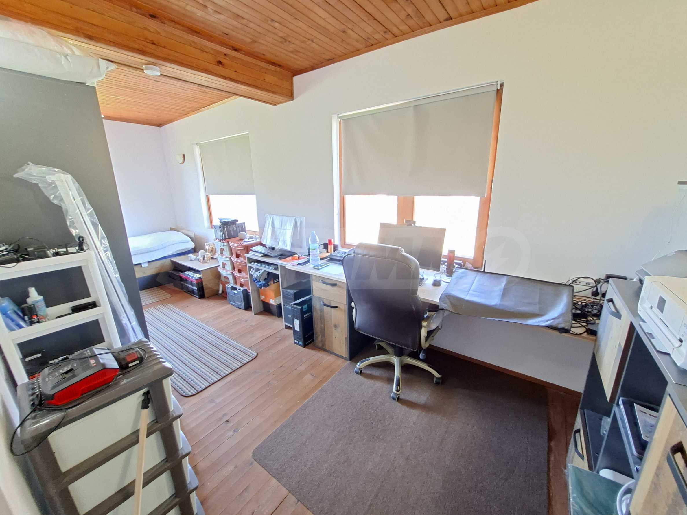 • Arbeitszimmer und Schlafzimmer (derzeit kombiniert, aber mit der Möglichkeit der Trennung), Badezimmer mit angeschlossener Toilette;