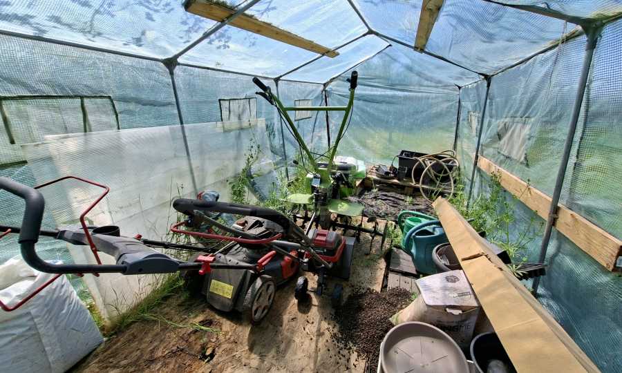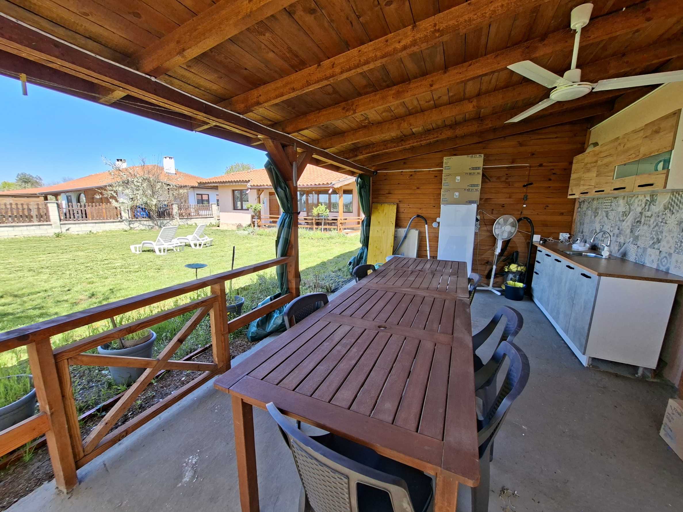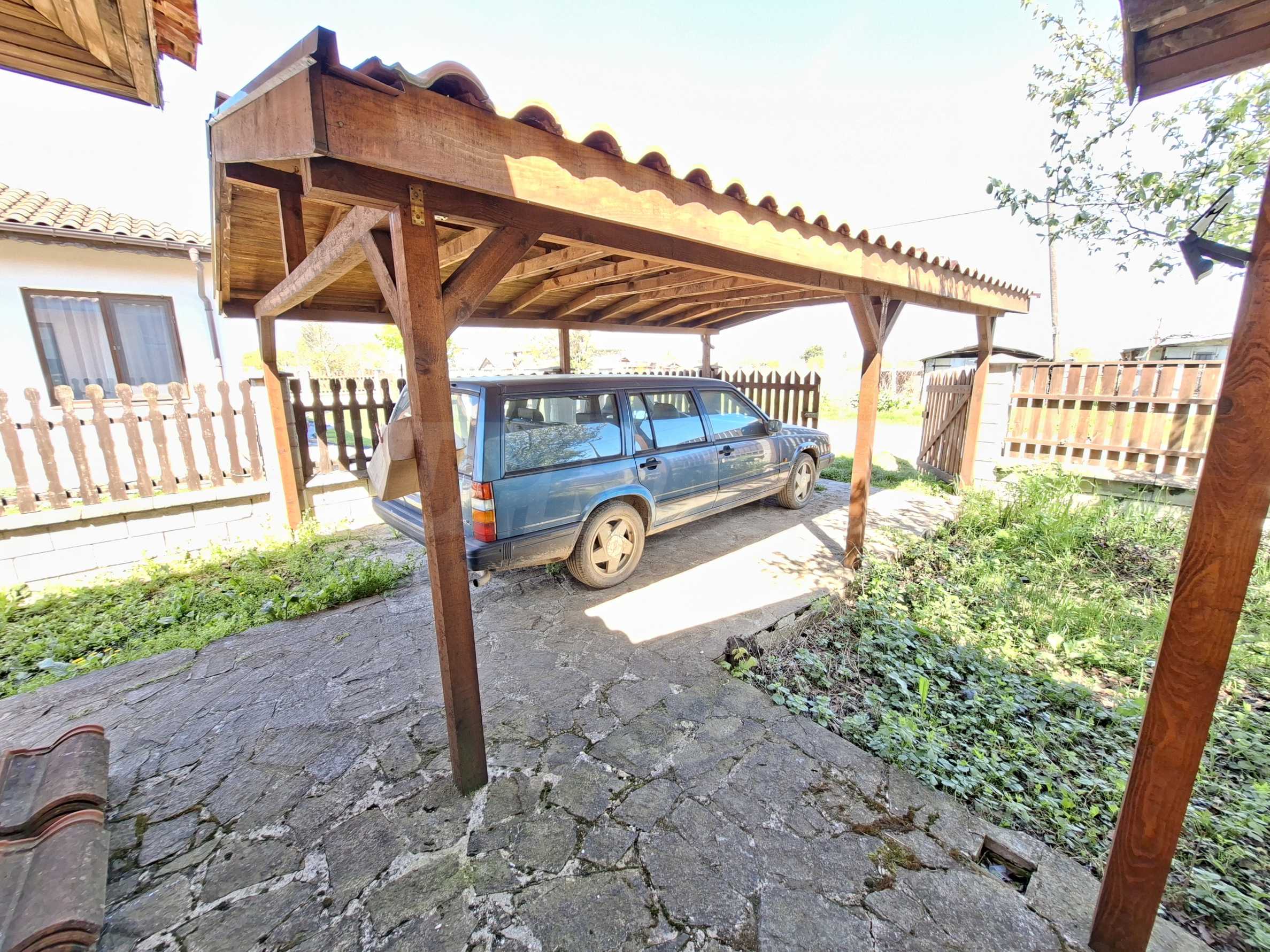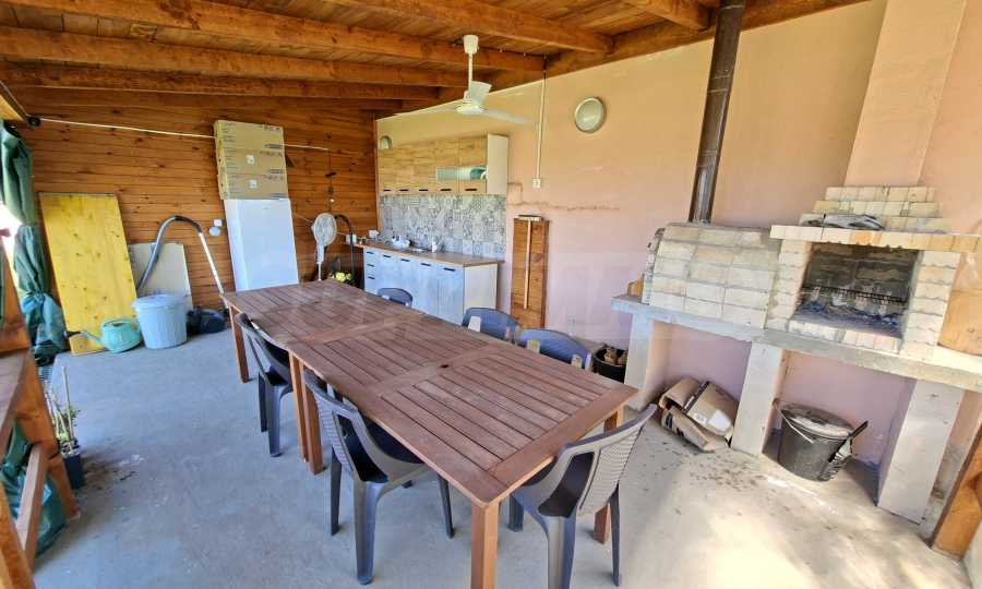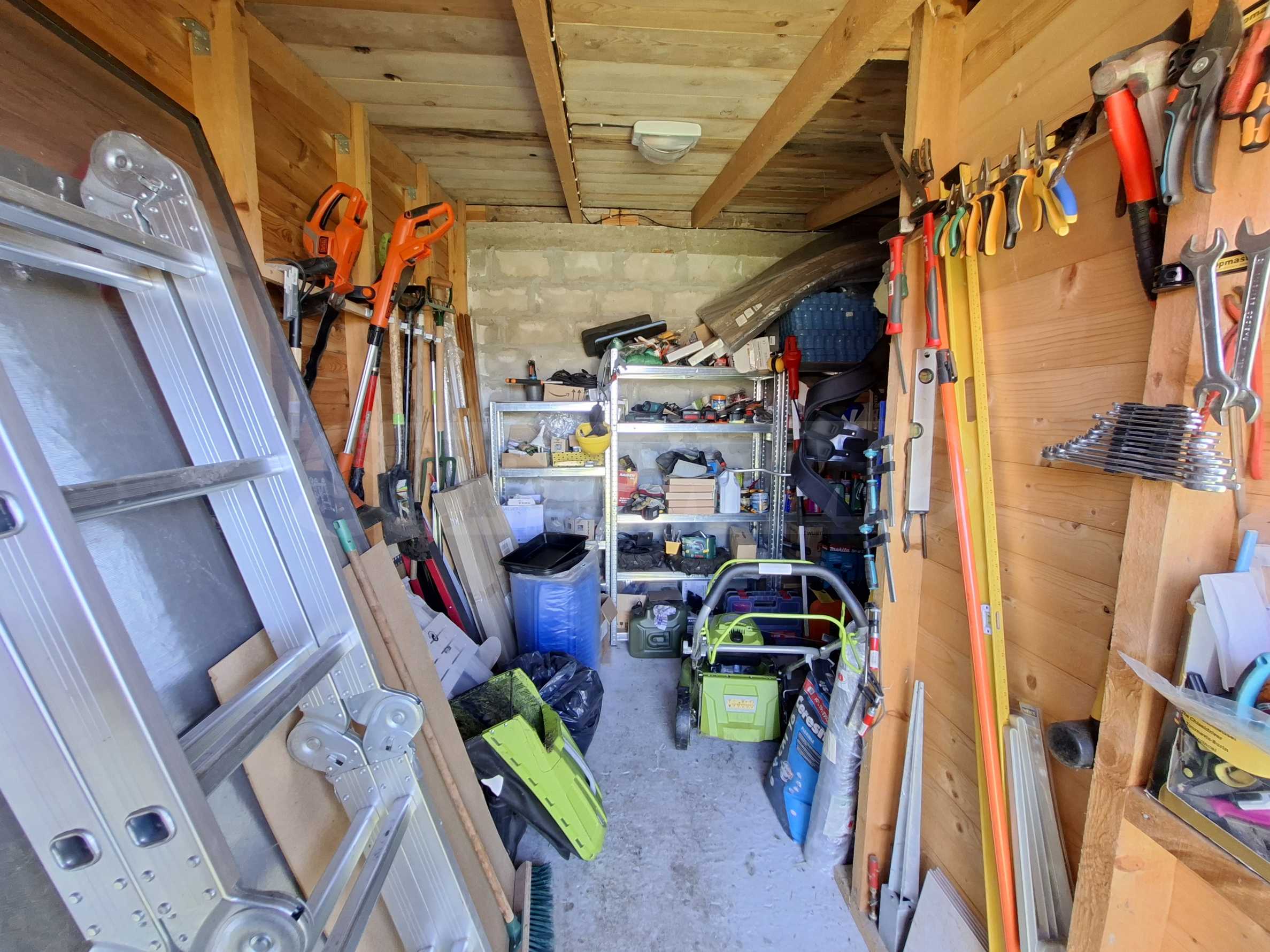 Der 1000 m² große Garten ist gepflegt und schön angelegt. Er verfügt über eine voll ausgestattete Sommerküche (40 m²), eine Toilette und eine Werkstatt mit verschiedenen Werkzeugen. Außerdem gibt es ein kleines mobiles Gewächshaus. Am Eingang befindet sich ein überdachter Parkplatz.
