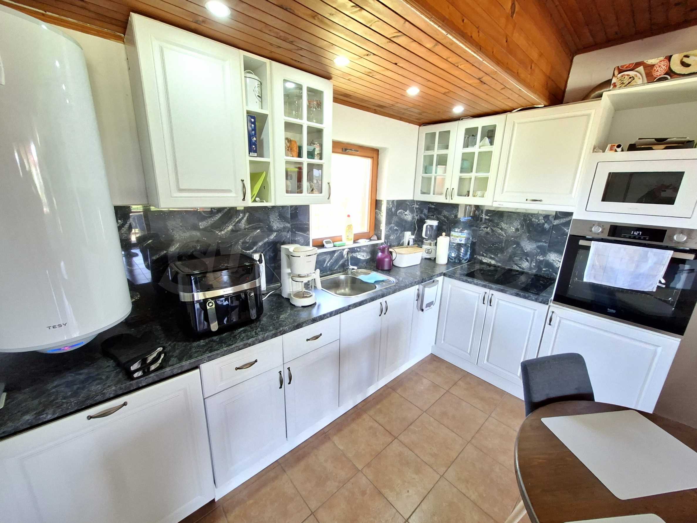 Das Haus wird komplett möbliert verkauft, wie auf den Fotos zu sehen, und ist sofort bezugsfertig. Beheizt wird es mit einem Ofen und Klimaanlagen.