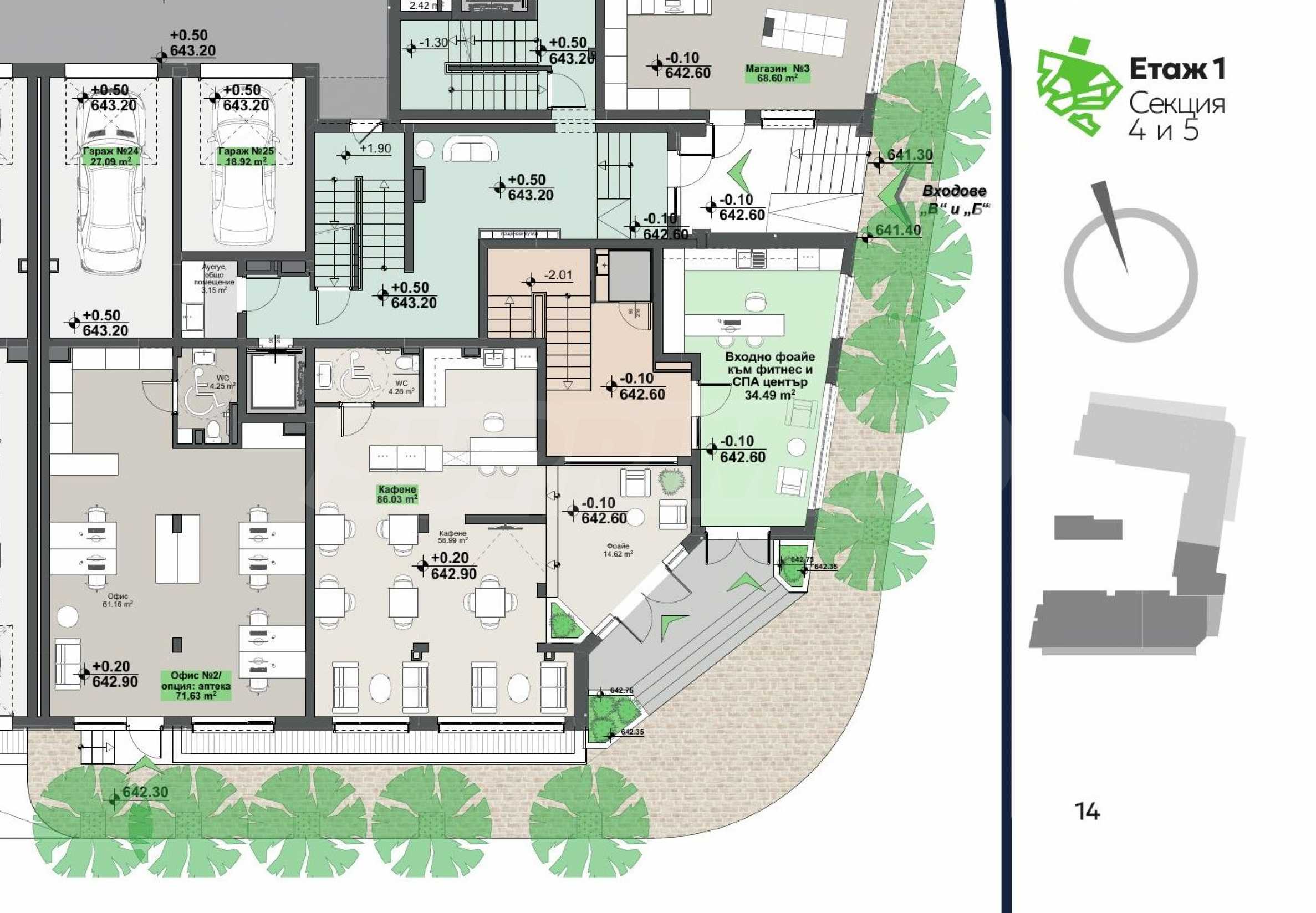 • direkte Anbindung an die Fußgängerzone des Komplexes und einen Besucherstrom aus den benachbarten Bereichen Fitness, Wellness, Büros und Einzelhandelsgeschäften.