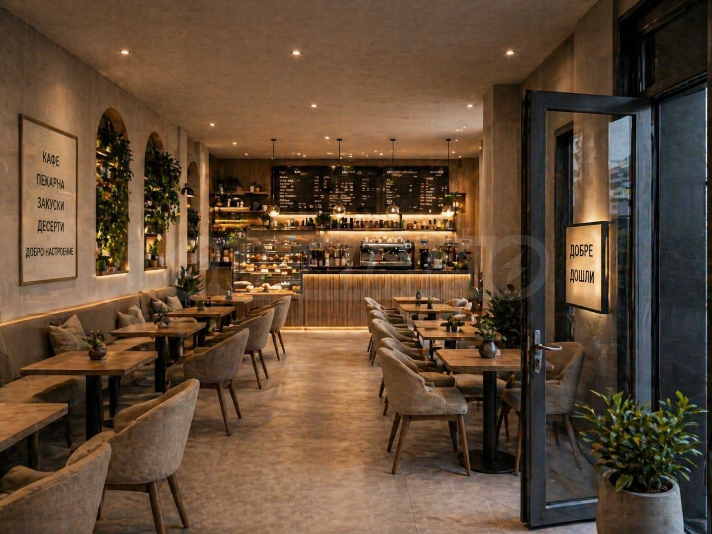 • Hauptverkaufshalle (58,99 m²) mit der Möglichkeit verschiedener Konfigurationen – Tische für Einzelbesucher, kleine Gruppen und Lounge-Bereiche;