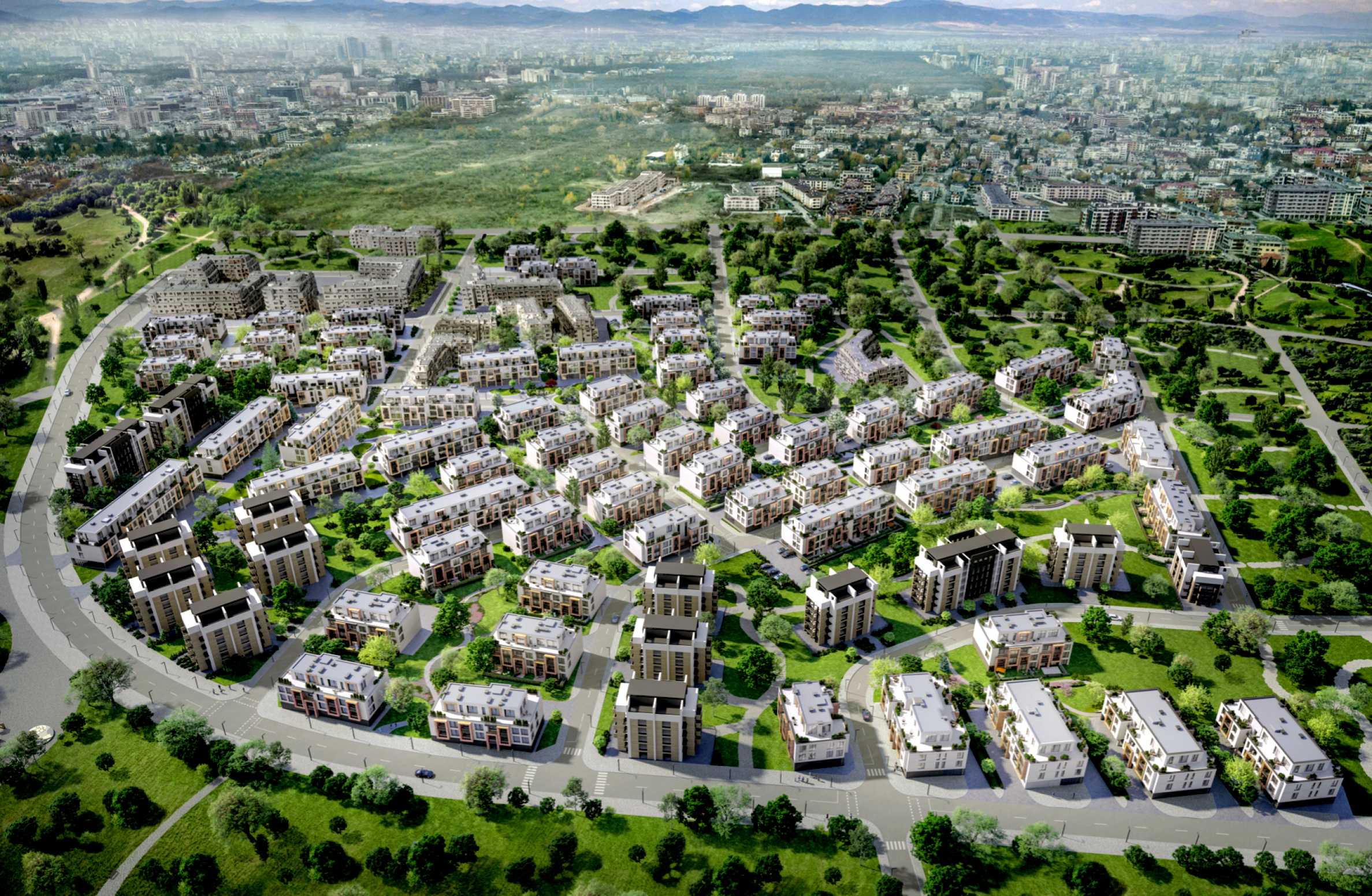 Das Projekt erstreckt sich über mehr als 170 Hektar und setzt neue Maßstäbe für urbanes Wohnen. Es vereint moderne Architektur, eine ansprechende Landschaftsgestaltung und eine hervorragende Infrastruktur. Die Lage nahe dem südlichen Abschnitt des Autobahnrings, „Simeonovsko Shose“, und einer zukünftigen U-Bahn-Station ermöglicht eine schnelle Anbindung an alle wichtigen Punkte der Hauptstadt. Die gesamte angrenzende Infrastruktur – interne Straßen, Wasserversorgung, Abwasserentsorgung und die direkte Anbindung an den Autobahnring – ist Teil des Investitionsplans und wird vor der Inbetriebnahme vollständig fertiggestellt sein.