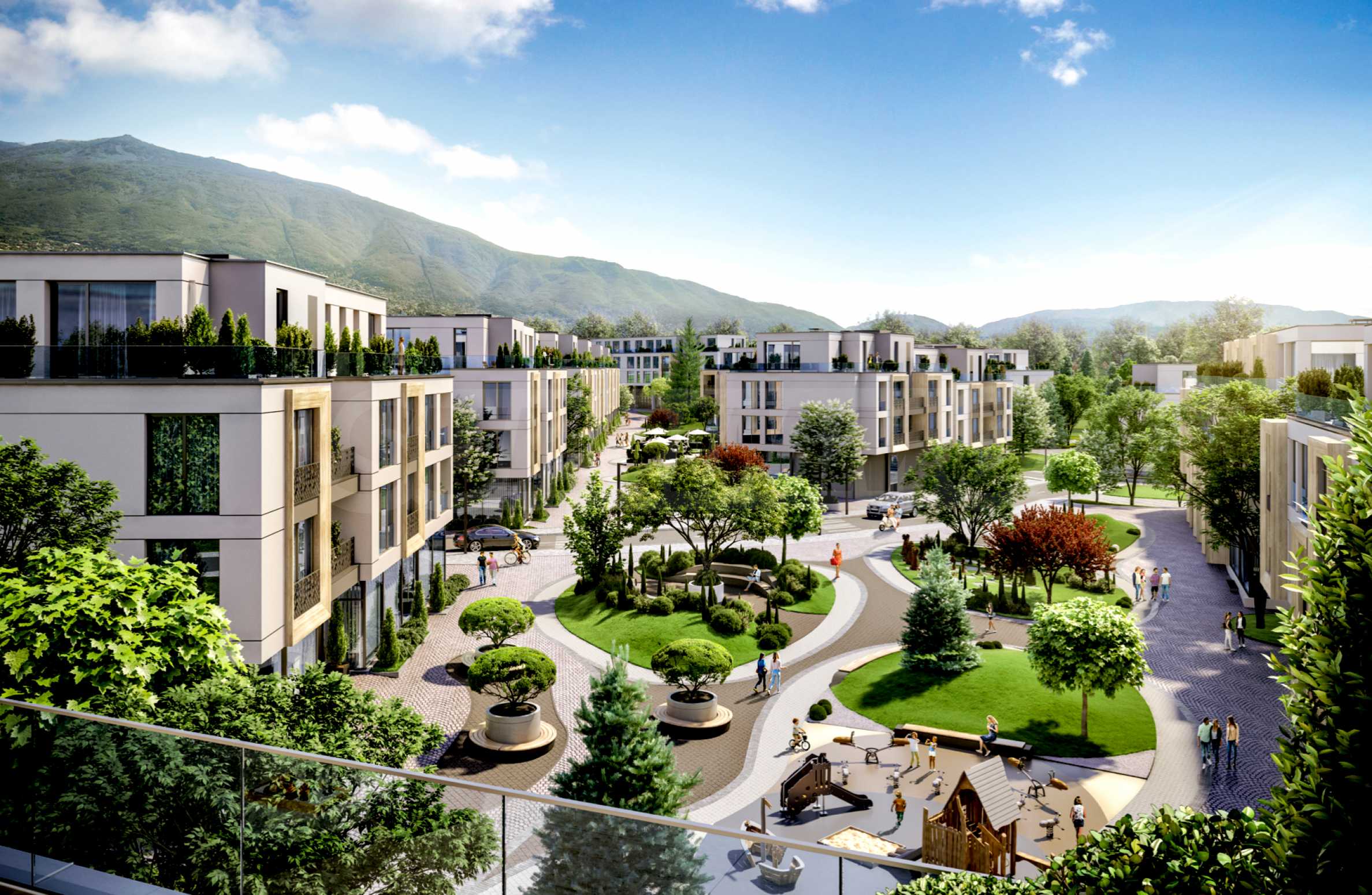 • ein Park mit Sport- und Erholungsbereichen - das Mikroklima in der Gegend wird auf natürliche Weise durch die Nähe zum Vitosha-Gebirge beeinflusst, was in den Sommermonaten für frischere Luft und mehr Komfort sorgt.