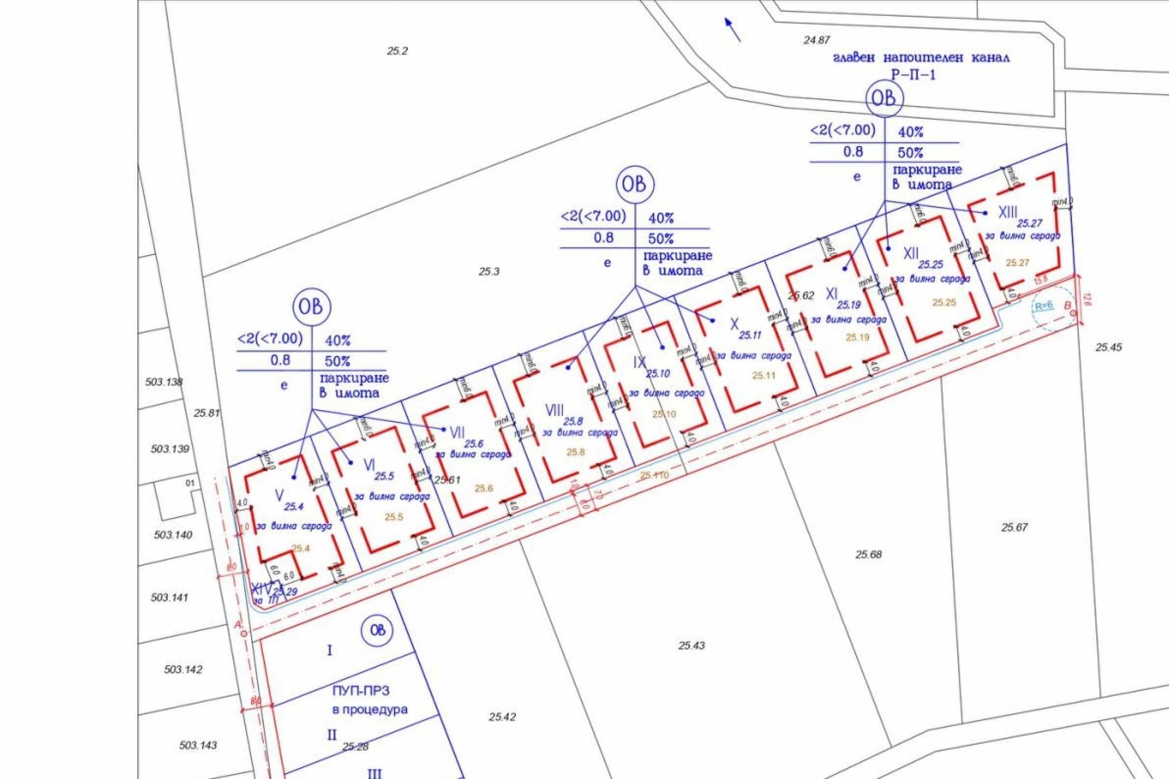 • Straßenfront: 26 m pro Grundstück;