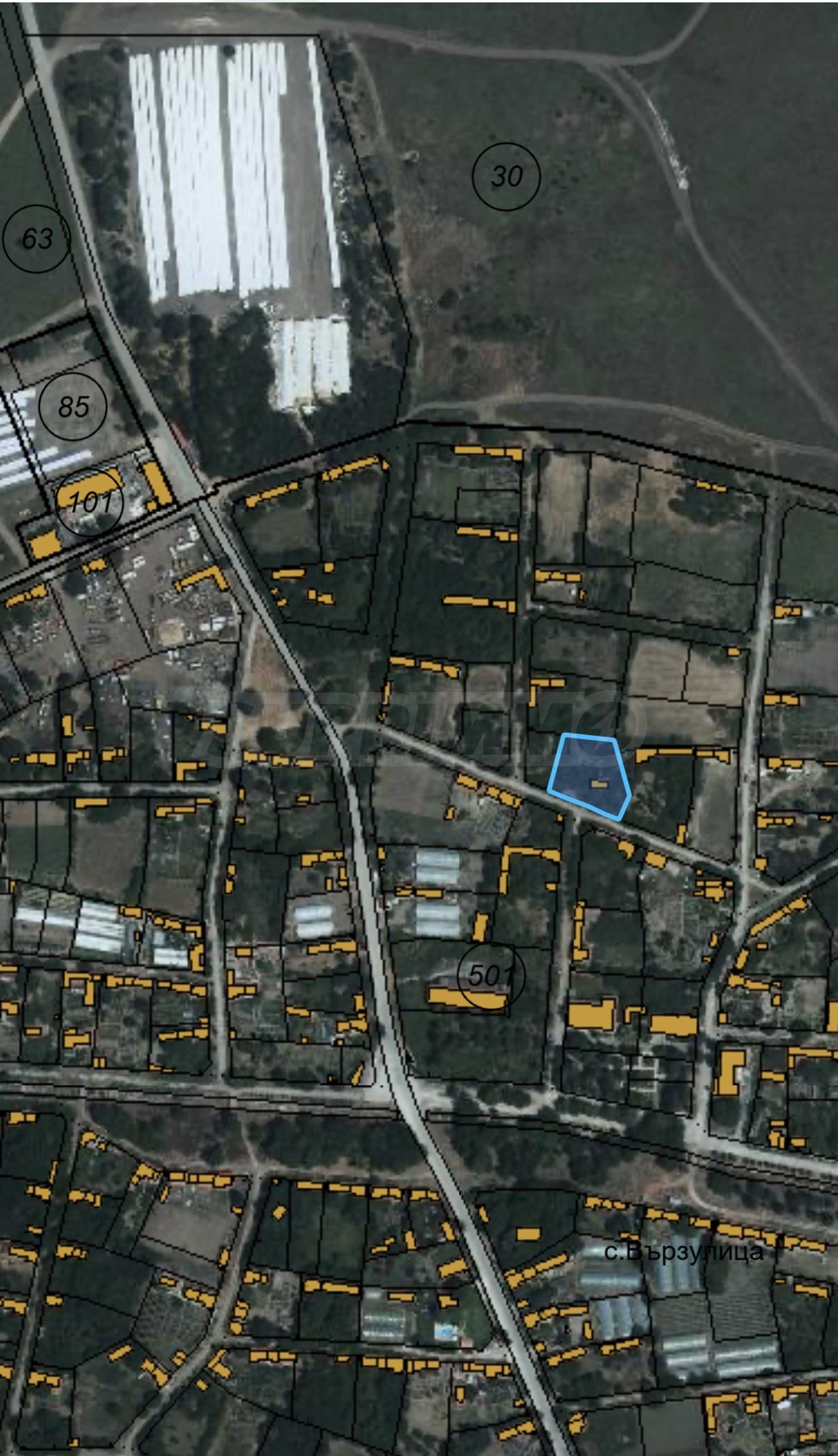 Wir bieten ein Grundstück mit einem halb abgerissenen zweistöckigen Haus in einem ruhigen und friedlichen Dorf mit guter Anbindung an Polski Trambesh an.