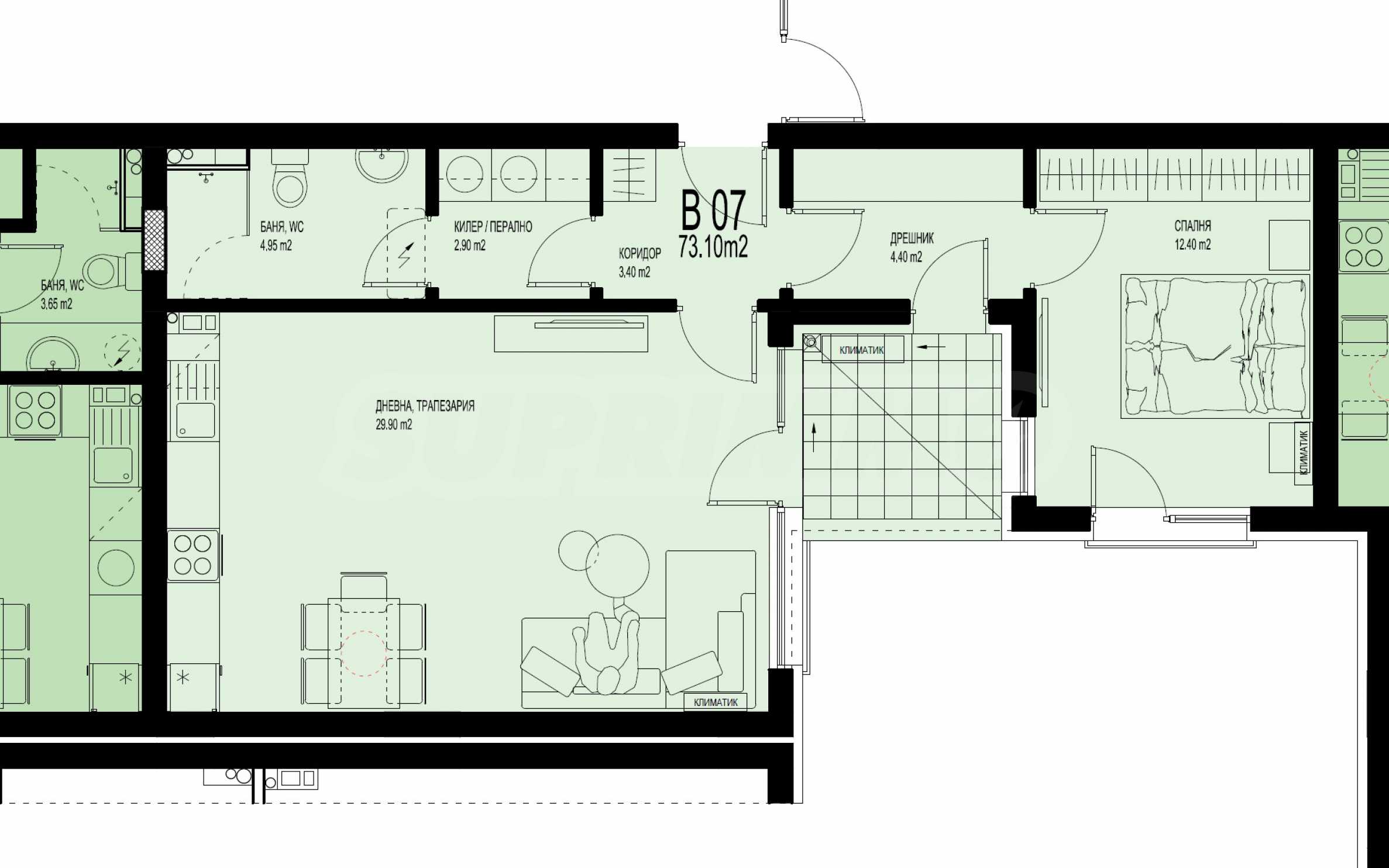 Die Wohnungen werden gemäß den bulgarischen Baunormen im fertiggestellten Zustand mit Putz und Estrich übergeben.