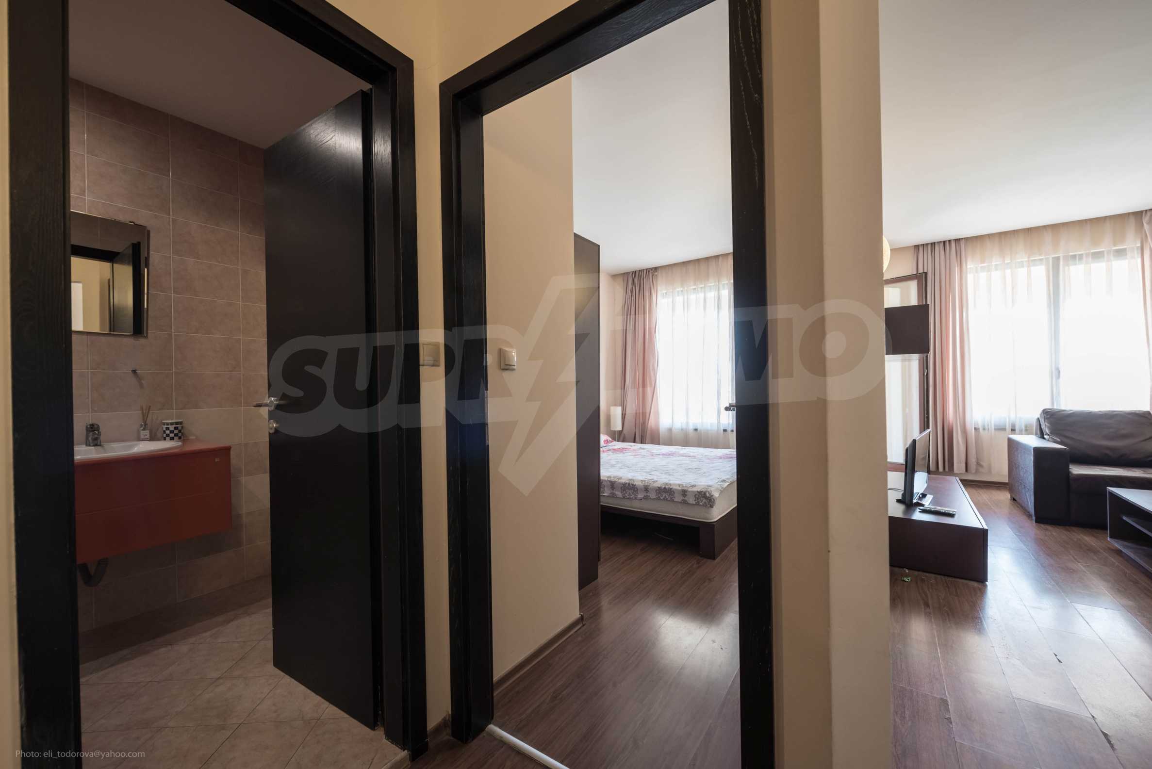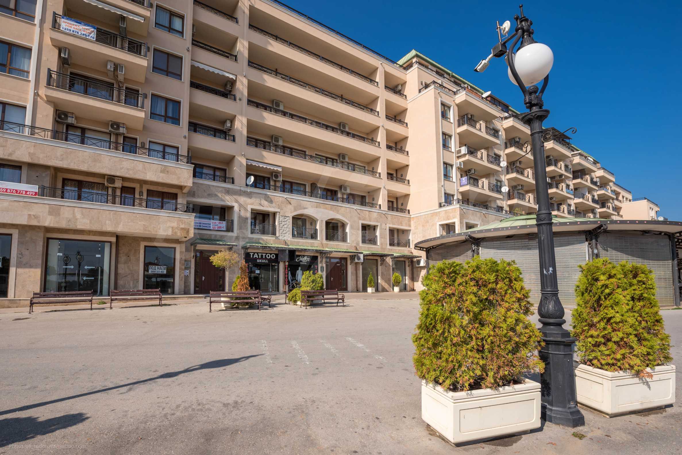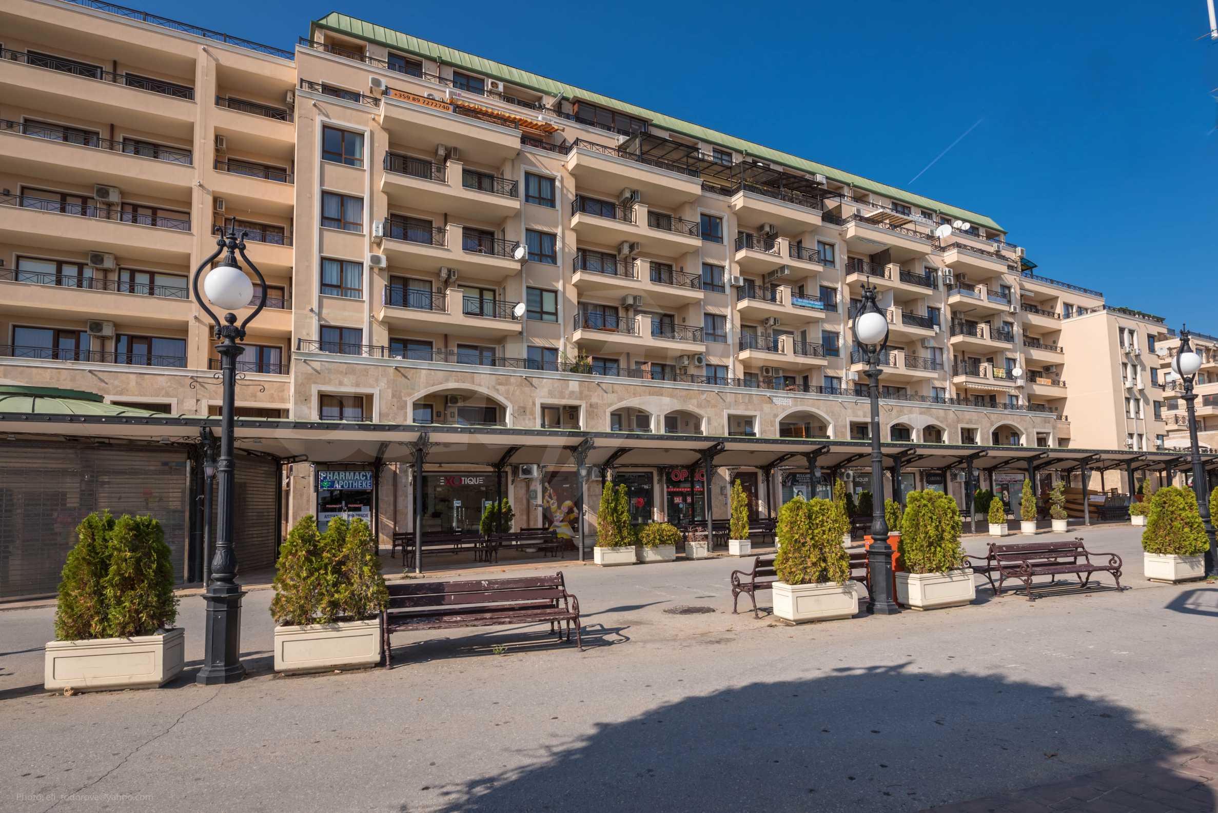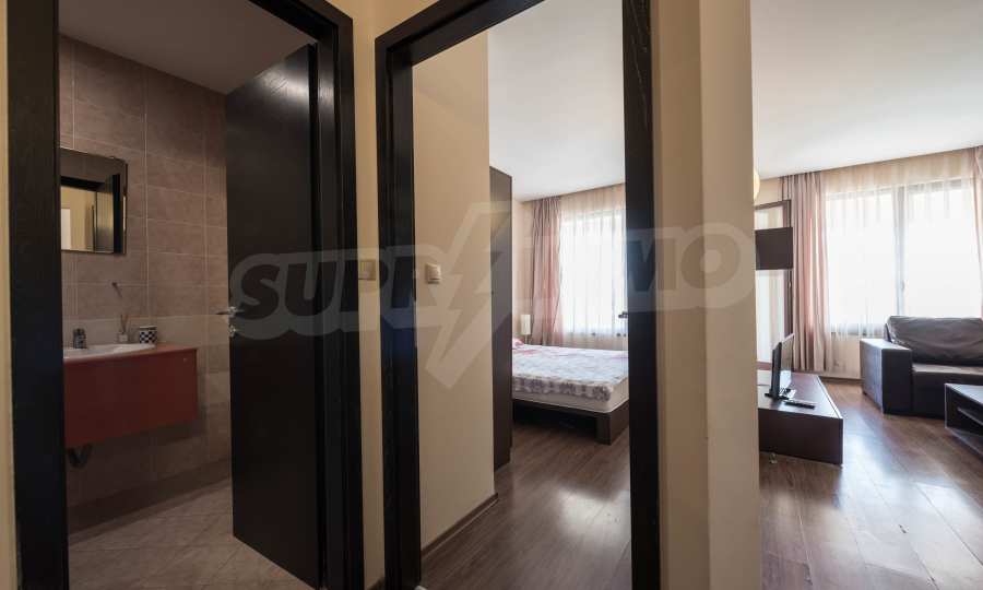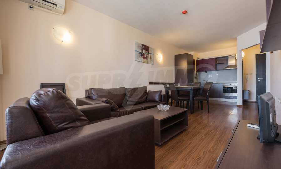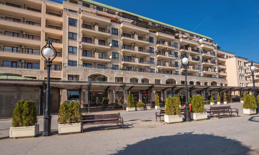 Die von uns angebotene Wohnung befindet sich im Komplex "Sirena Apartments" - einem modernen, neunstöckigen Luxus-Apartmentkomplex. Das Hotel liegt neben dem Strand im Herzen des Resorts. Goldener Sand.