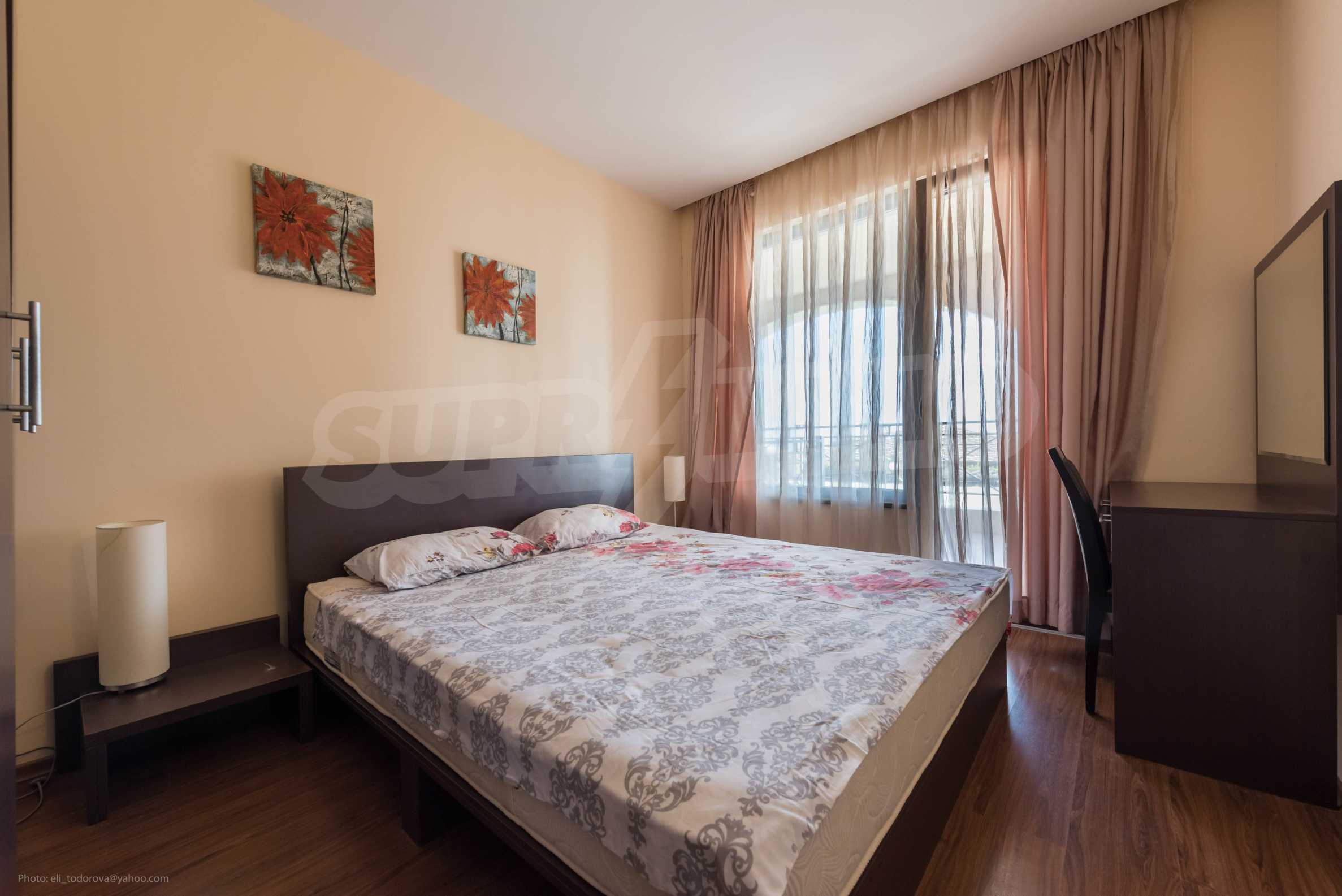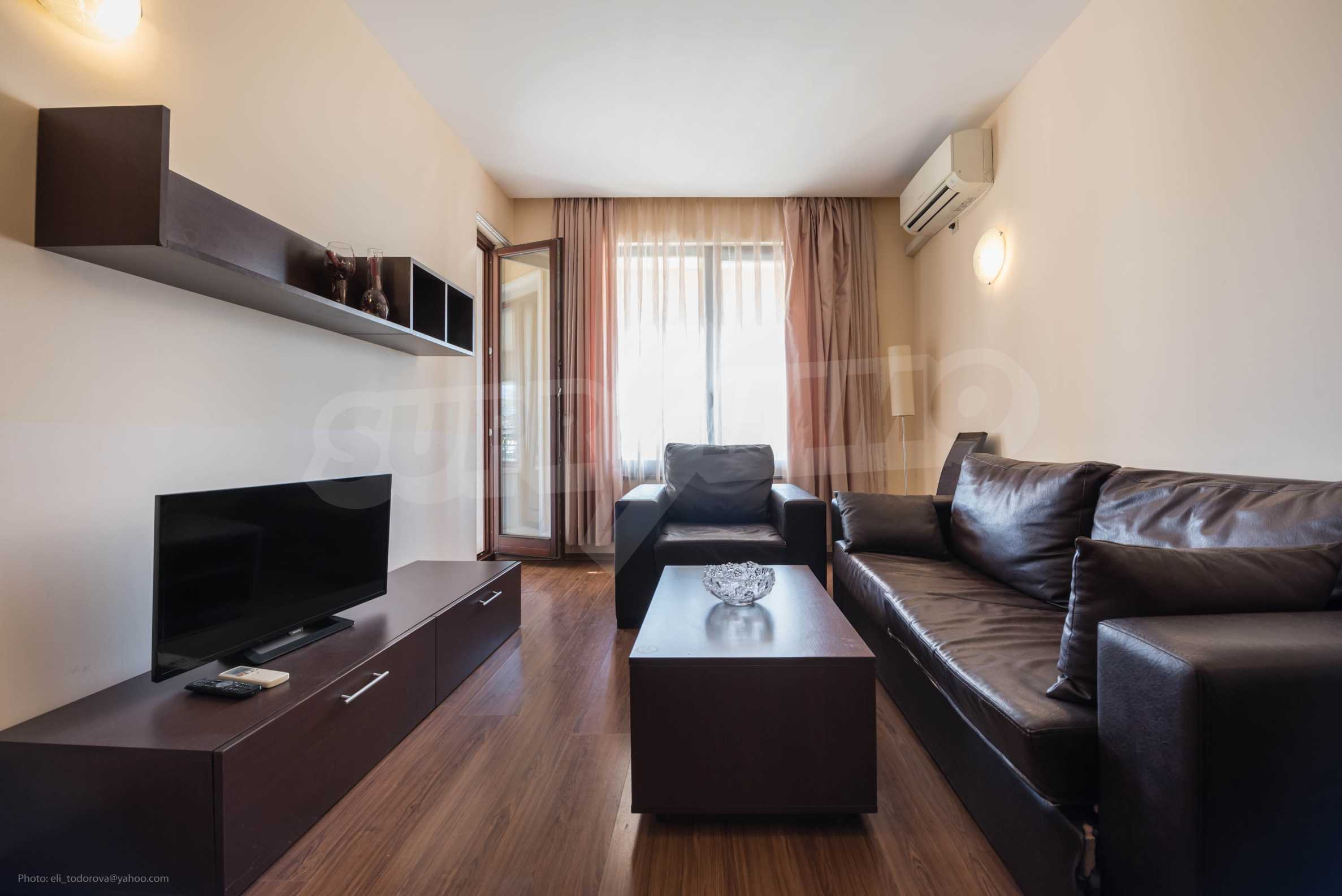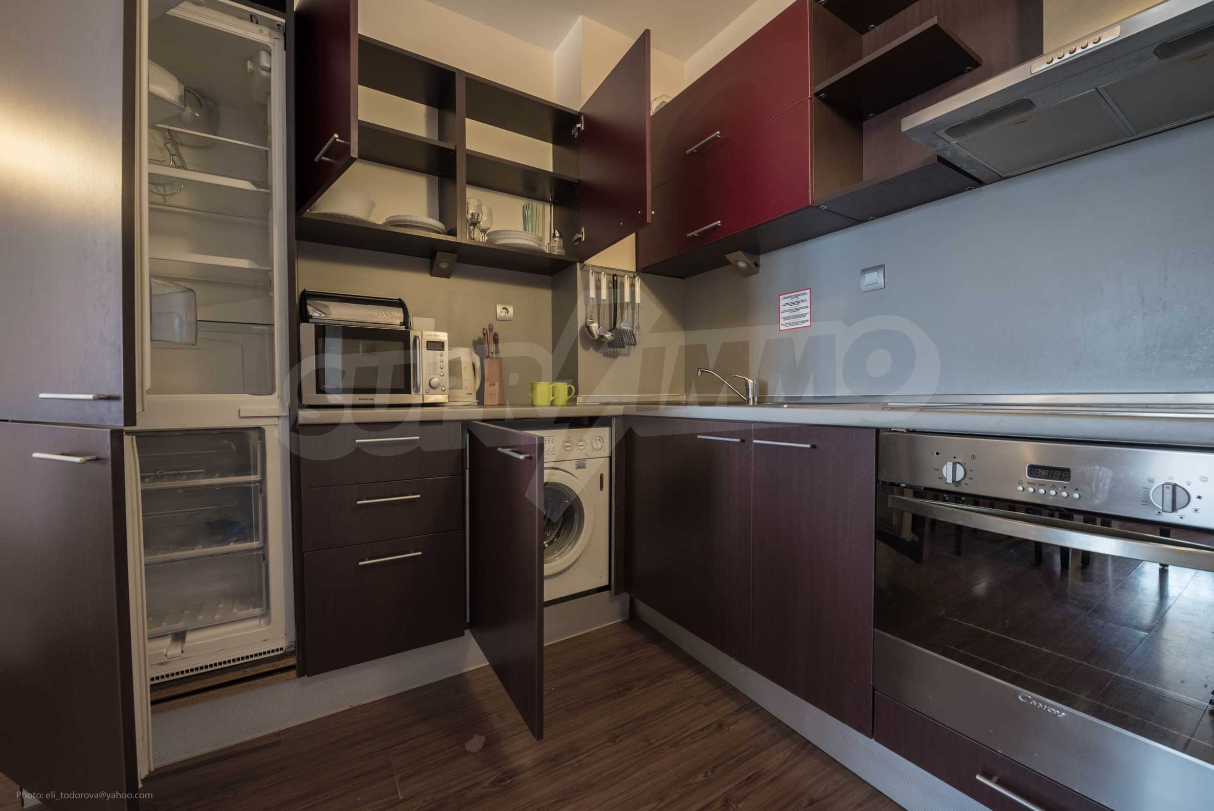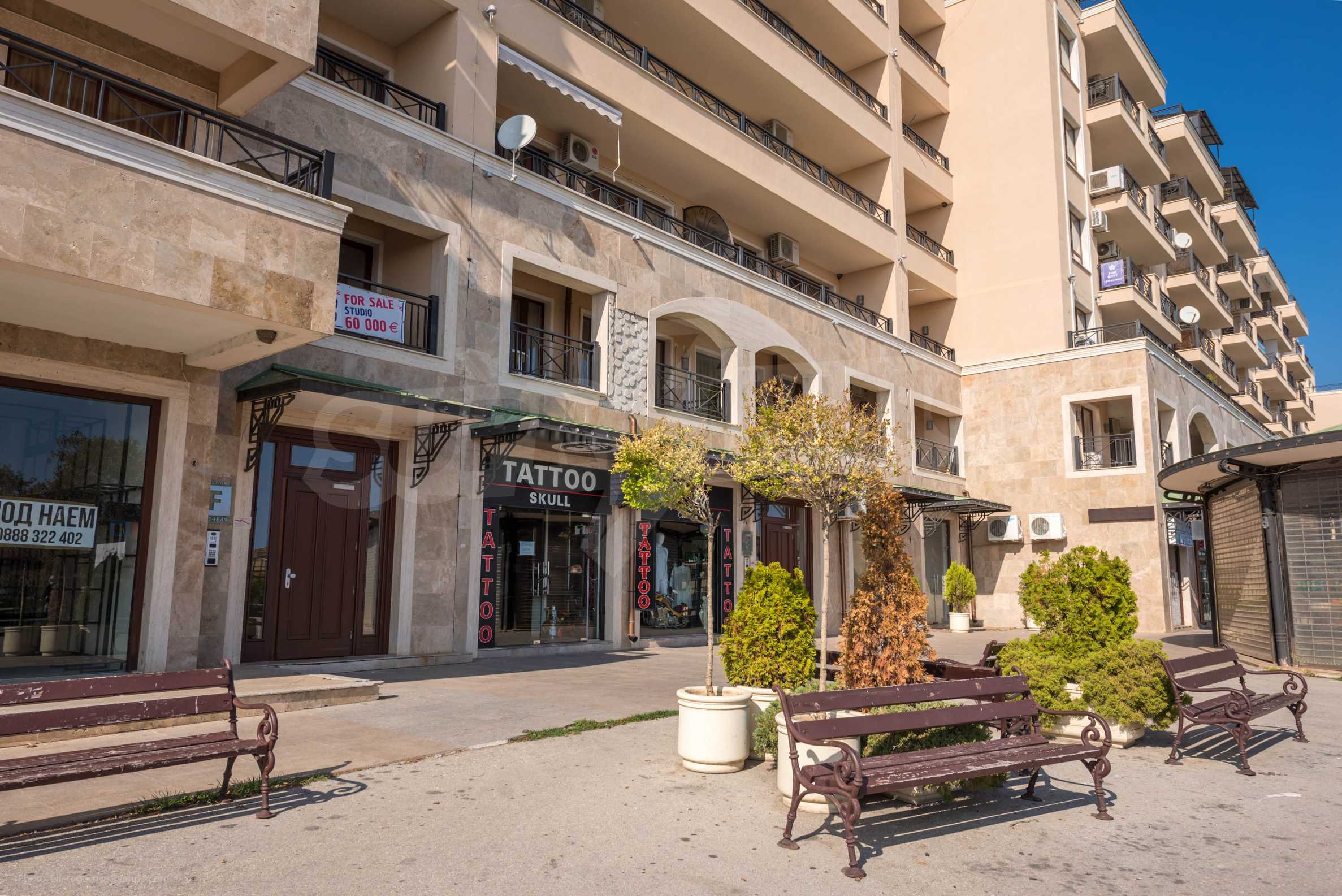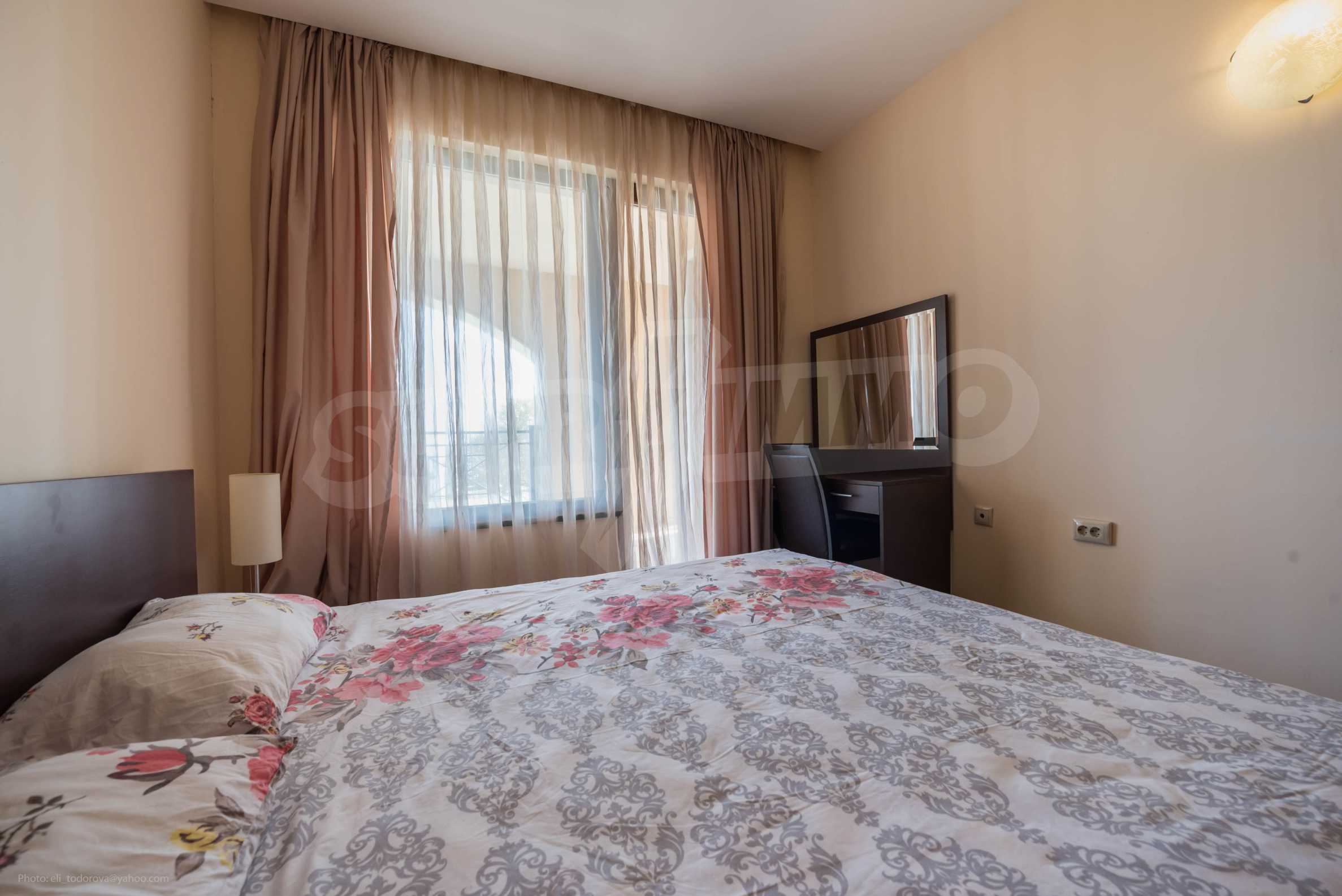 Die von uns angebotene Wohnung befindet sich im Komplex "Sirena Apartments" - einem modernen, neunstöckigen Luxus-Apartmentkomplex. Das Hotel liegt neben dem Strand im Herzen des Resorts. Goldener Sand.