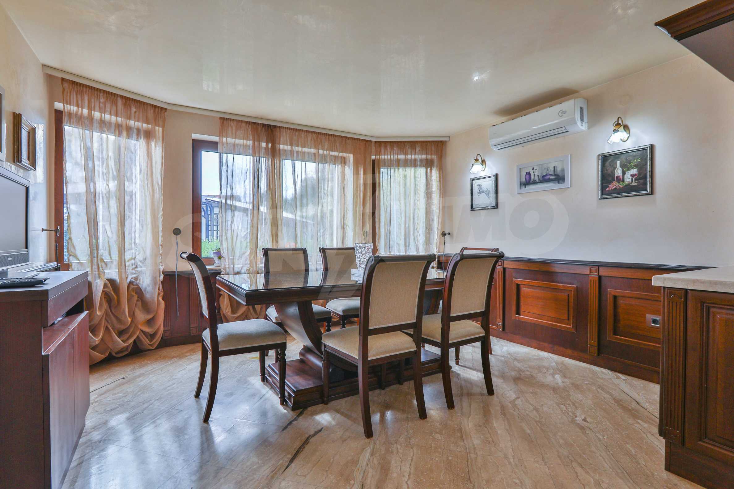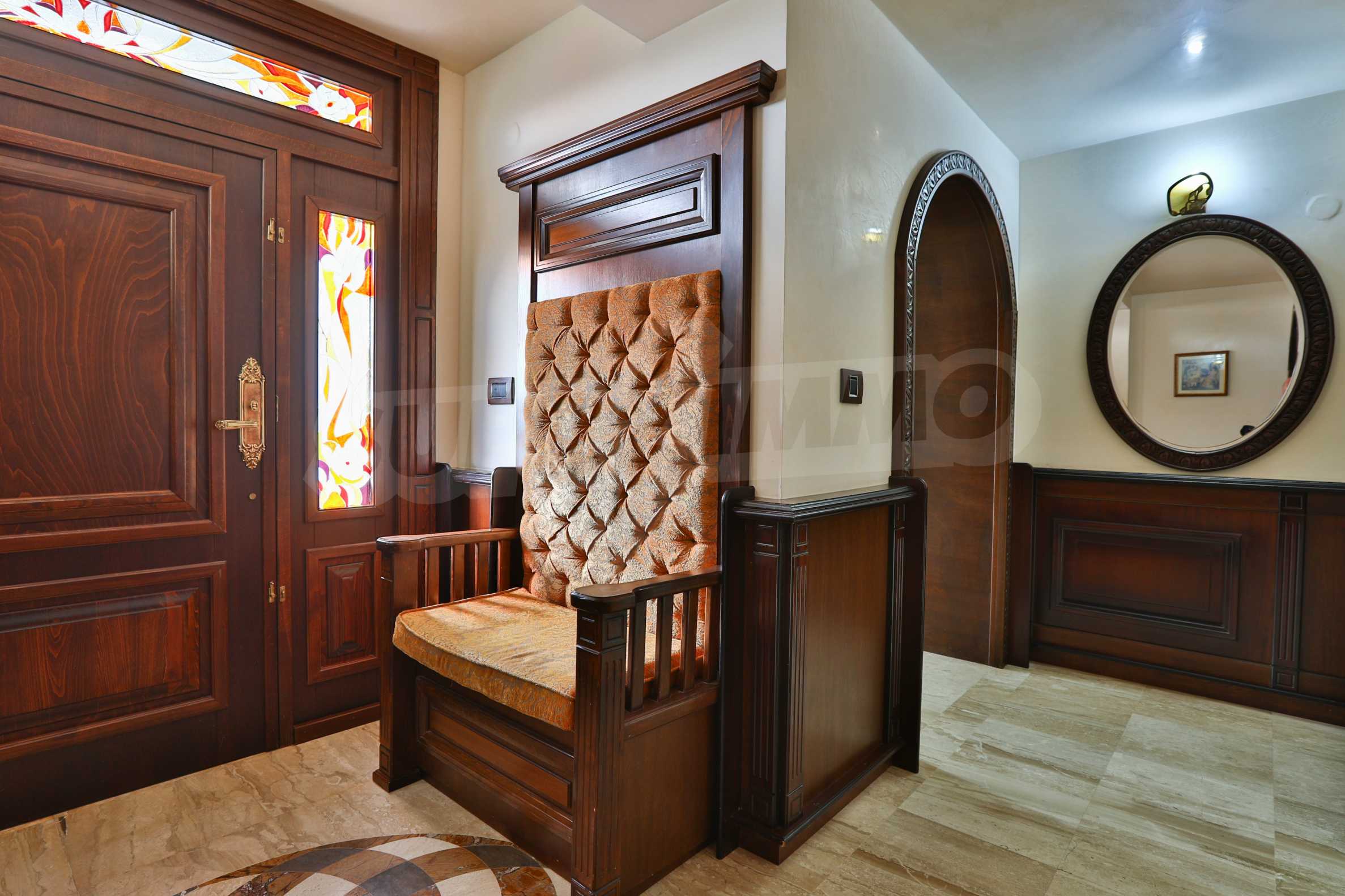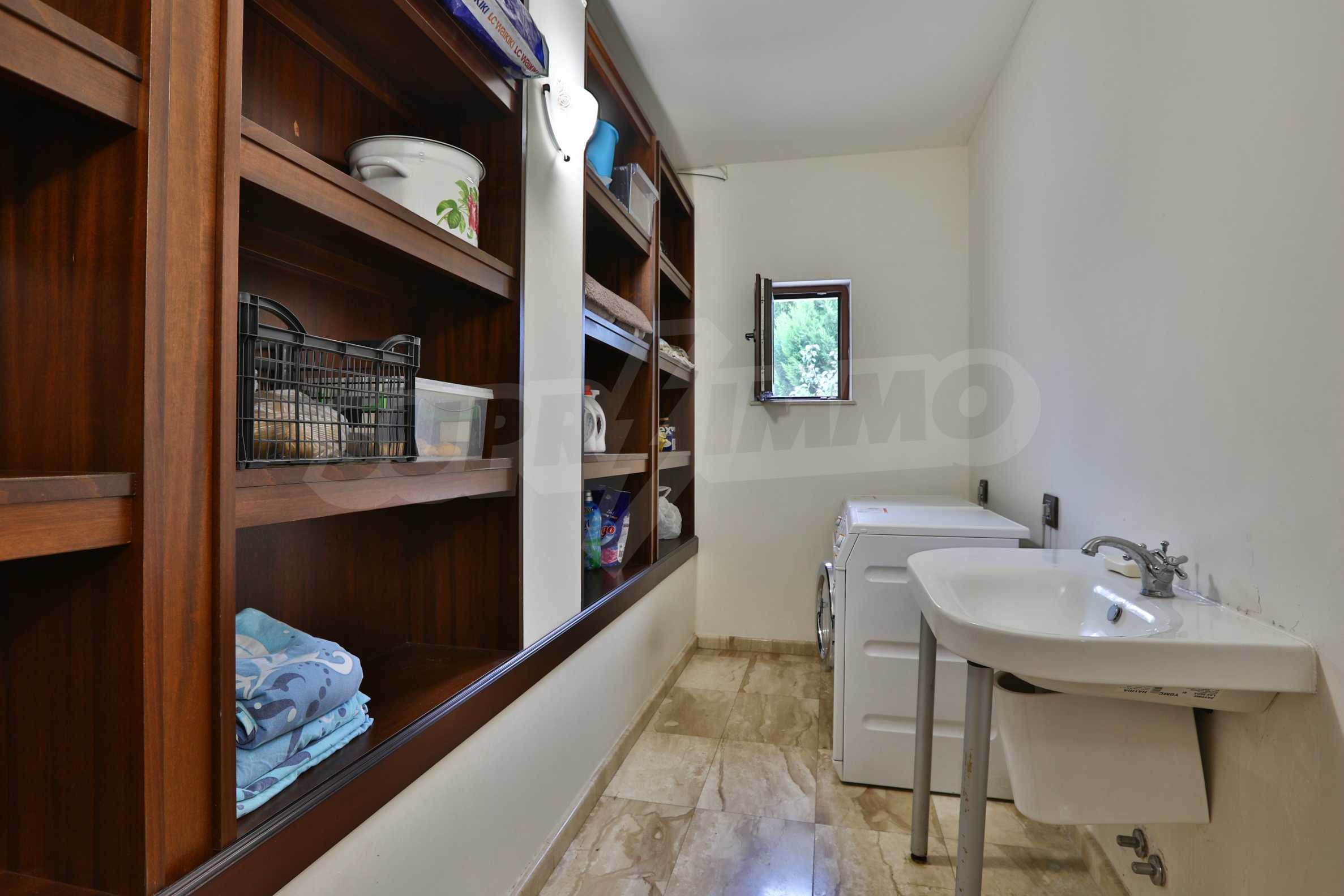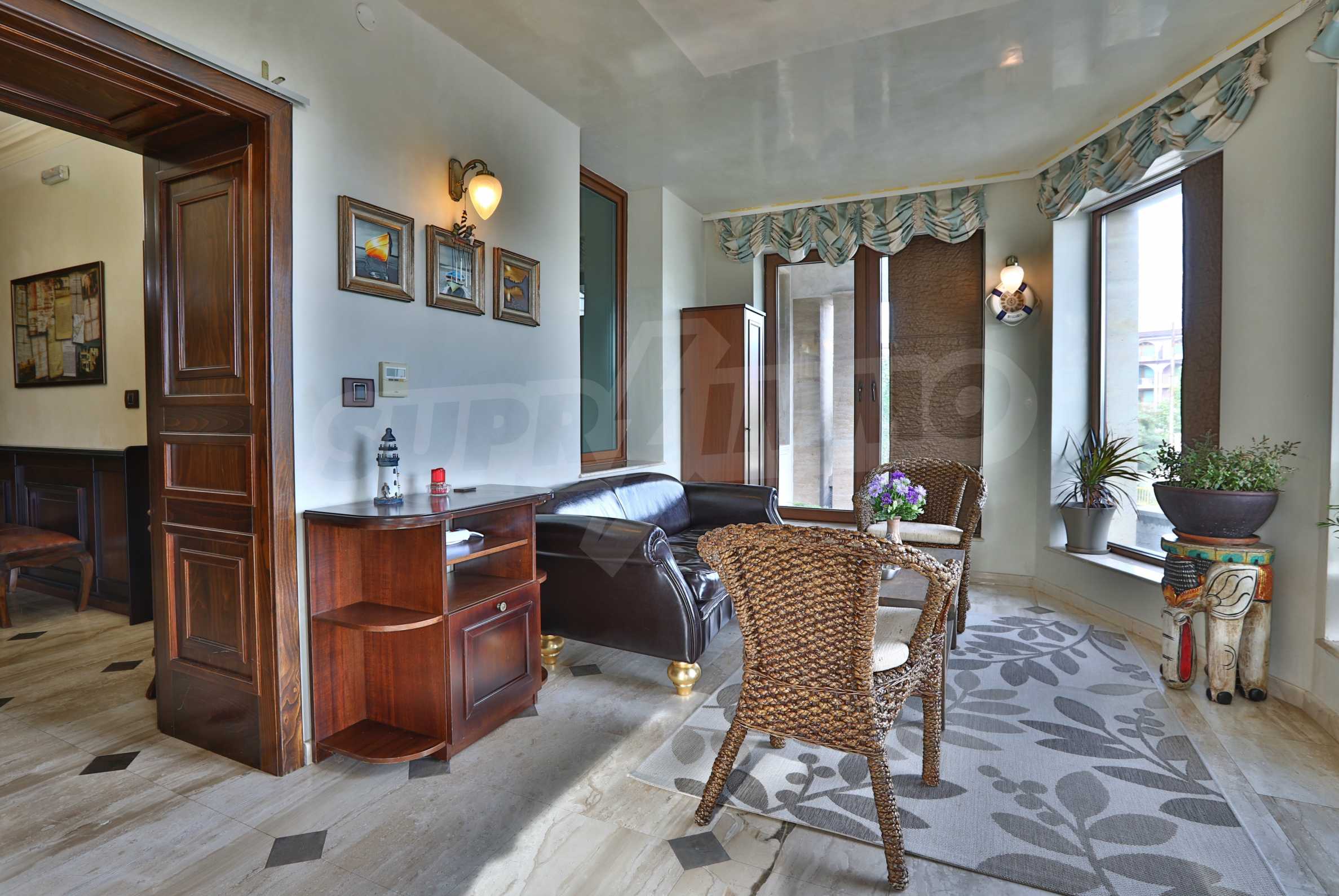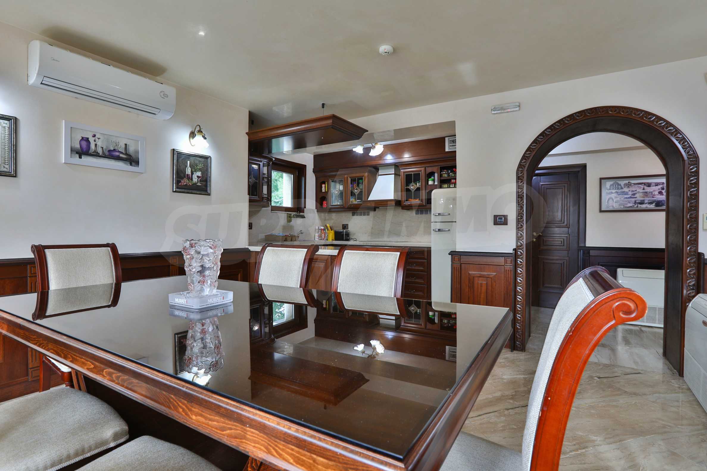 Das Anwesen ist ein äußerst geräumiges, elegantes Haus mit einer bebauten Fläche von 753 m² und einem angelegten Garten von 1129 m² und liegt an der Hauptstraße zum Ferienort St. St. Konstantin und Helena in der Elitebereich. Die unmittelbare Nähe zum Meer und zu weltberühmten Sommerdestinationen sowie das milde Klima, die gute Verkehrsanbindung und Infrastruktur machen es zu einem der gefragtesten Wohnorte der Stadt.