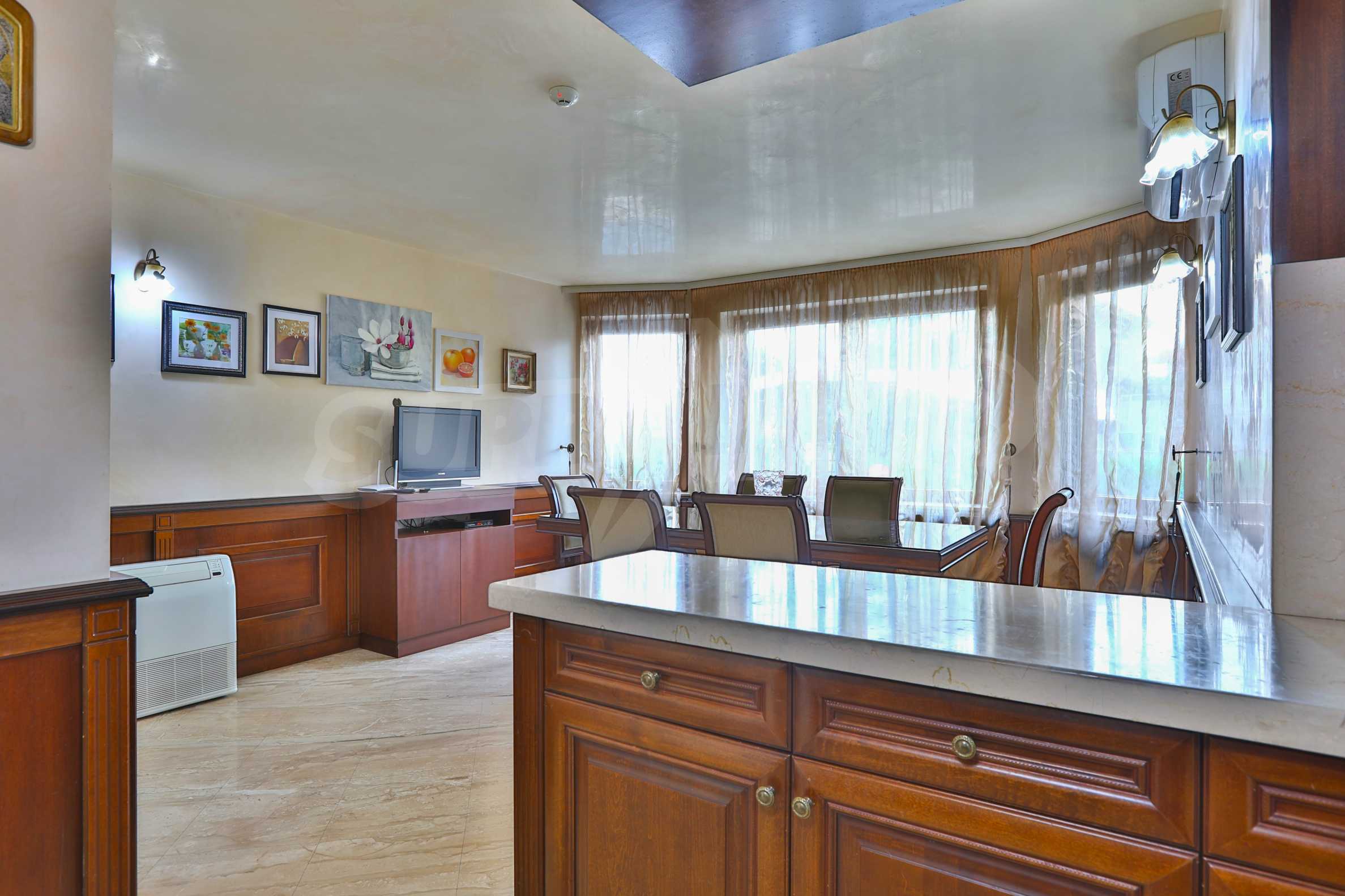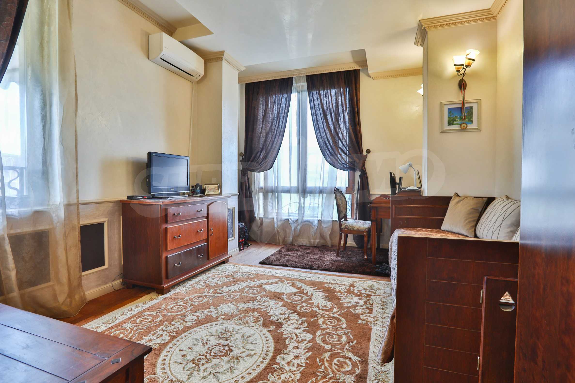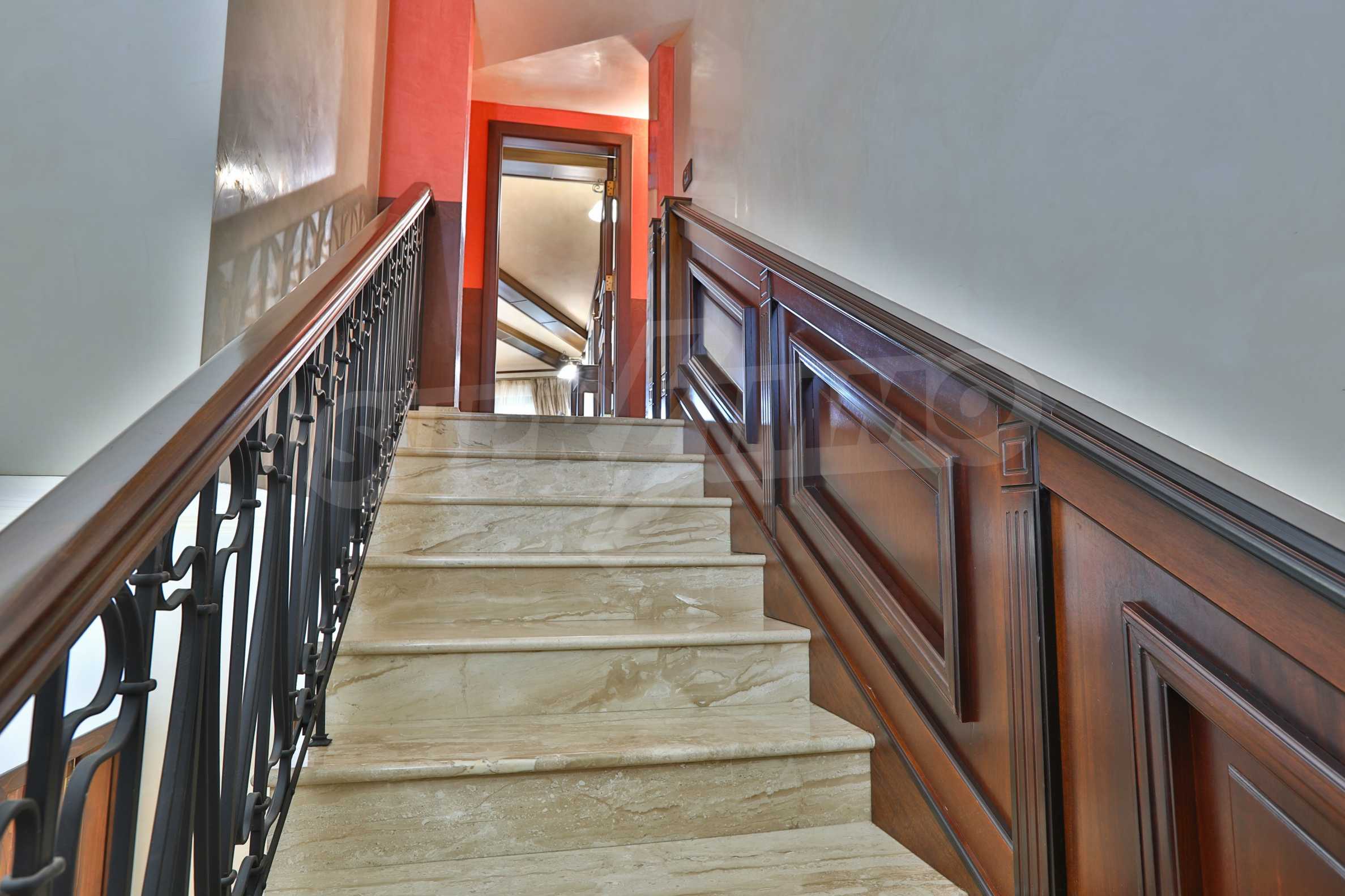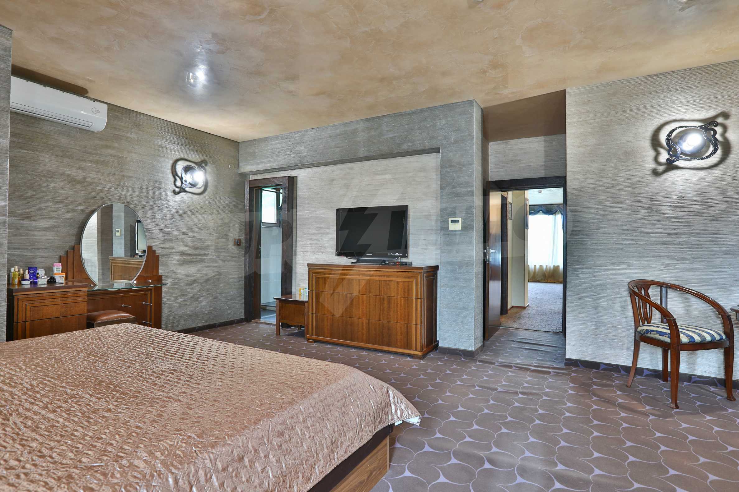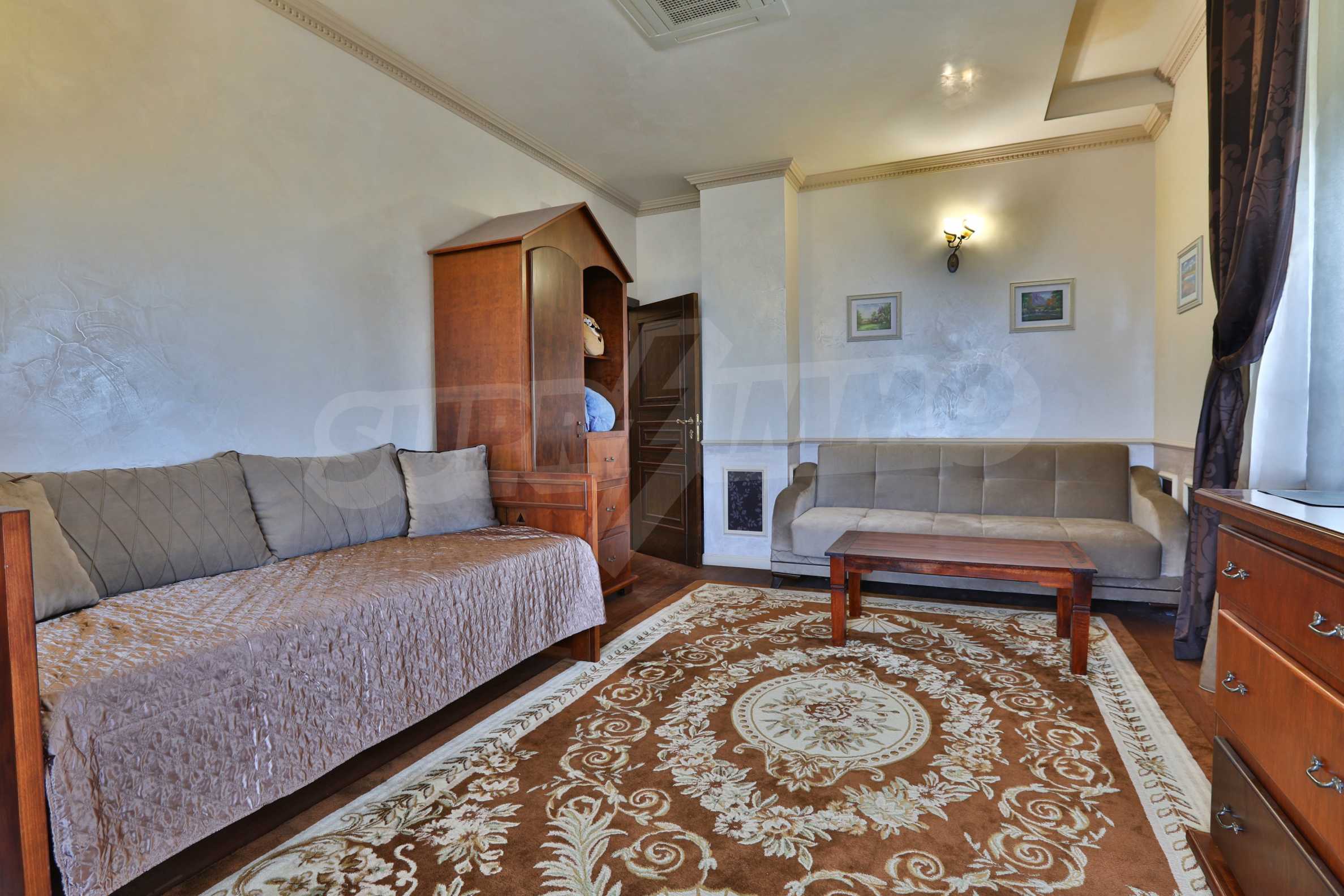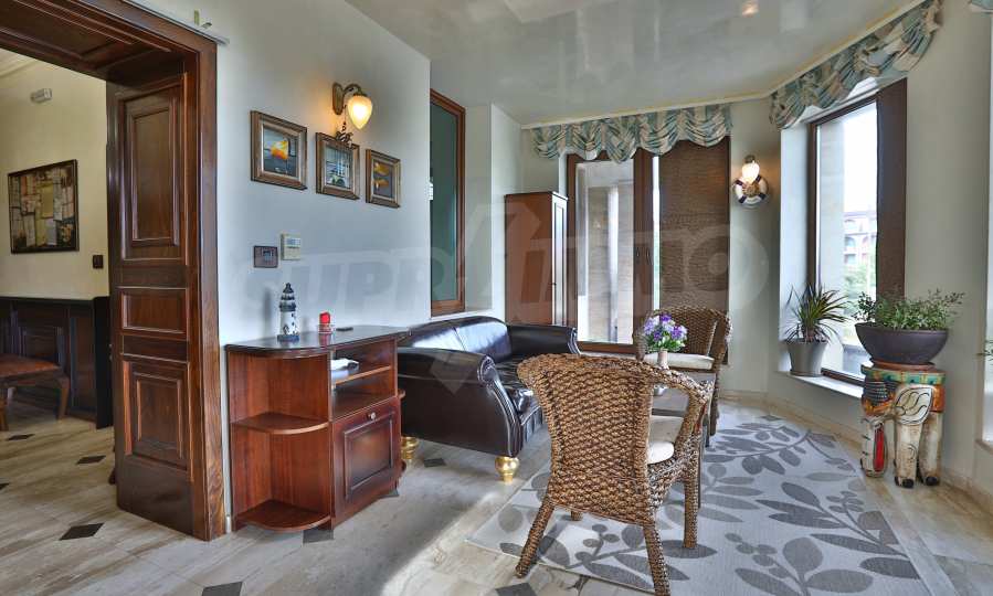 Das Anwesen ist ein äußerst geräumiges, elegantes Haus mit einer bebauten Fläche von 753 m² und einem angelegten Garten von 1129 m² und liegt an der Hauptstraße zum Ferienort St. St. Konstantin und Helena in der Elitebereich. Die unmittelbare Nähe zum Meer und zu weltberühmten Sommerdestinationen sowie das milde Klima, die gute Verkehrsanbindung und Infrastruktur machen es zu einem der gefragtesten Wohnorte der Stadt.