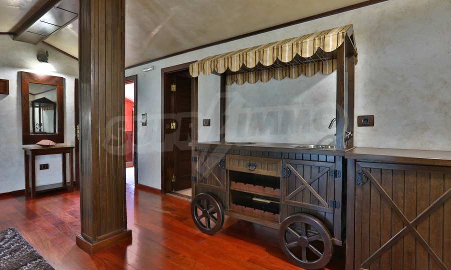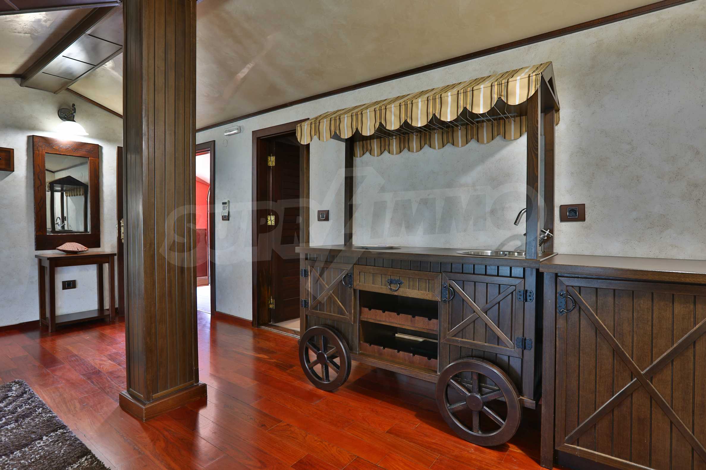Der Bodenbelag in den Schlafzimmern und im Wohnzimmer besteht aus rhodesischem Teakholz. Das Wohnzimmer verfügt über eine Minibar. Die Terrasse ist in zwei Teile geteilt: Auf der einen Seite befinden sich die technischen Einrichtungen des Hauses: VRF-System, Warmwasserbereiter mit Sonnenkollektoren, Satellitenantenne, und der andere Teil der Terrasse ist für die Nutzung adaptiert, der Boden der Terrasse ist hergestellt aus italienischem Granit, geeignet für den Außenbereich.