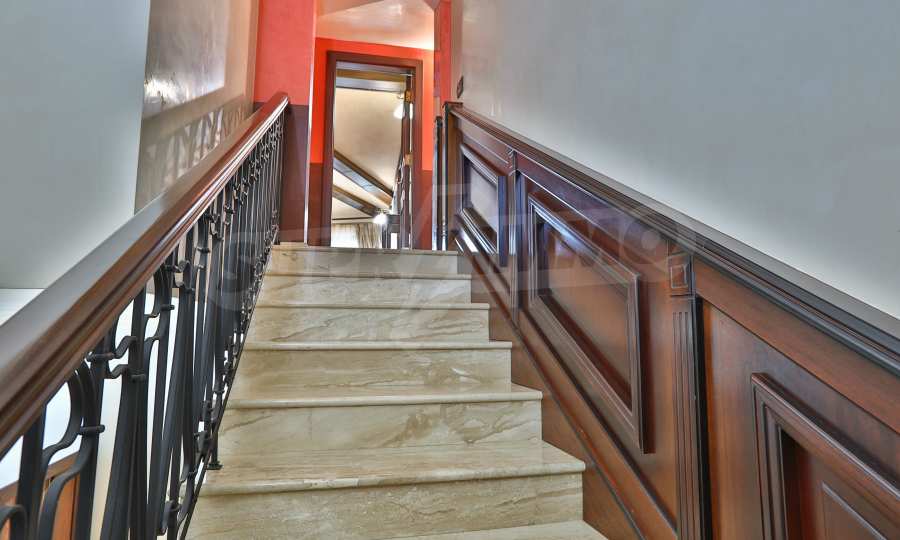 Das Treppenhaus hat einen Marmorboden und ein schmiedeeisernes Geländer. Es besteht aus 3 Schlafzimmern, Wohnzimmer, Garderobe und 2 Badezimmern mit Toiletten.