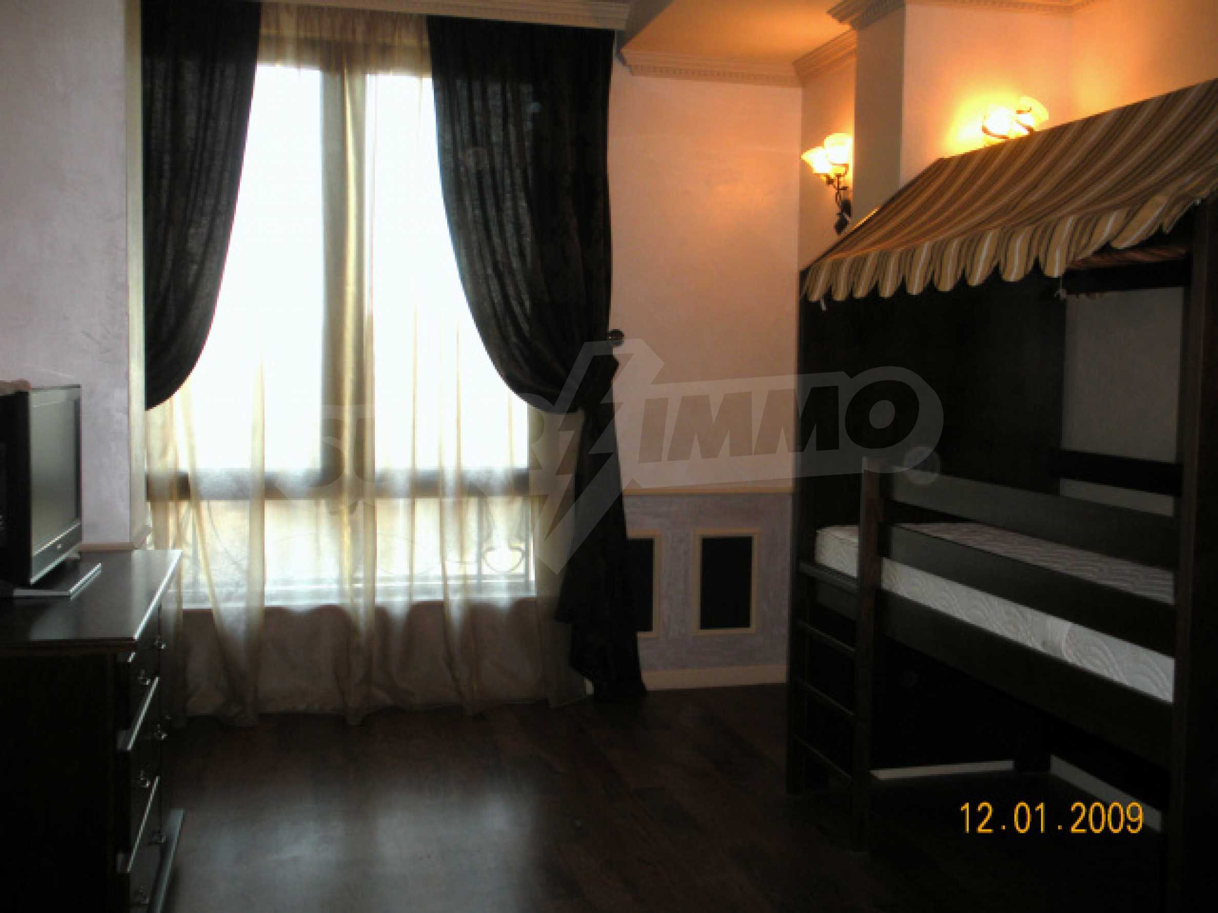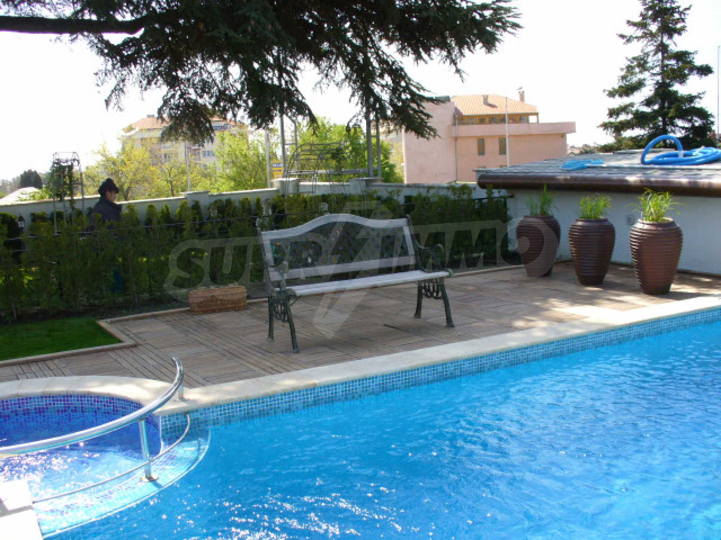 Mit 6 Schlafzimmern, 6 Bädern und 3 Wohnräumen eignet sich das Haus sowohl für große Familien als auch für deren Gäste. Das mit hochwertigen Fitnessgeräten und einem Solarium ausgestattete Fitnessstudio sowie eine Sauna, ein Whirlpool, ein Außenpool, eine Bibliothek und ein Wintergarten bieten zusätzlichen Komfort für Entspannung und Komfort. Für die Bewohner des Hauses und ihre Gäste stehen im Hof insgesamt 6 Parkplätze zur Verfügung. Für Frieden und Sicherheit wurde eine Videoüberwachung des gesamten Hofes, eine Video-Gegensprechanlage und ein Feueralarm des Hauses gebaut.