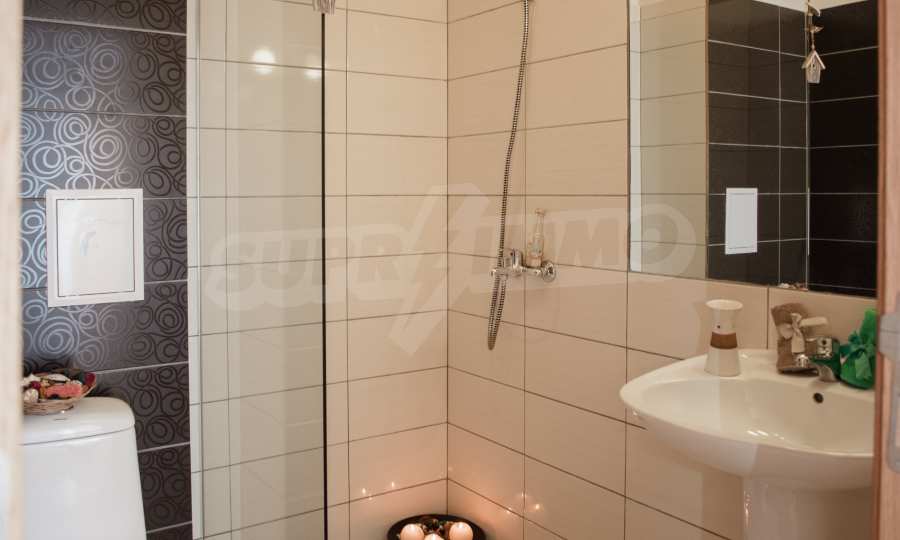 • Bad und WC: Innentüren wasserdicht; halbgeheimes Schloss; voll mit Keramikfliesen bedeckt, in hellen Farben; Die Decken sind mit wasserfester weißer Latexfarbe gestrichen.