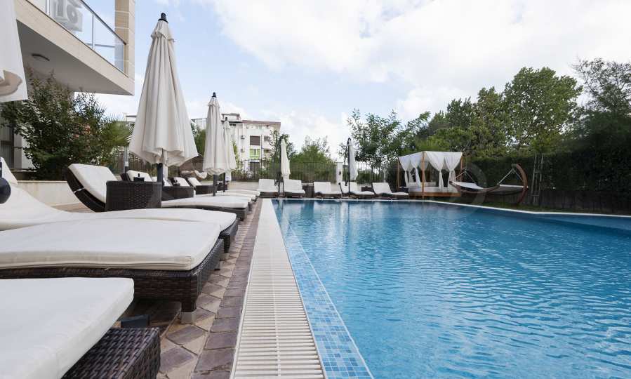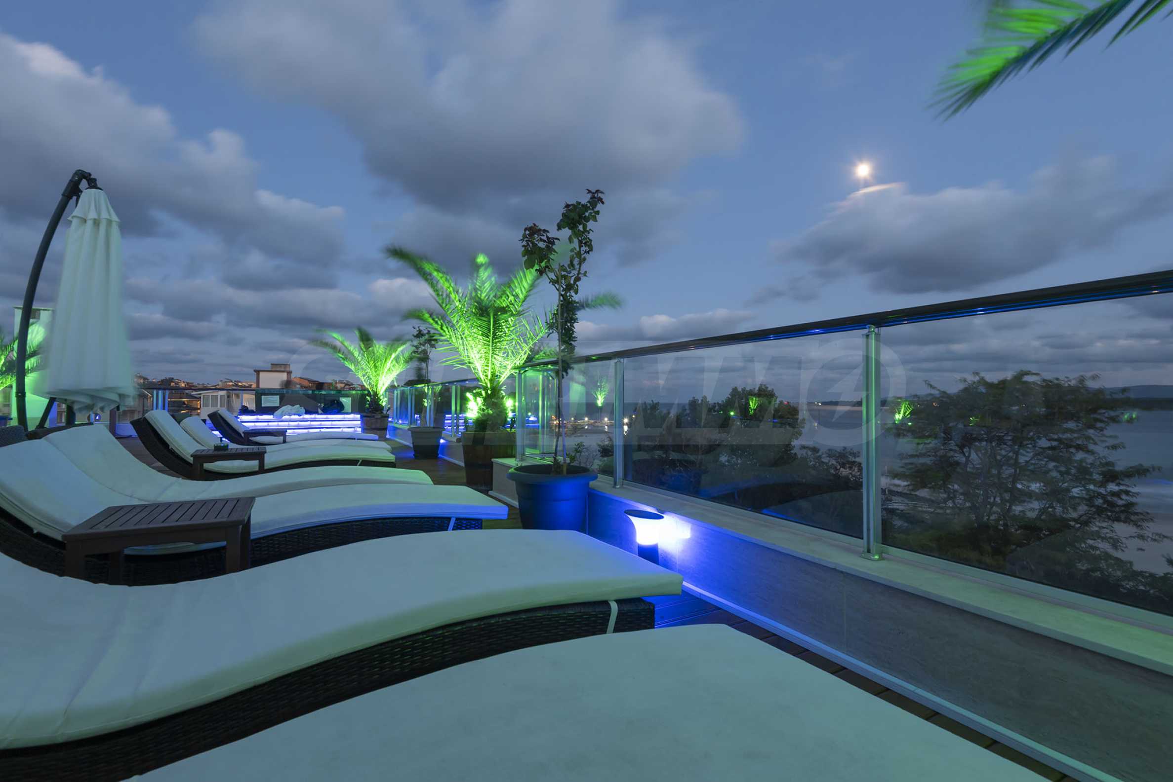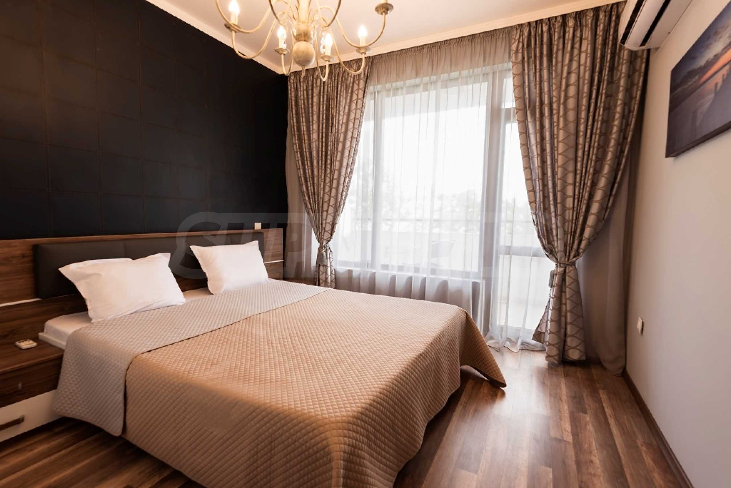 Der Boutique-Komplex ist geschlossen und besteht aus einem Gebäude auf fünf Etagen in Südlage mit einem Außenpool, einem schönen Garten und einer Sonnenterrasse mit Whirlpool. Das Gebäude verfügt nur über 32 Wohnungen von 60 qm bis 160 qm – mit Panoramablick auf das Meer oder die Stadt. Von den Apartments aus hat man einen Ausblick auf den gesamten Südstrand, die Bucht von Dyavolska Reka, Kiten und den Berg Strandzha. Der Komplex wird von einem modernen, leisen Aufzug bedient und im Untergeschoss befinden sich 20 Tiefgaragenplätze.