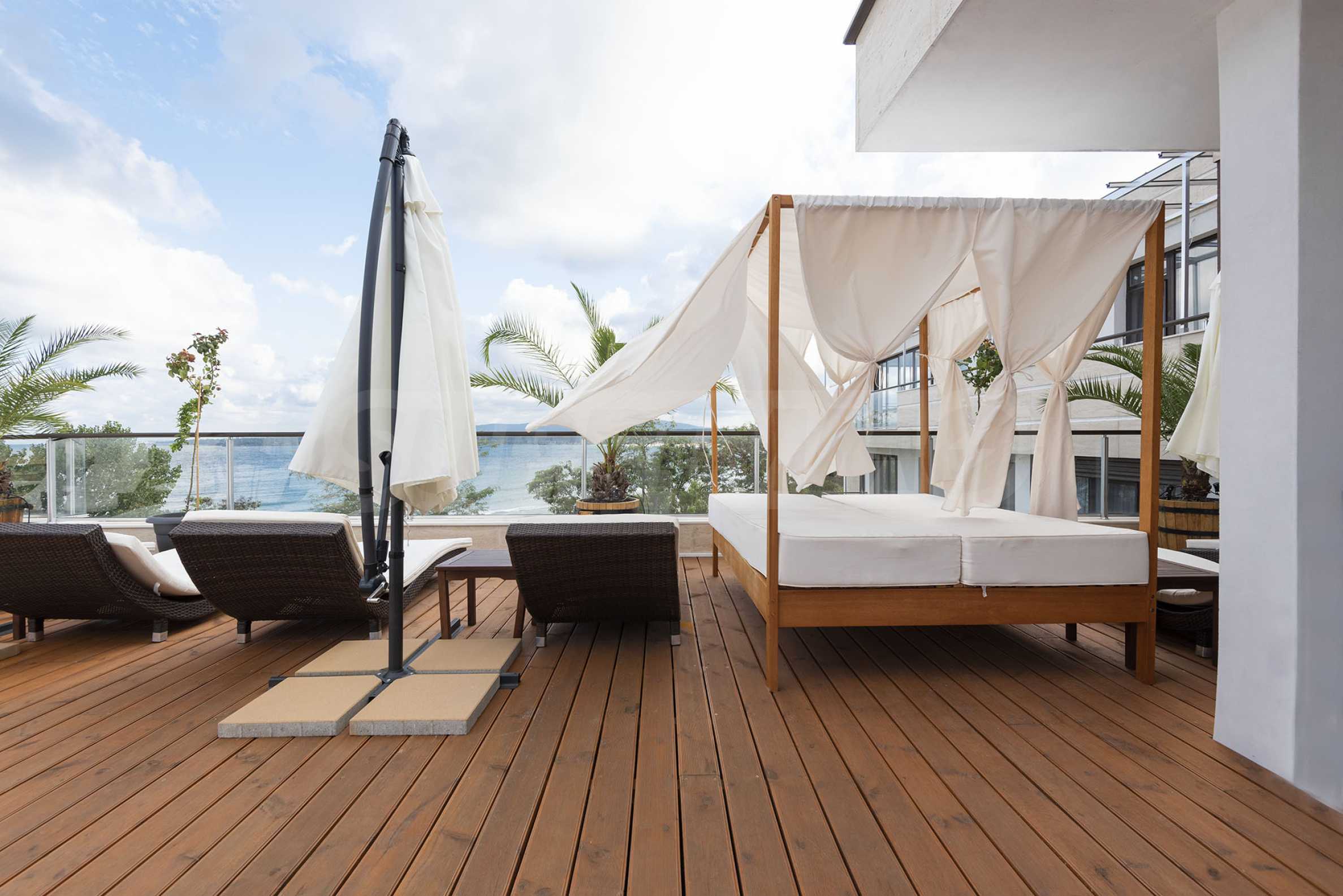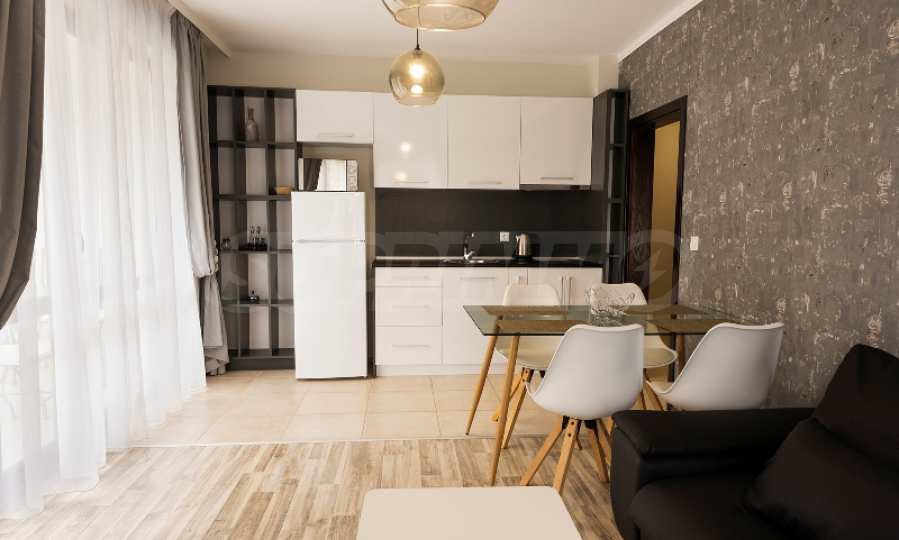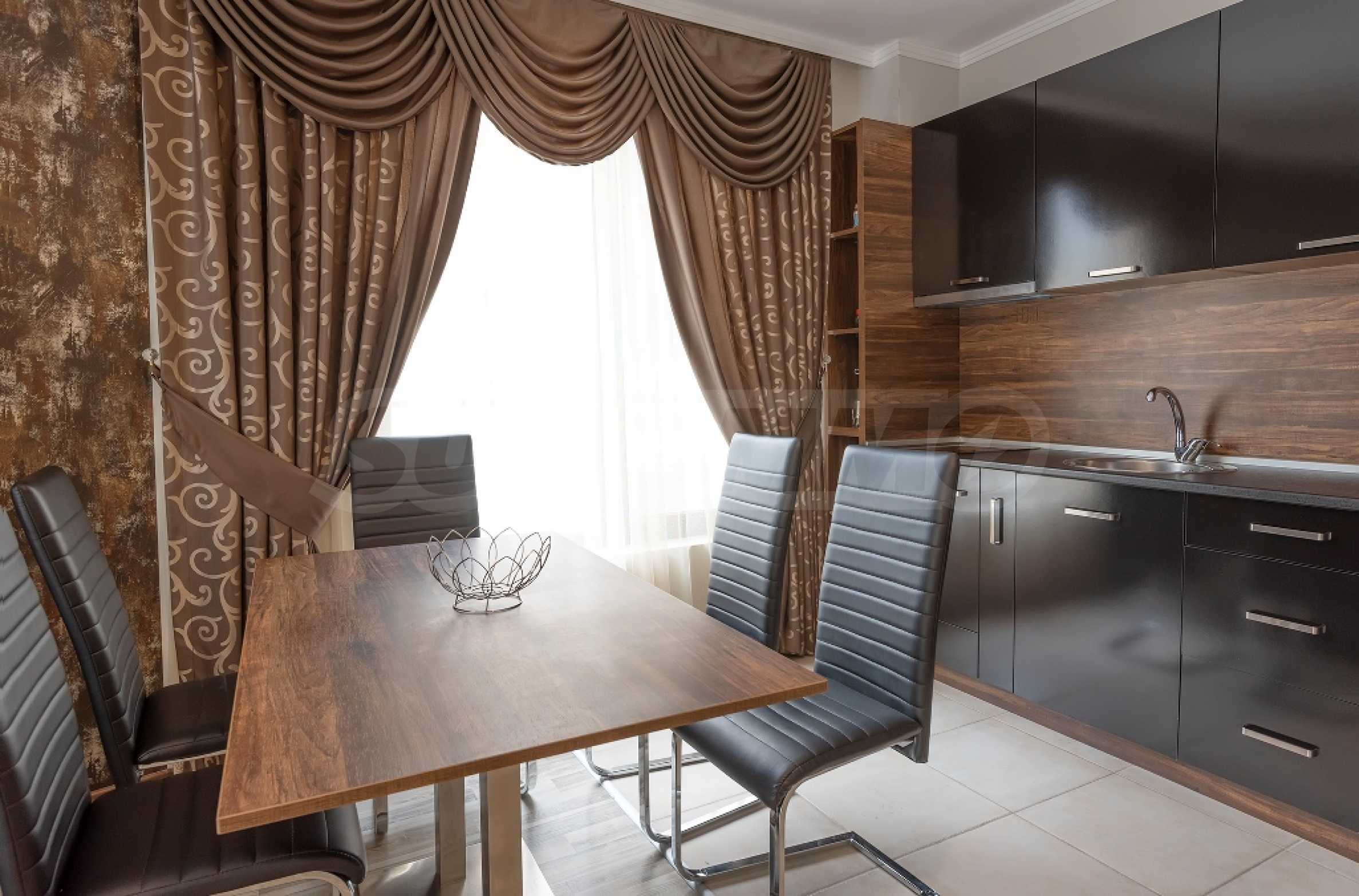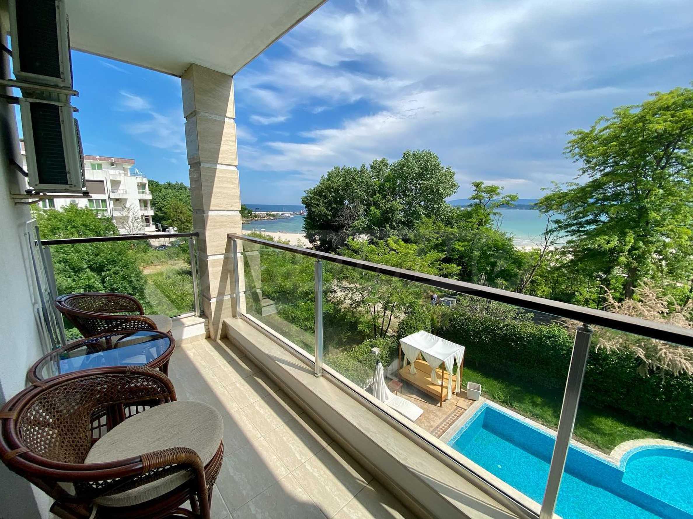 Der Boutique-Komplex ist geschlossen und besteht aus einem Gebäude auf fünf Etagen in Südlage mit einem Außenpool, einem schönen Garten und einer Sonnenterrasse mit Whirlpool. Das Gebäude verfügt nur über 32 Wohnungen von 60 qm bis 160 qm – mit Panoramablick auf das Meer oder die Stadt. Von den Apartments aus hat man einen Ausblick auf den gesamten Südstrand, die Bucht von Dyavolska Reka, Kiten und den Berg Strandzha. Der Komplex wird von einem modernen, leisen Aufzug bedient und im Untergeschoss befinden sich 20 Tiefgaragenplätze.