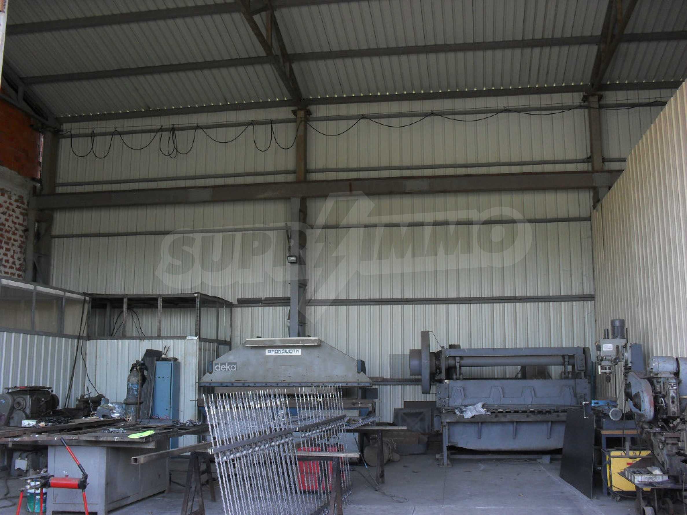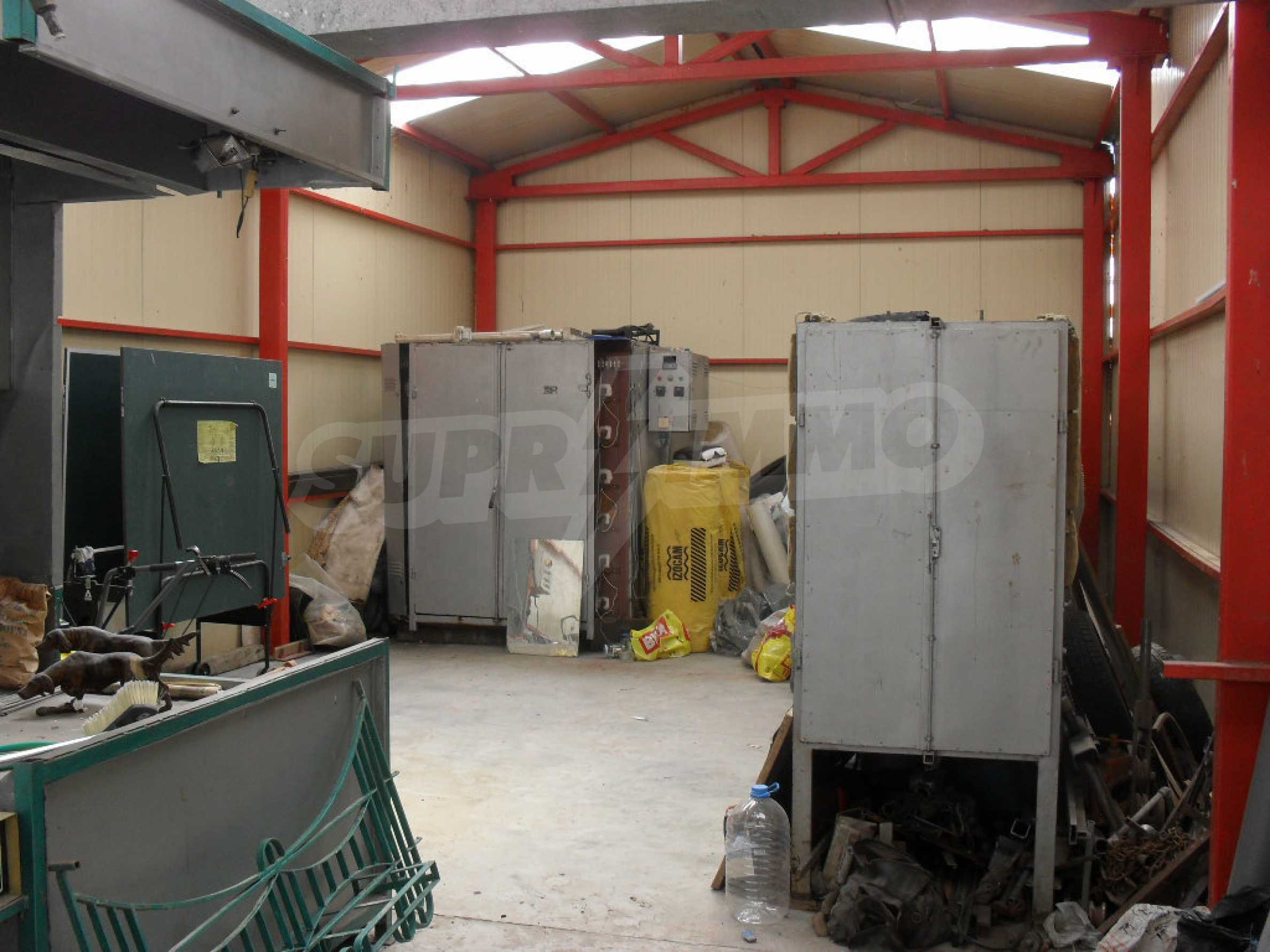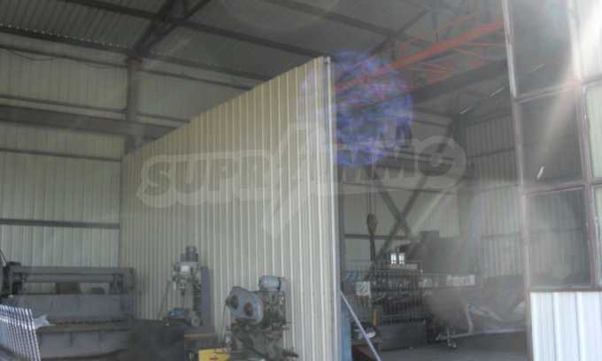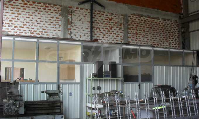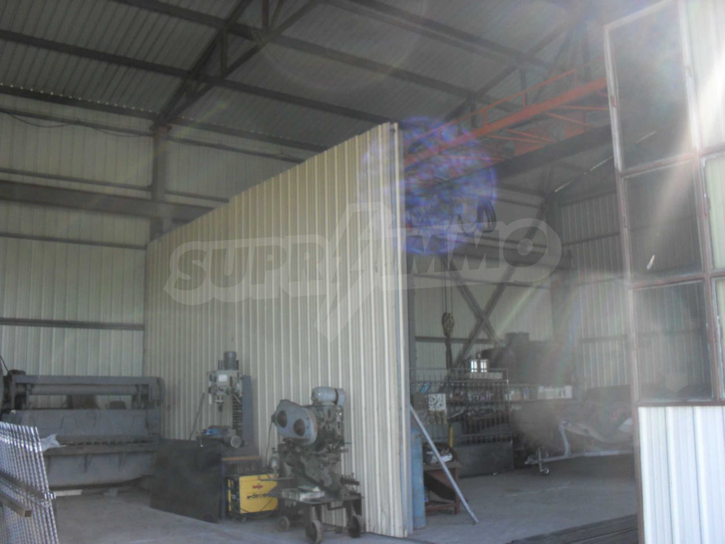 - Produktionshalle mit Abmessungen von 24/12 m und einer Höhe von 12 m, ausgestattet mit einem Kranbrückenausleger, einer Guillotine, einer Drehmaschine und einer Drehmaschine. Es gibt Umkleidekabinen, Umkleidekabinen und WC.