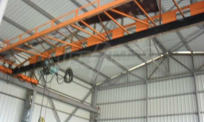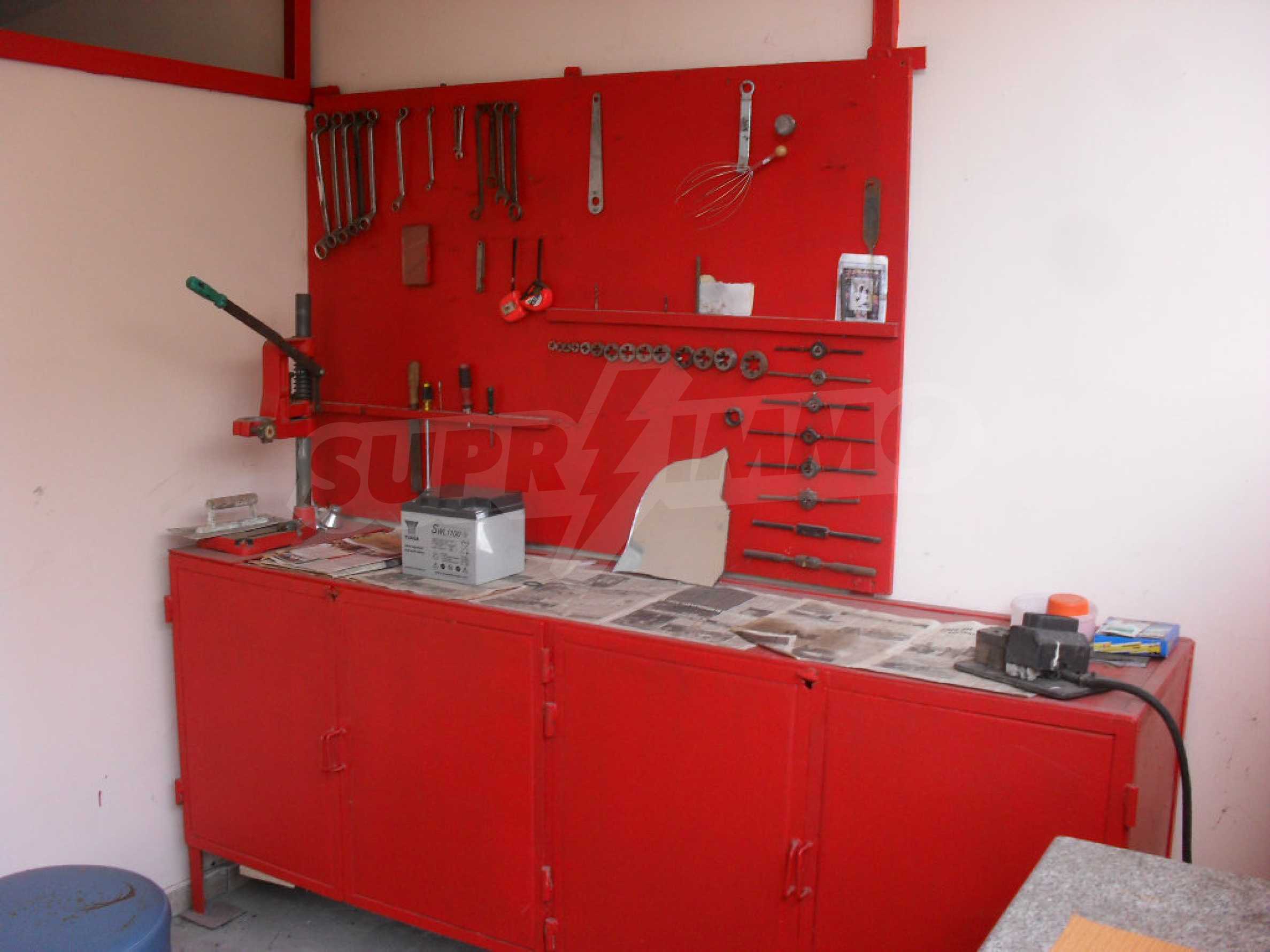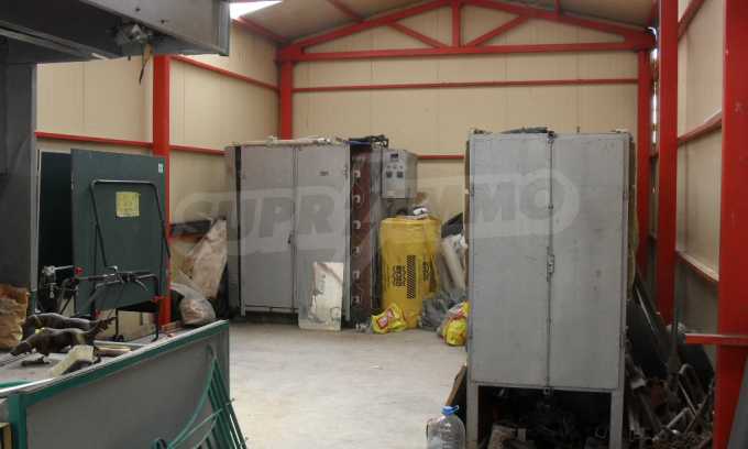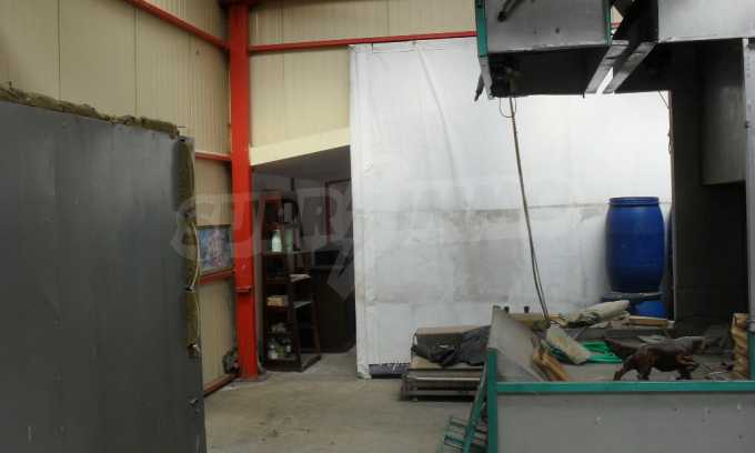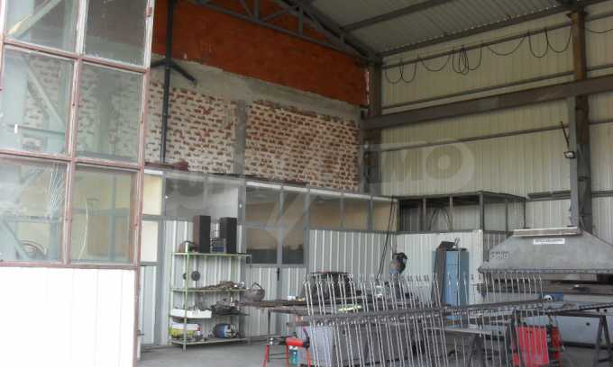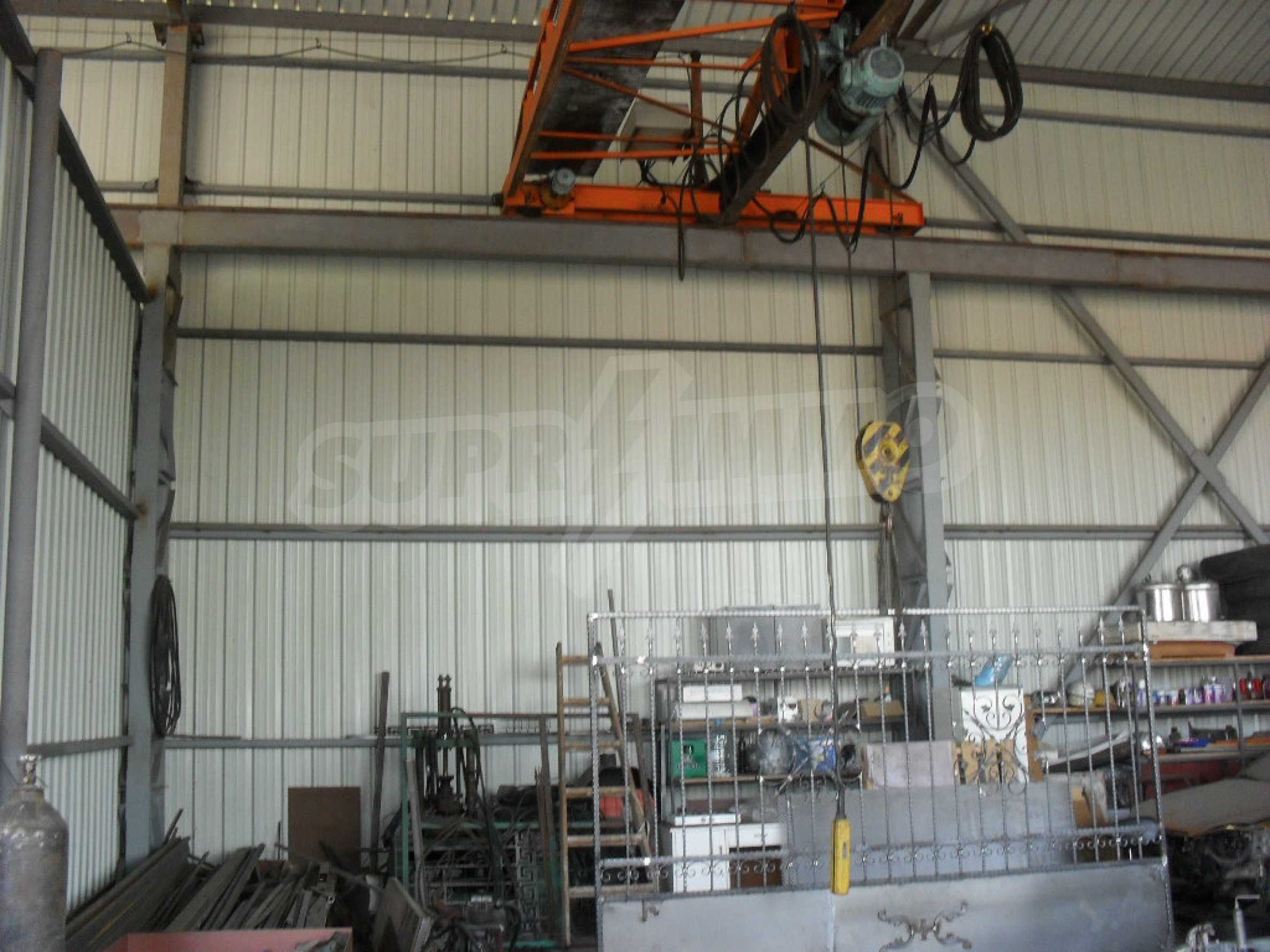 - Produktionshalle mit Abmessungen von 24/12 m und einer Höhe von 12 m, ausgestattet mit einem Kranbrückenausleger, einer Guillotine, einer Drehmaschine und einer Drehmaschine. Es gibt Umkleidekabinen, Umkleidekabinen und WC.