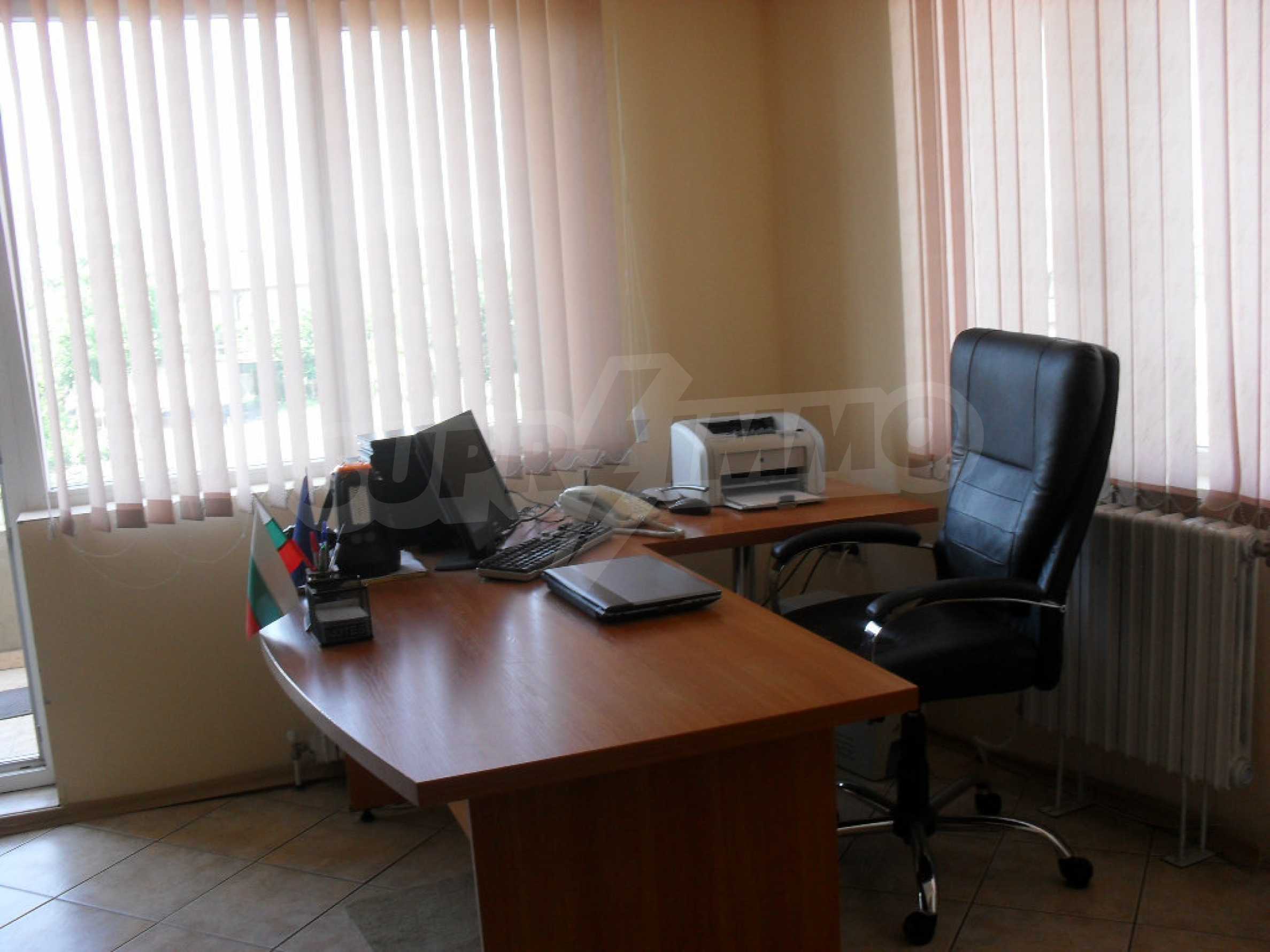 - Verwaltungsteil mit zwei Stockwerken, der erste ist für ein Geschäft und der zweite für zwei Büros mit Terrasse und Toilette vorgesehen.