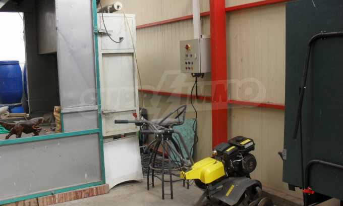 - Produktionshalle von 6/12 m, ausgestattet mit einer Pulverbeschichtungsanlage mit zwei Öfen und einem Badezimmer.