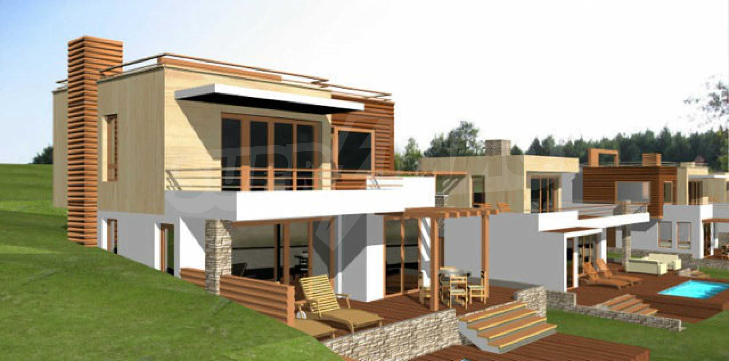 Es gibt ein Konzeptprojekt für eine zweistöckige freistehende Villa. El wurde gebaut. Stromversorgung an der Grundstücksgrenze.