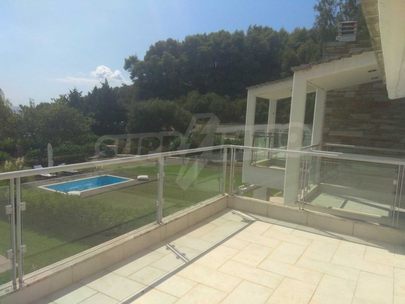 Das Anwesen befindet sich in einem bewachten Komplex mit Pool, nur 160 m vom schönen Strand entfernt und verfügt über ein geräumiges Wohnzimmer mit Kamin und moderner Küche, 4 Schlafzimmer mit Klimaanlage und großen Terrassen mit Blick auf das Meer und die Berge, 1 Badezimmer, 2 Toiletten, Sicherheit und Parkplatz .