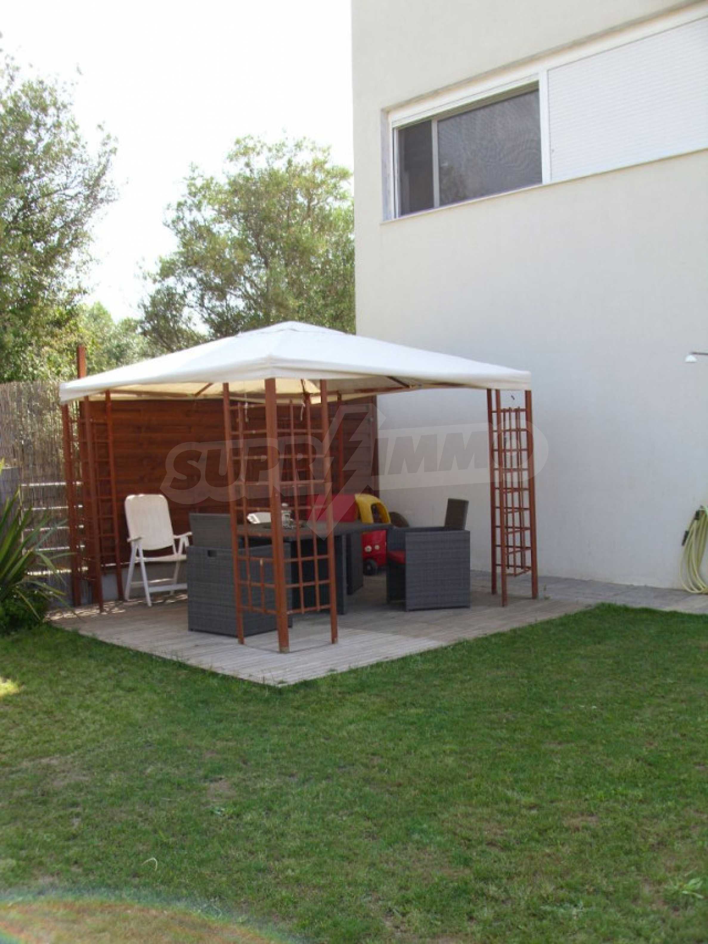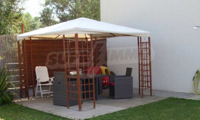 Das Anwesen verfügt auch über einen angelegten Garten mit einem Pavillon und einer Garage.