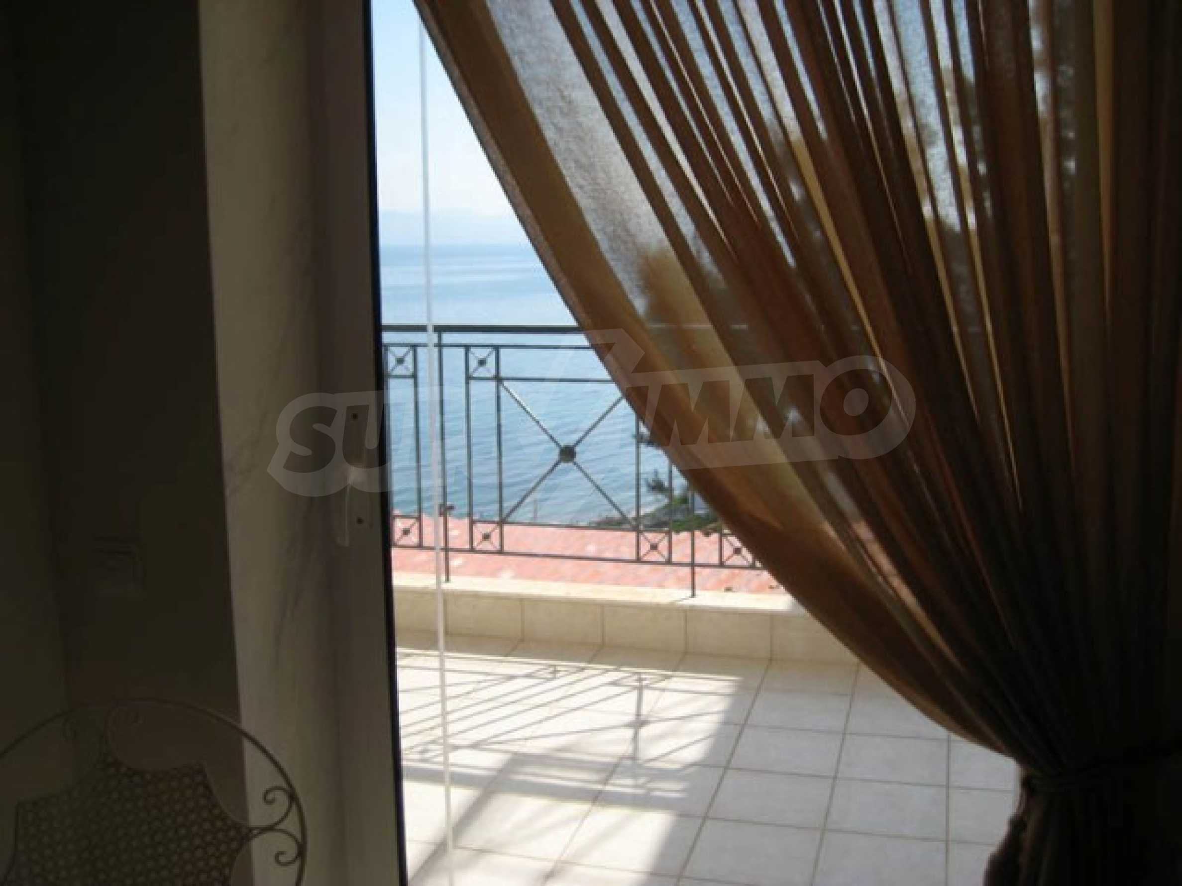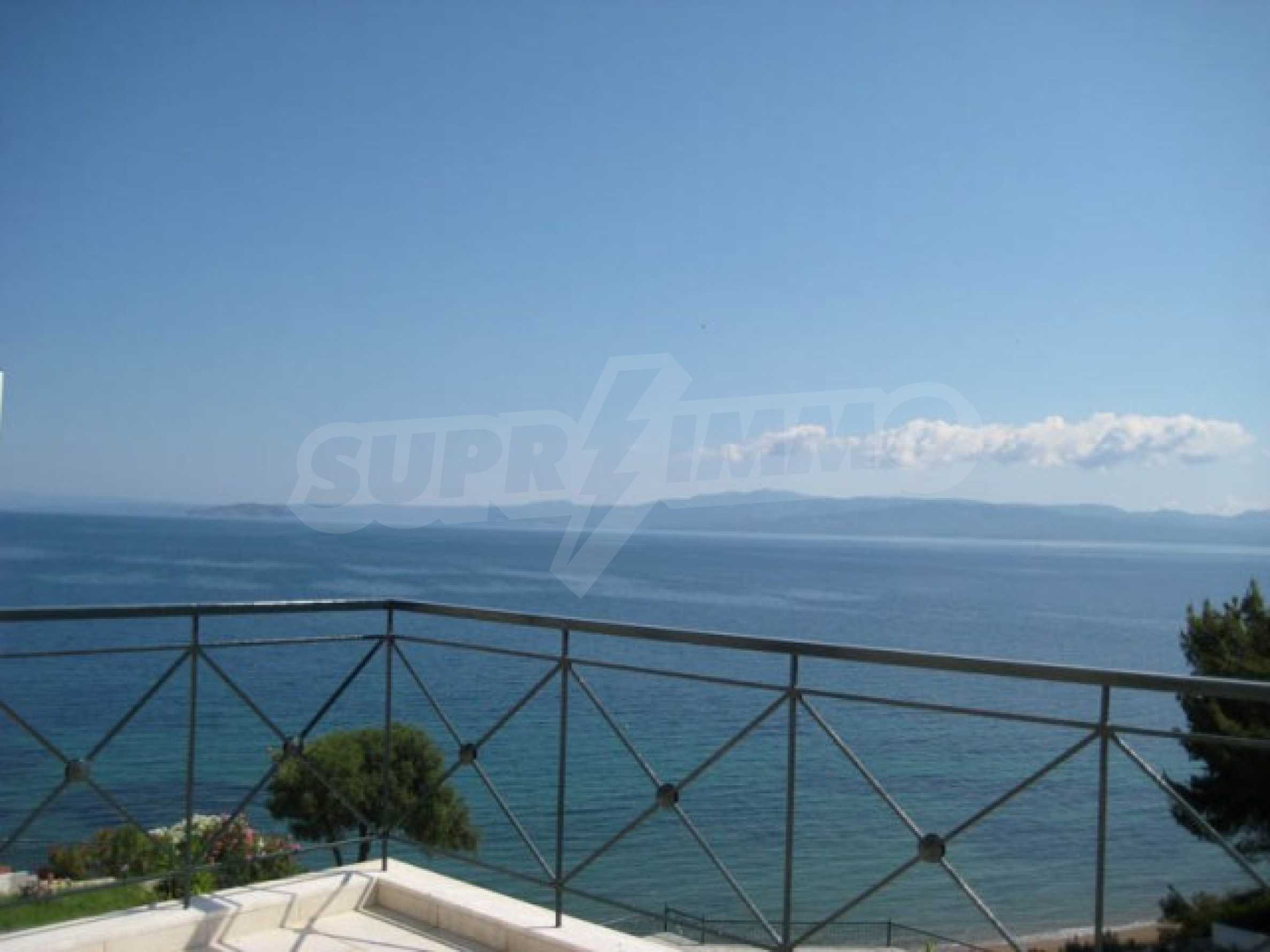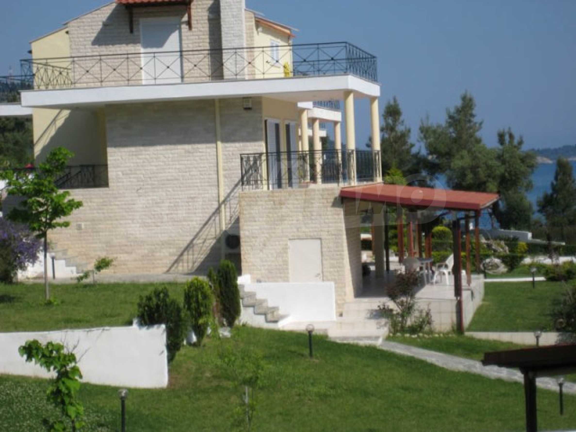 Die Aussicht vom gesamten Komplex ist wunderbar und besonders von diesem Haus aus, da es sich im Zentrum befindet. Der Blick erstreckt sich bis zum anderen Arm von Chalkidiki (8 km). Nachts ist die Aussicht ebenfalls beeindruckend, da Sie in der Mitte die Lichter der Dörfer gegenüber dem Meer sehen können.