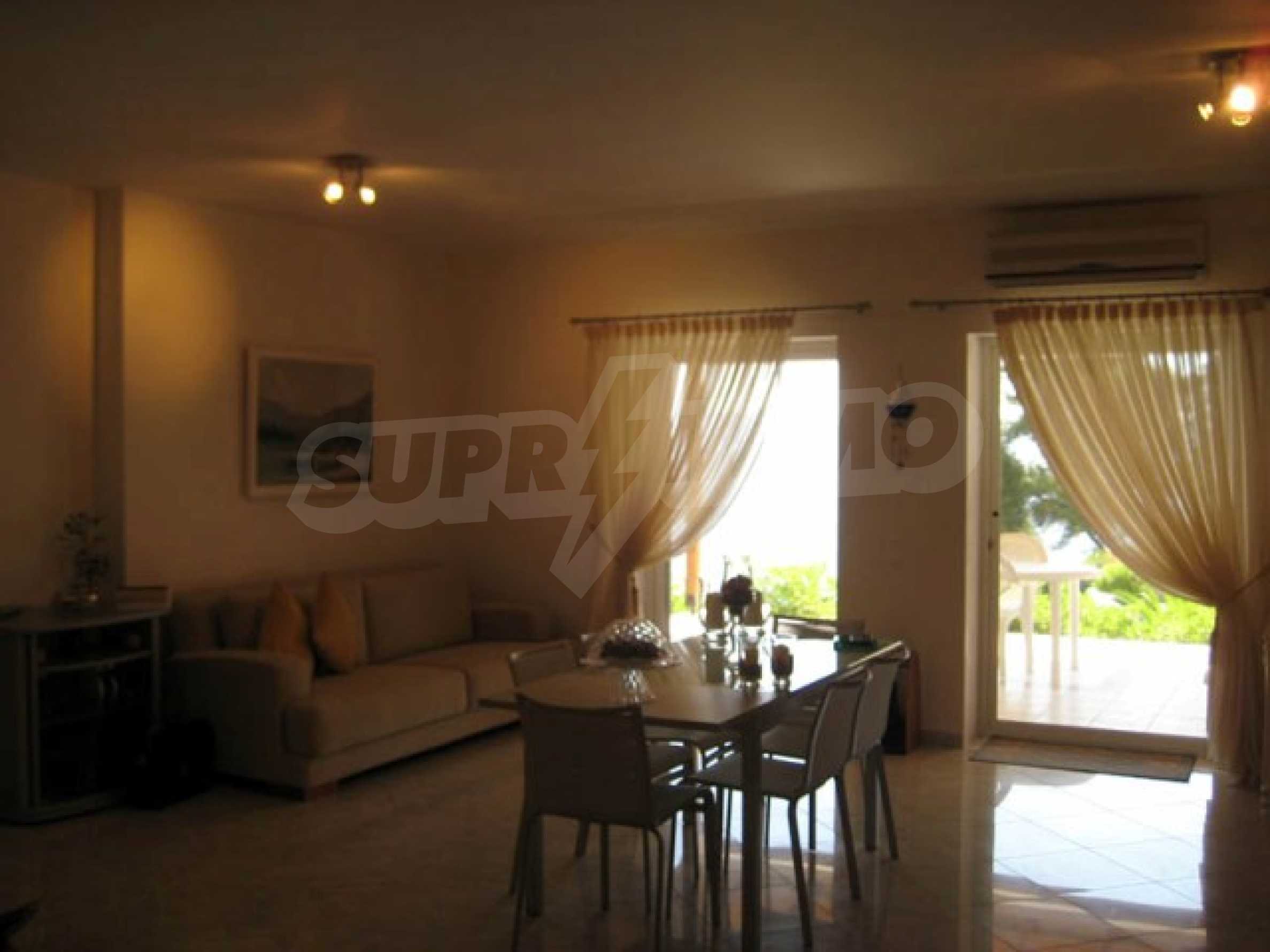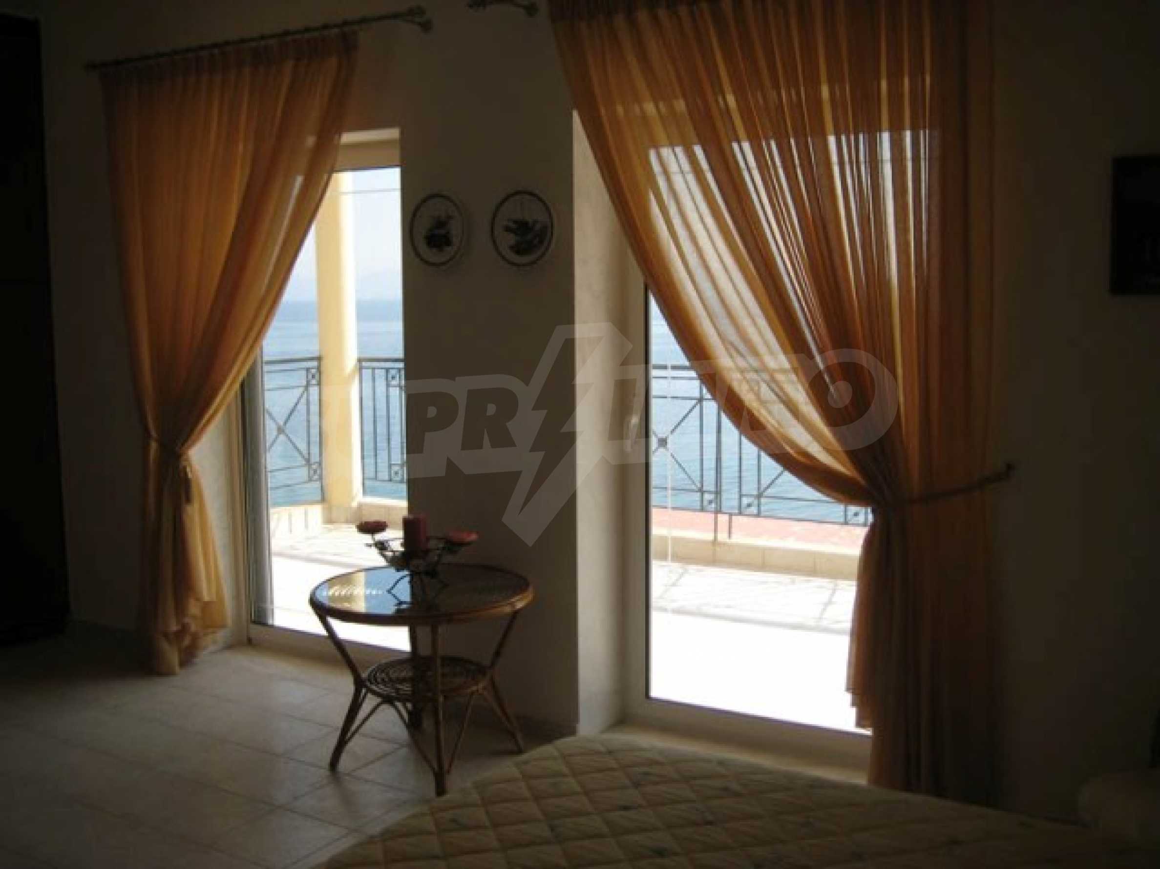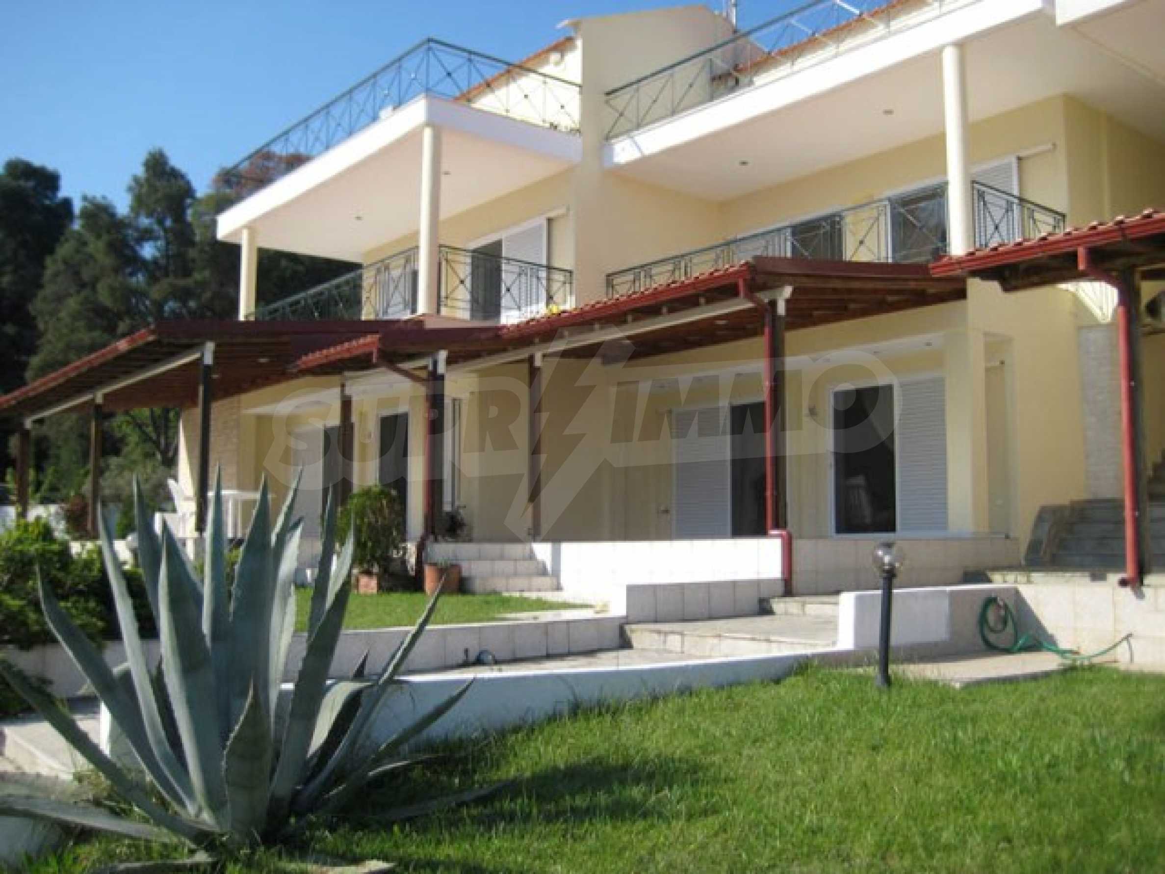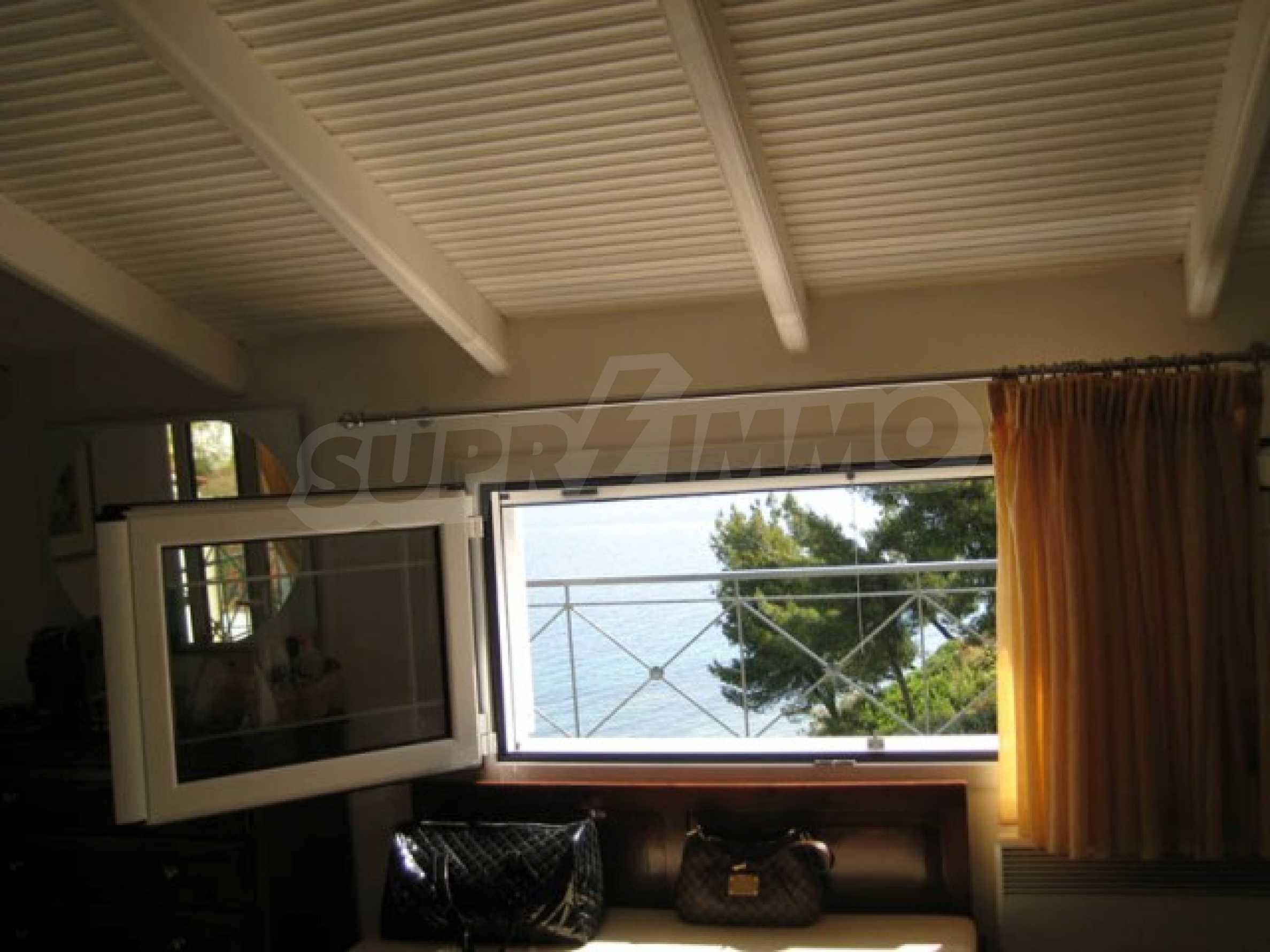 Die Aussicht vom gesamten Komplex ist wunderbar und besonders von diesem Haus aus, da es sich im Zentrum befindet. Der Blick erstreckt sich bis zum anderen Arm von Chalkidiki (8 km). Nachts ist die Aussicht ebenfalls beeindruckend, da Sie in der Mitte die Lichter der Dörfer gegenüber dem Meer sehen können.