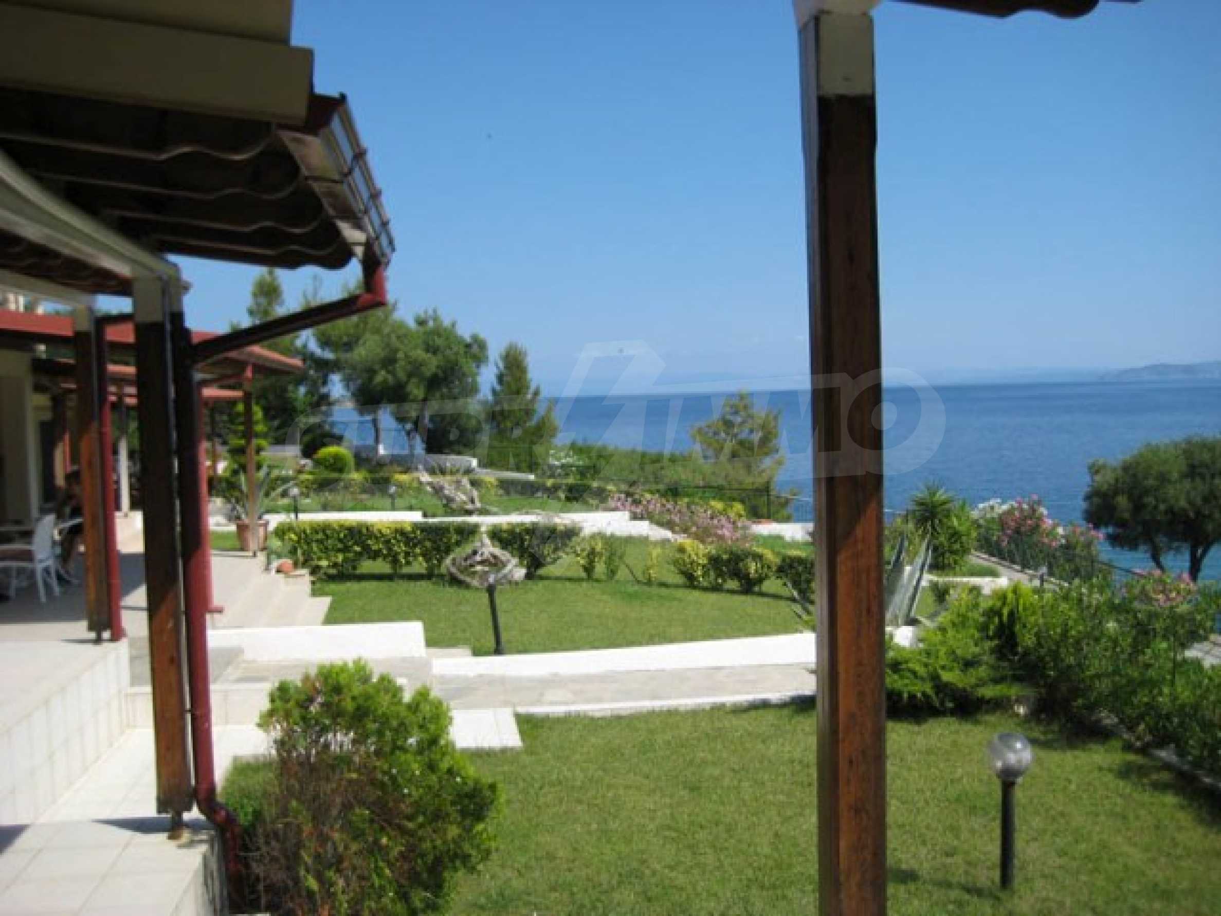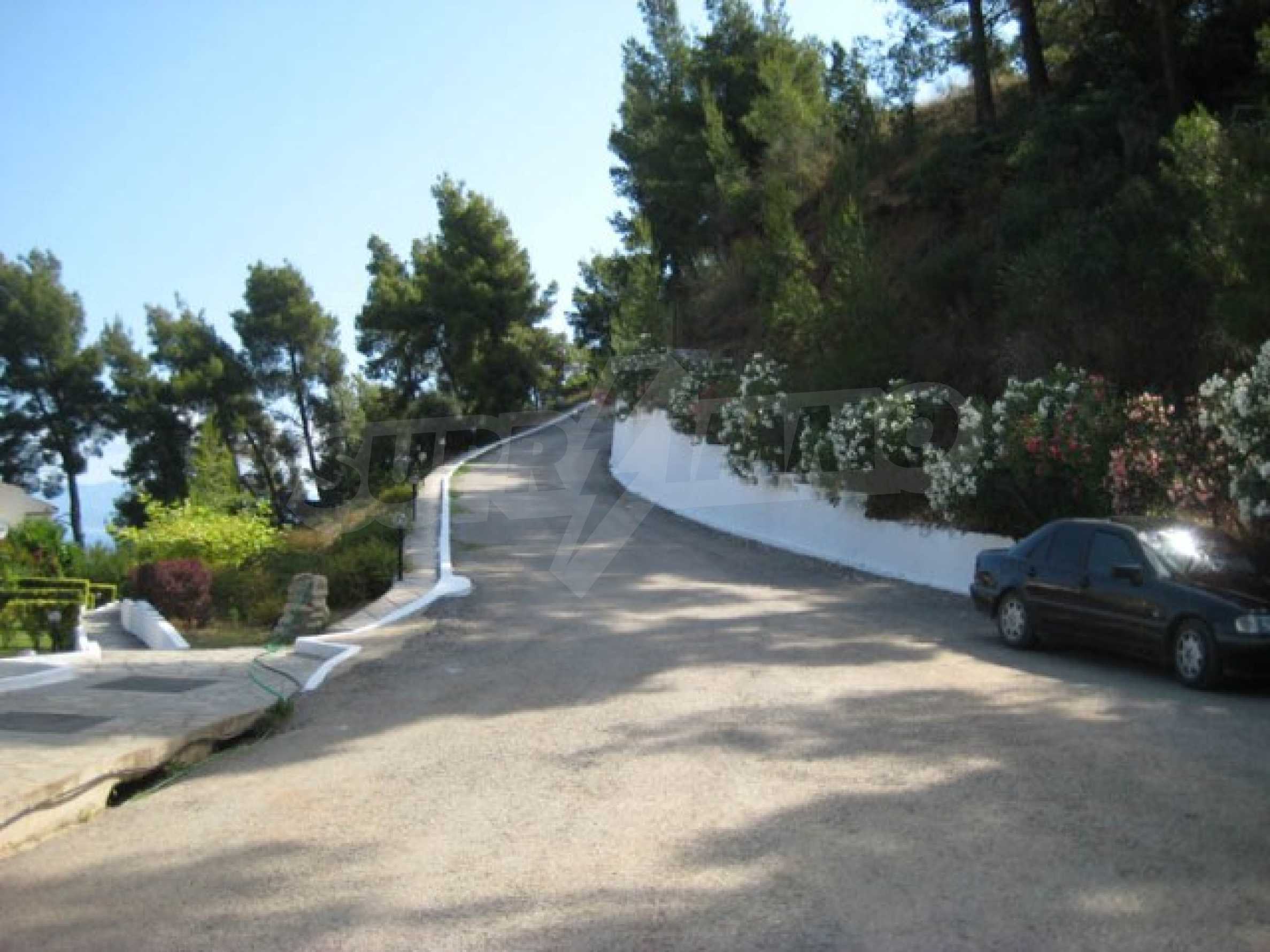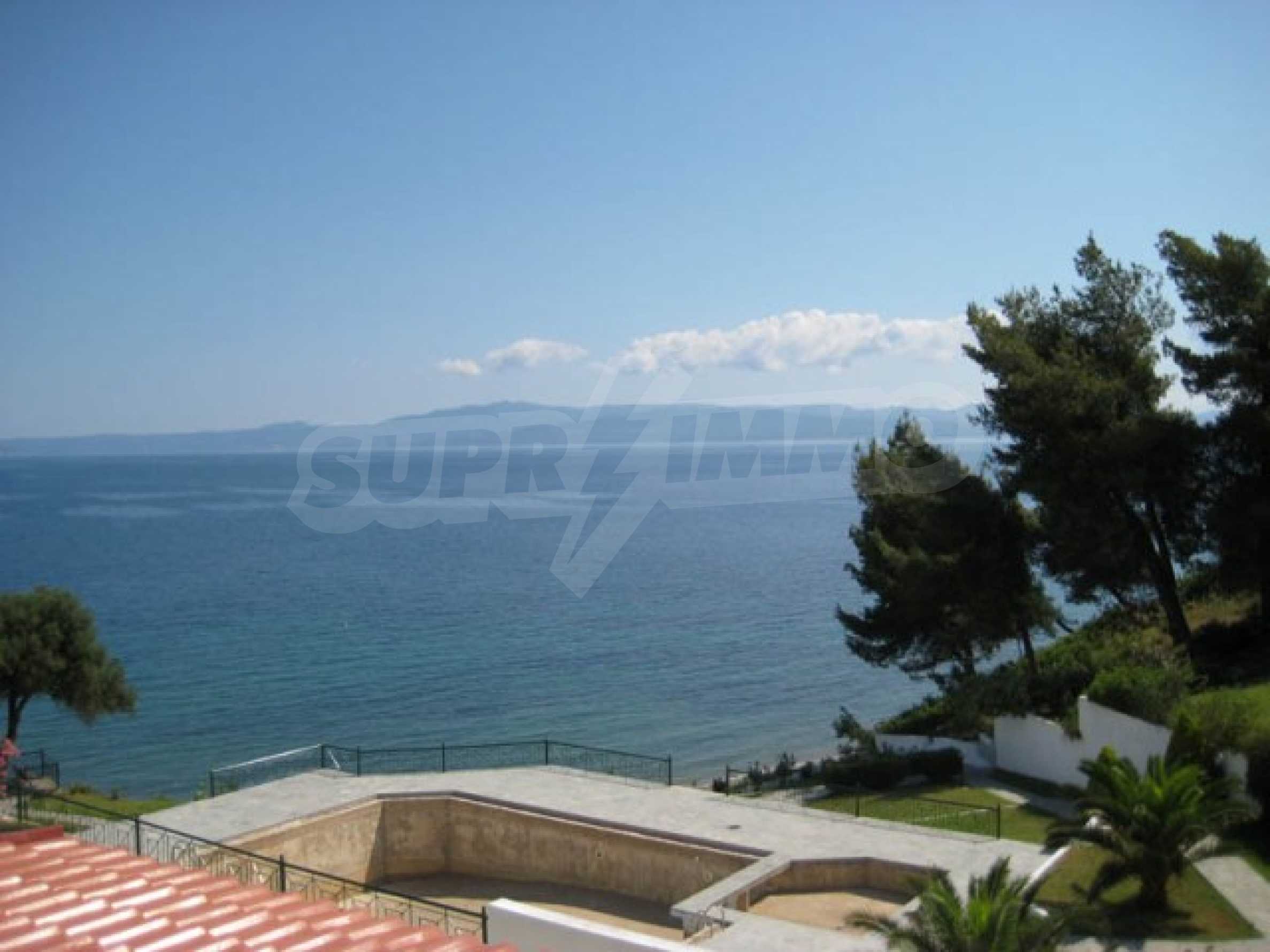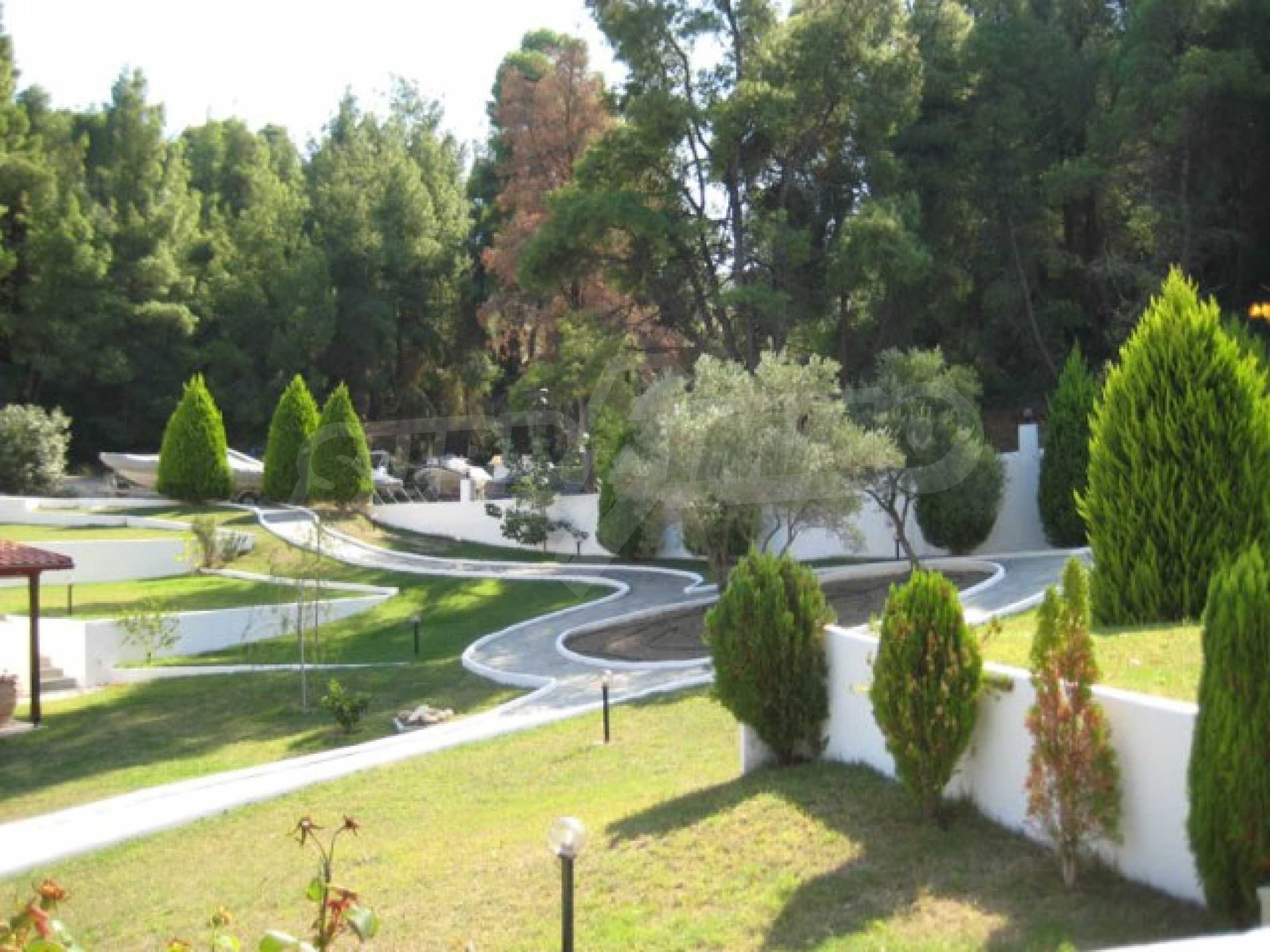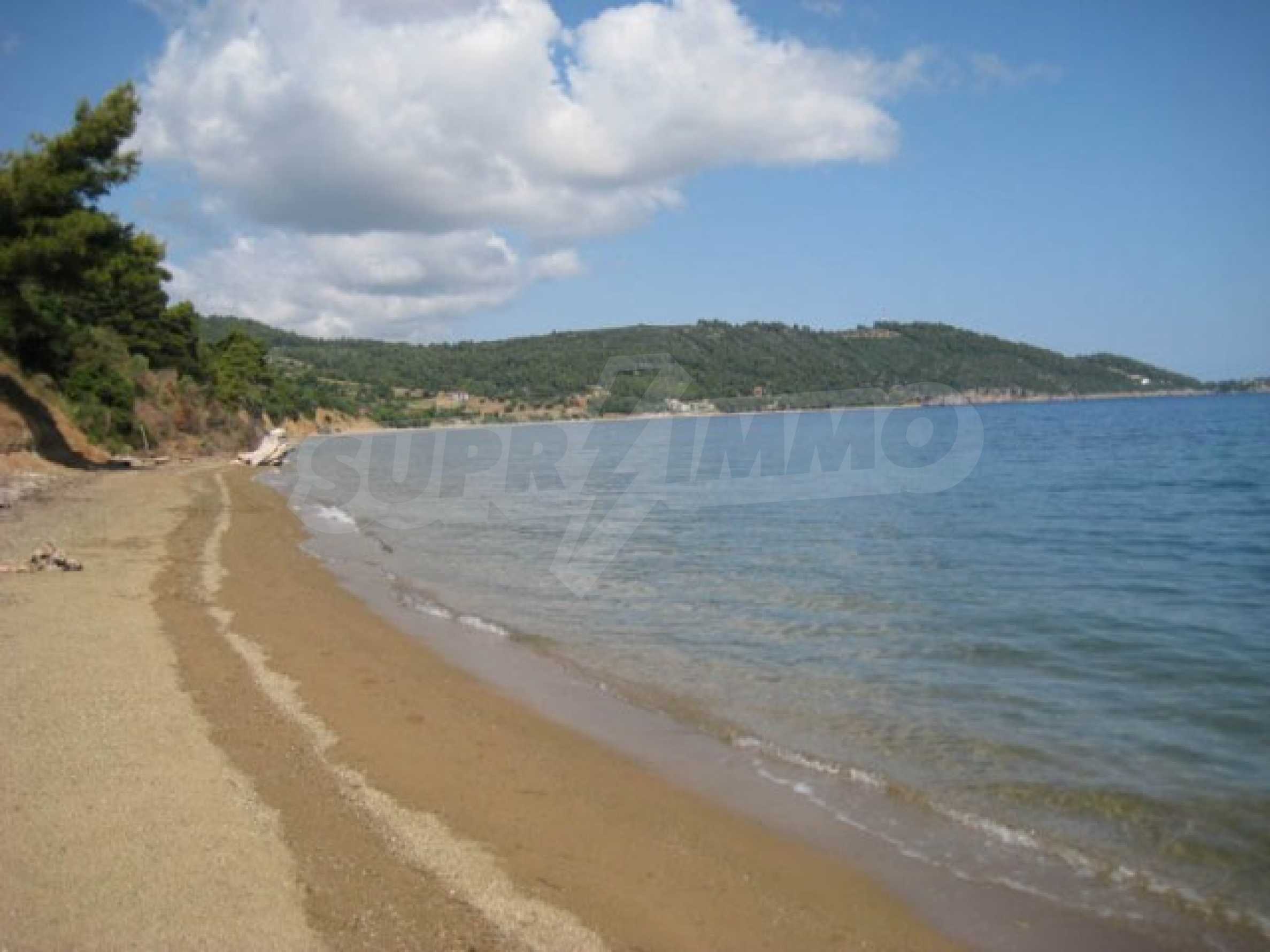 Der Komplex hat einen Privatstrand nur für die Eigentümer des Komplexes und ist von anderswo nicht zugänglich. Das Wasser ist das sauberste in ganz Chalkidiki, da es 10 km entfernt keinen Hafen, kein Hotel oder sonst etwas gibt.