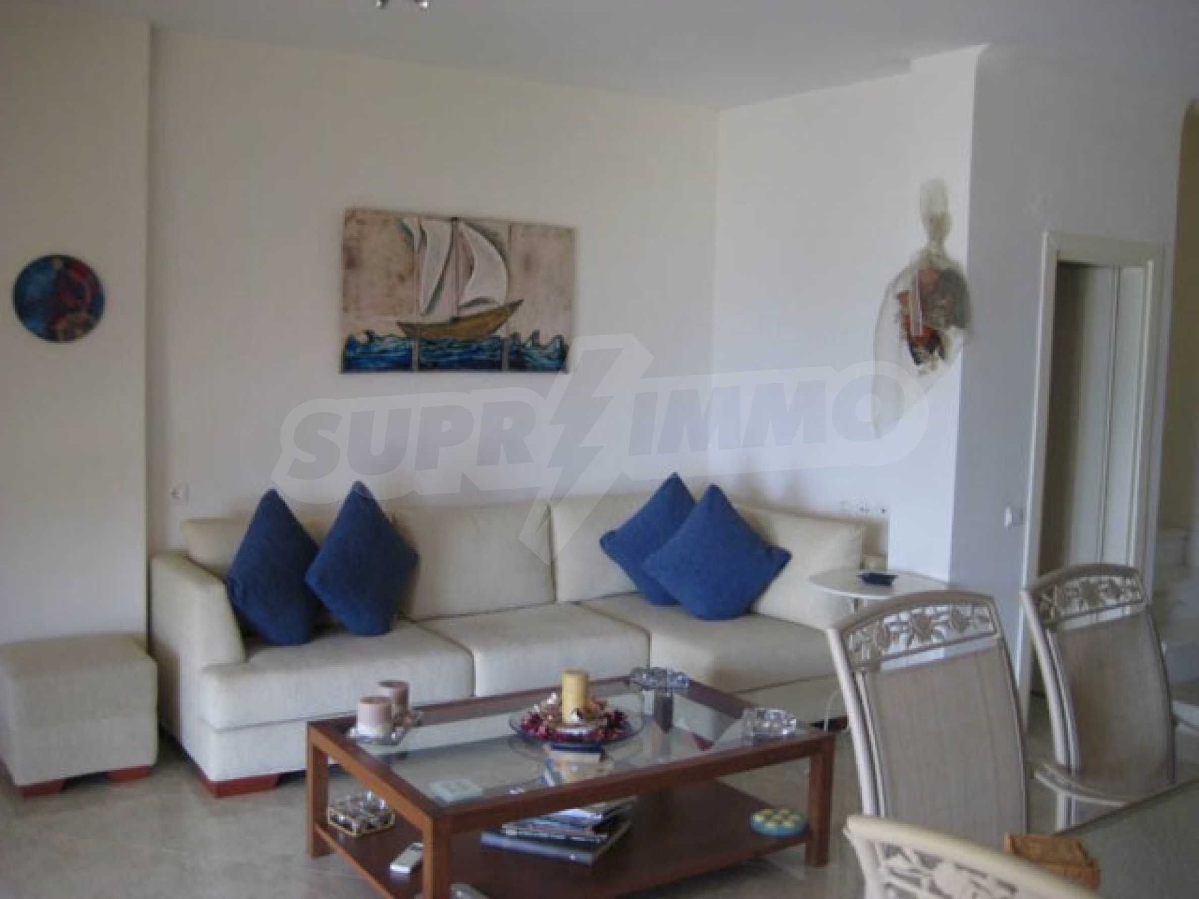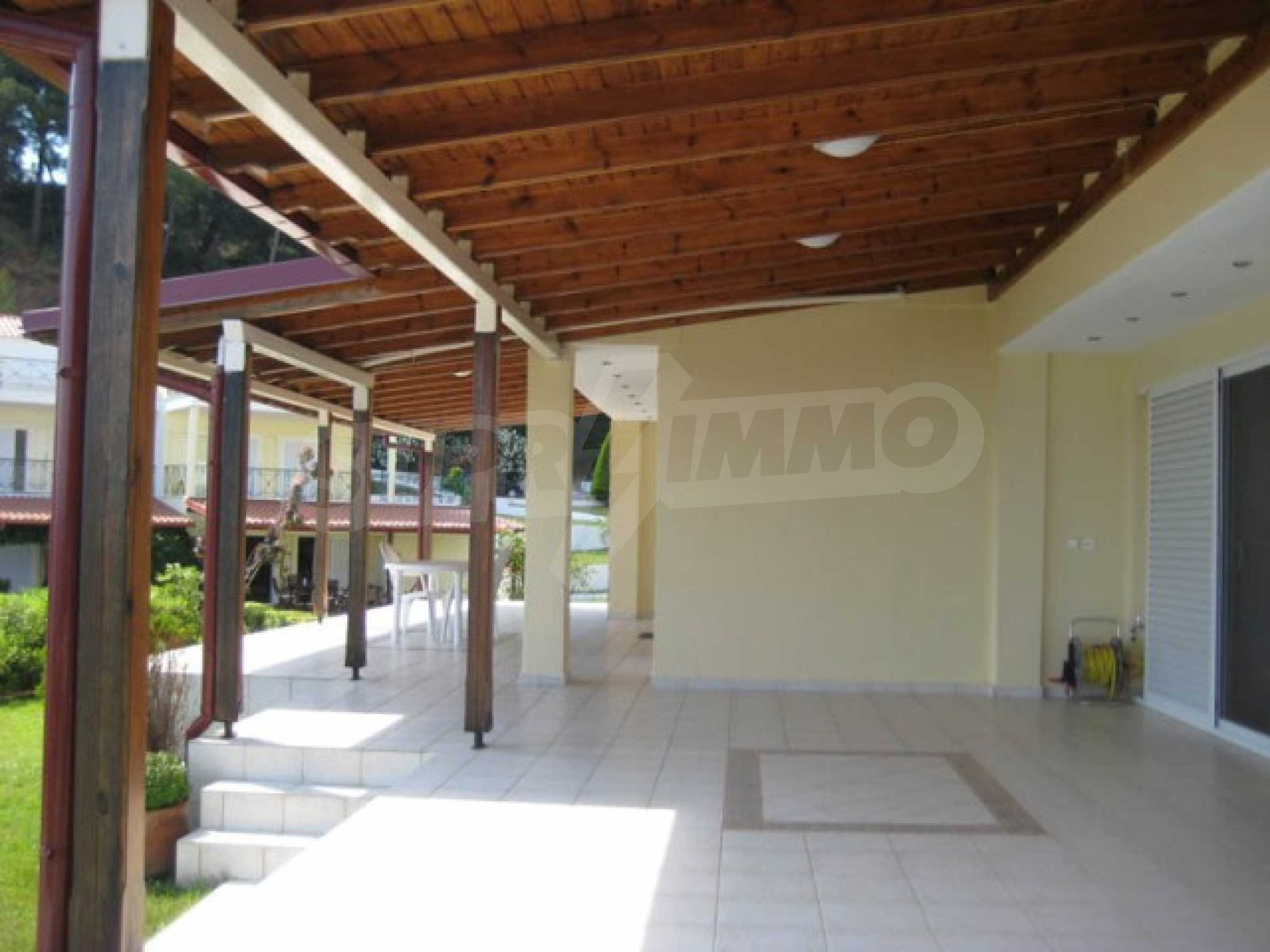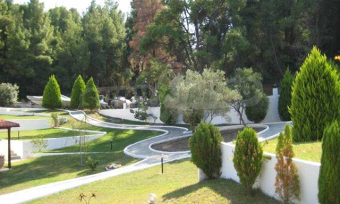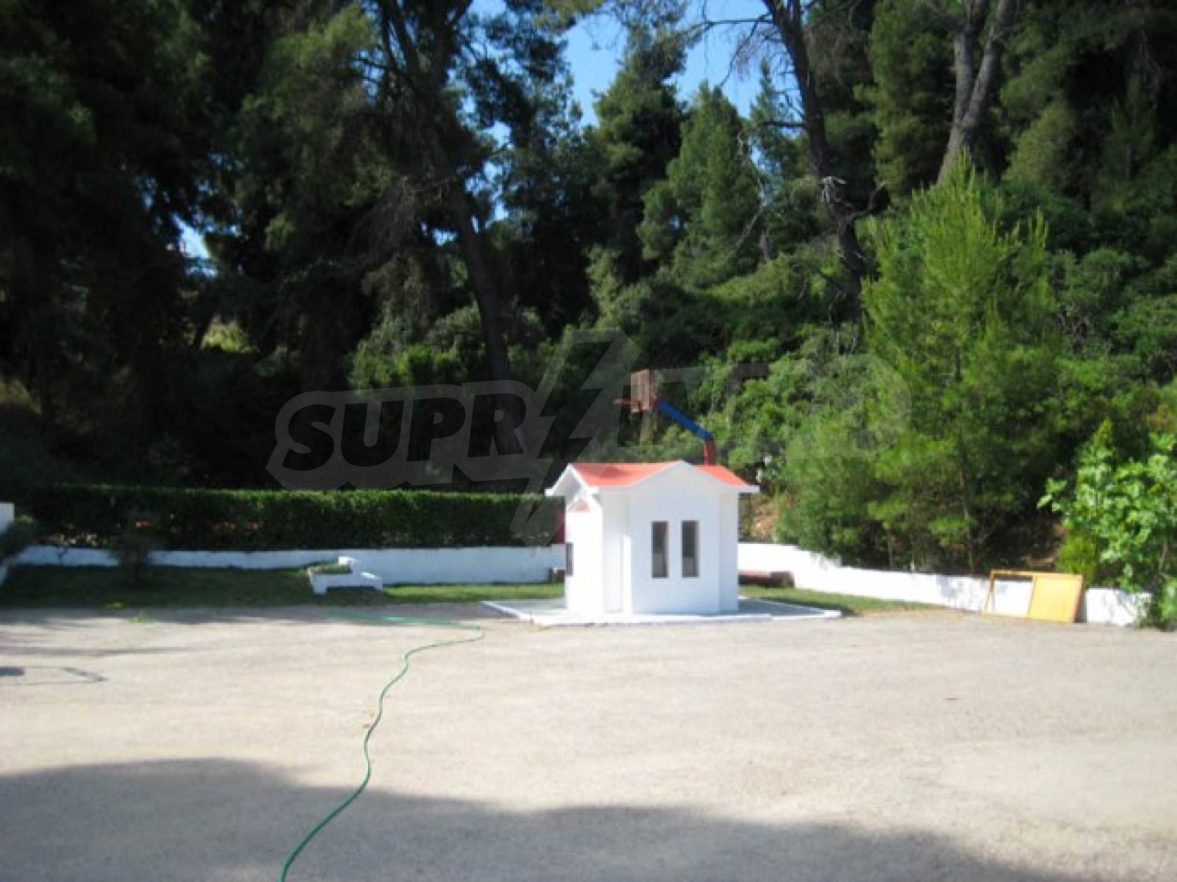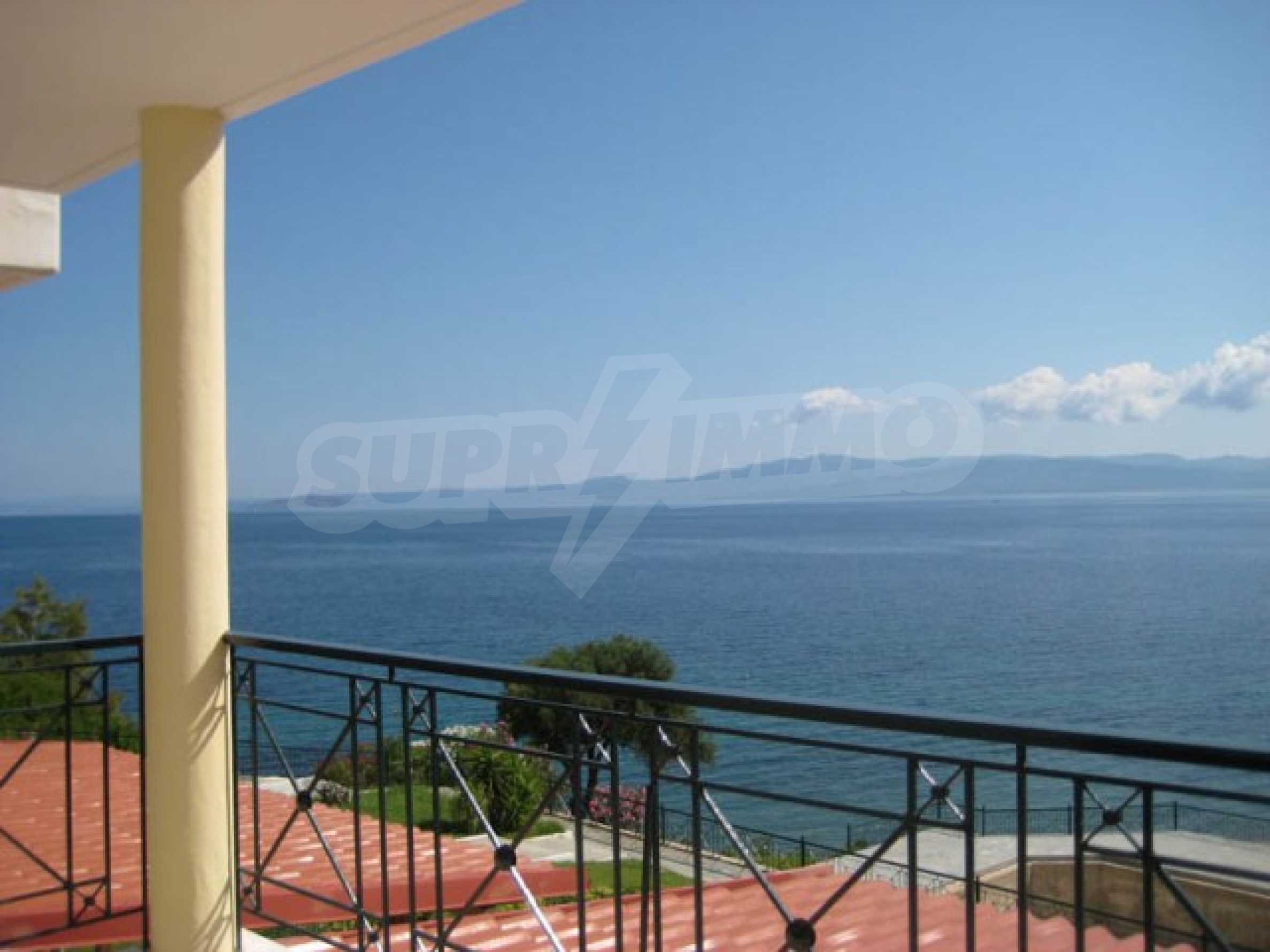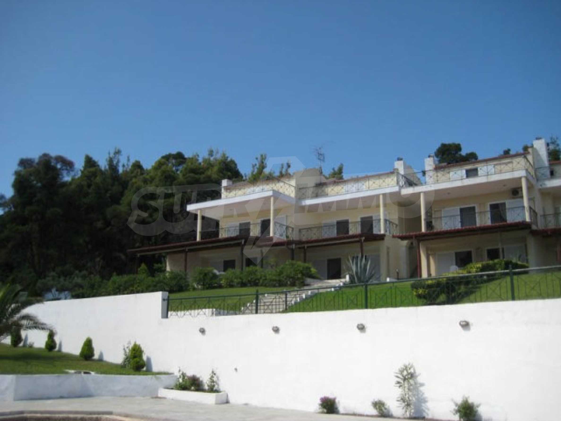 Der Komplex hat einen Privatstrand nur für die Eigentümer des Komplexes und ist von anderswo nicht zugänglich. Das Wasser ist das sauberste in ganz Chalkidiki, da es 10 km entfernt keinen Hafen, kein Hotel oder sonst etwas gibt.