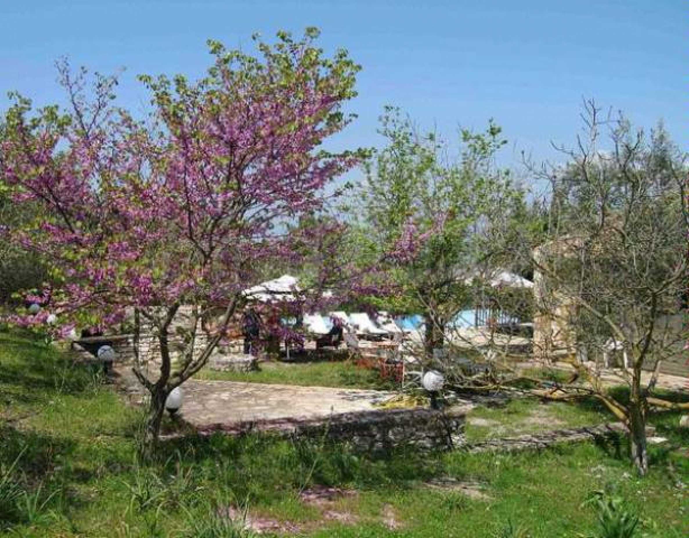 Der Garten des Grundstücks ist mit 450 Olivenbäumen (die 2006 10 Tonnen Oliven hervorbrachten) und 150 anderen Baumarten bepflanzt.