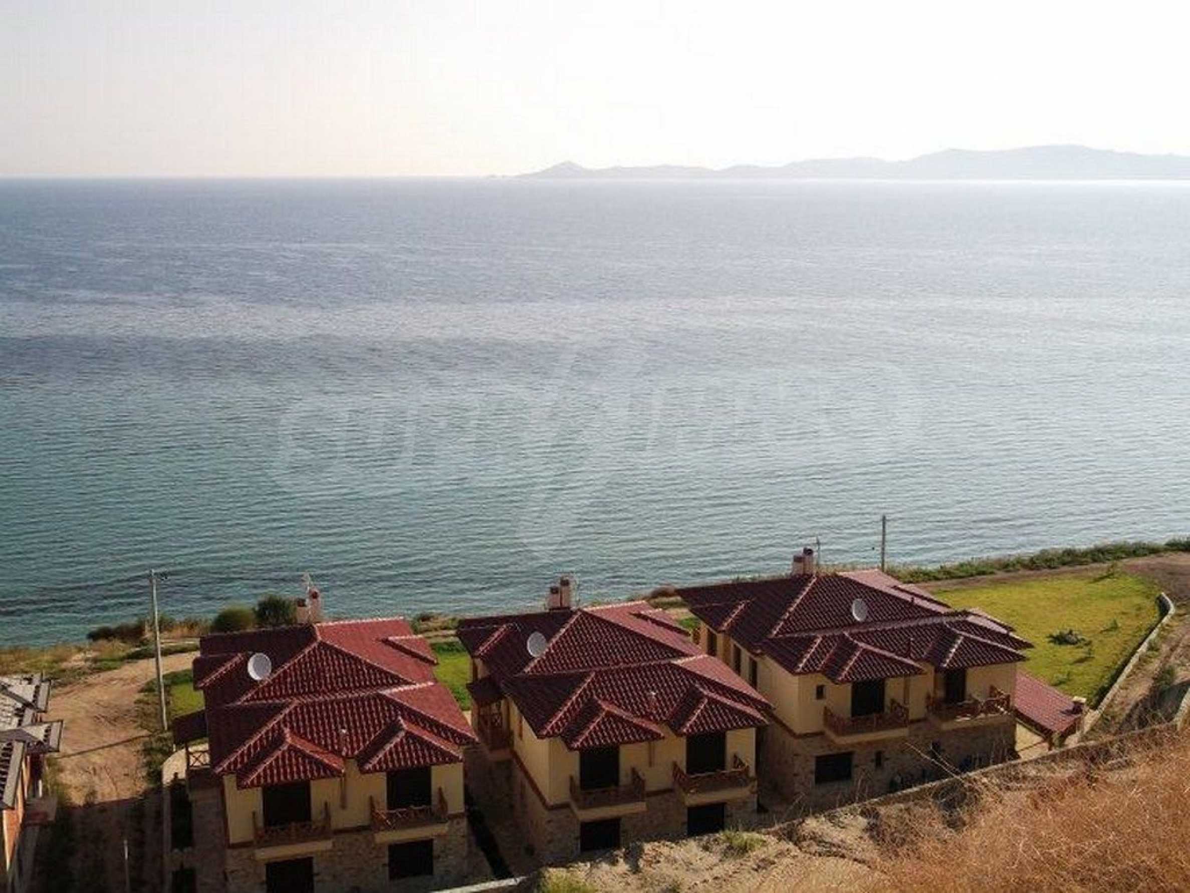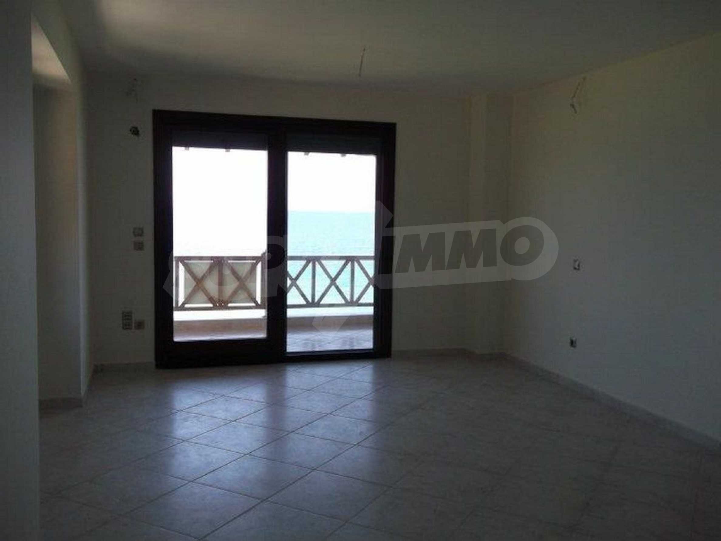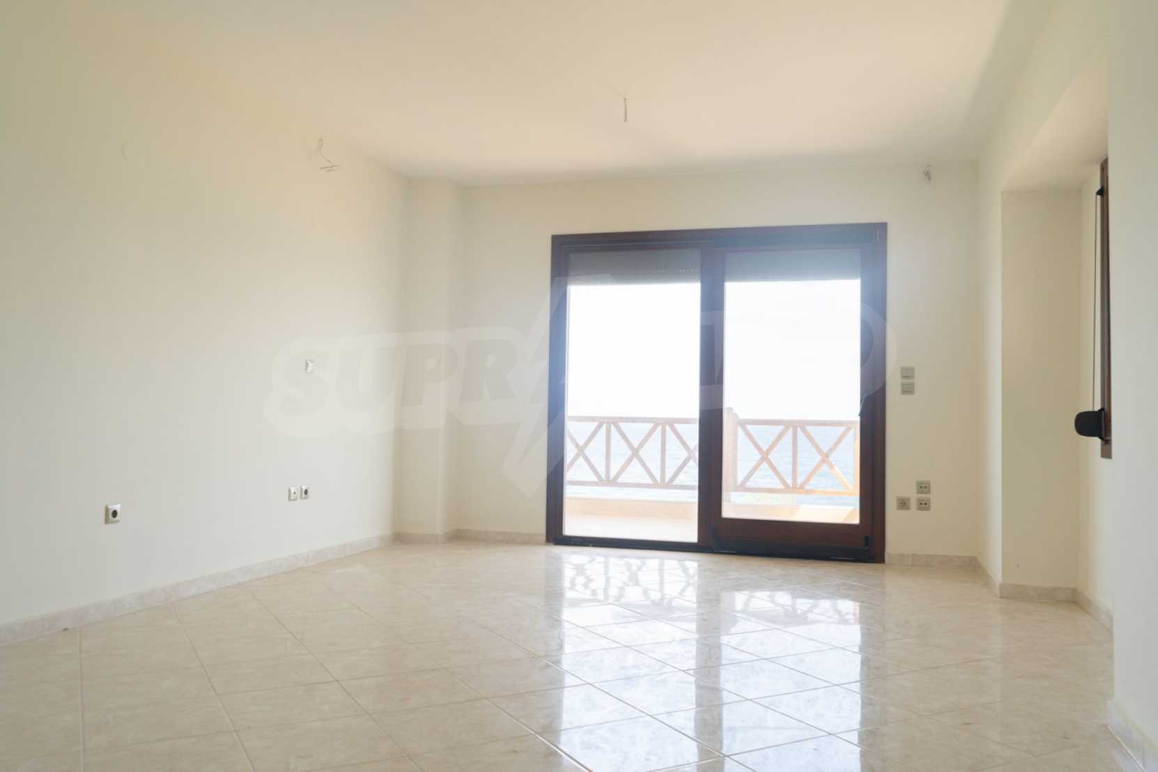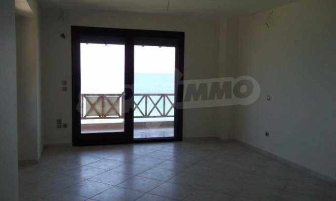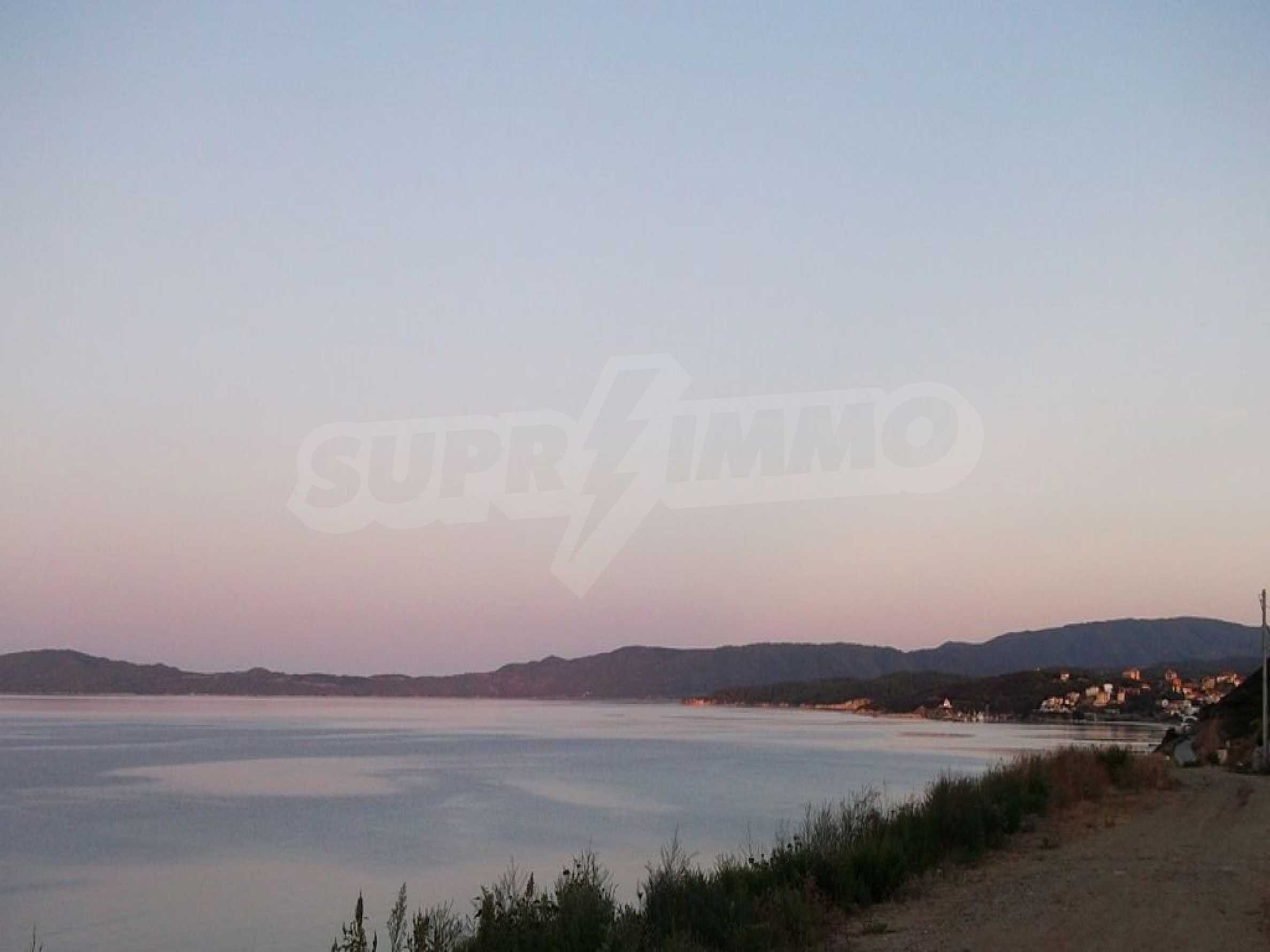 Neu gebaute Wohnung in Nea Roda, Berg Athos, Chalkidiki. Das Dorf liegt im südöstlichen Teil der Halbinsel Chalkidiki, im engsten Teil der Landenge des Athos, 6 km südöstlich von Ierissos. Das Anwesen erstreckt sich über 130 m² an der ersten Strandlinie (10 m) mit außergewöhnlichem Meerblick.