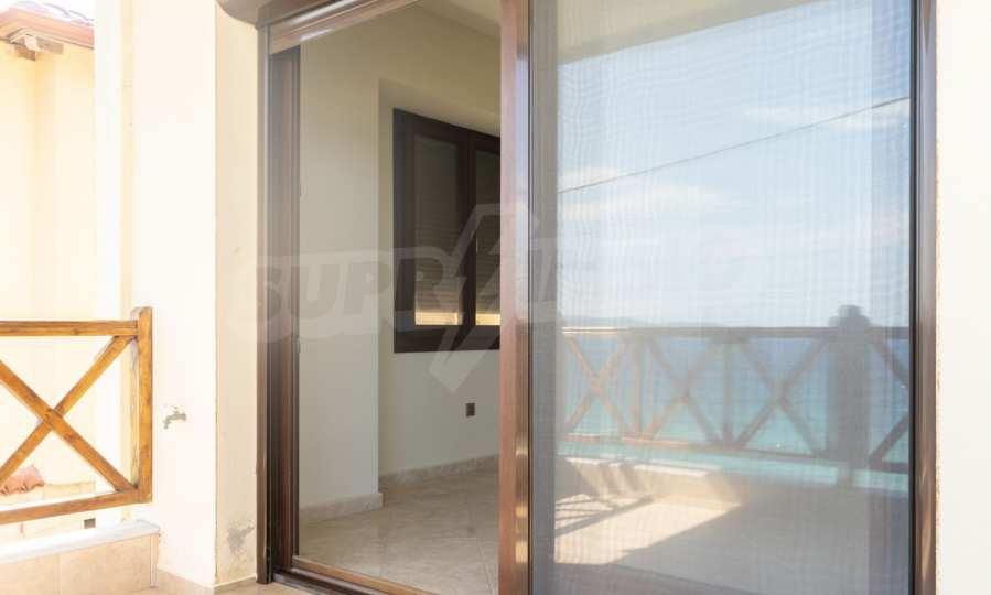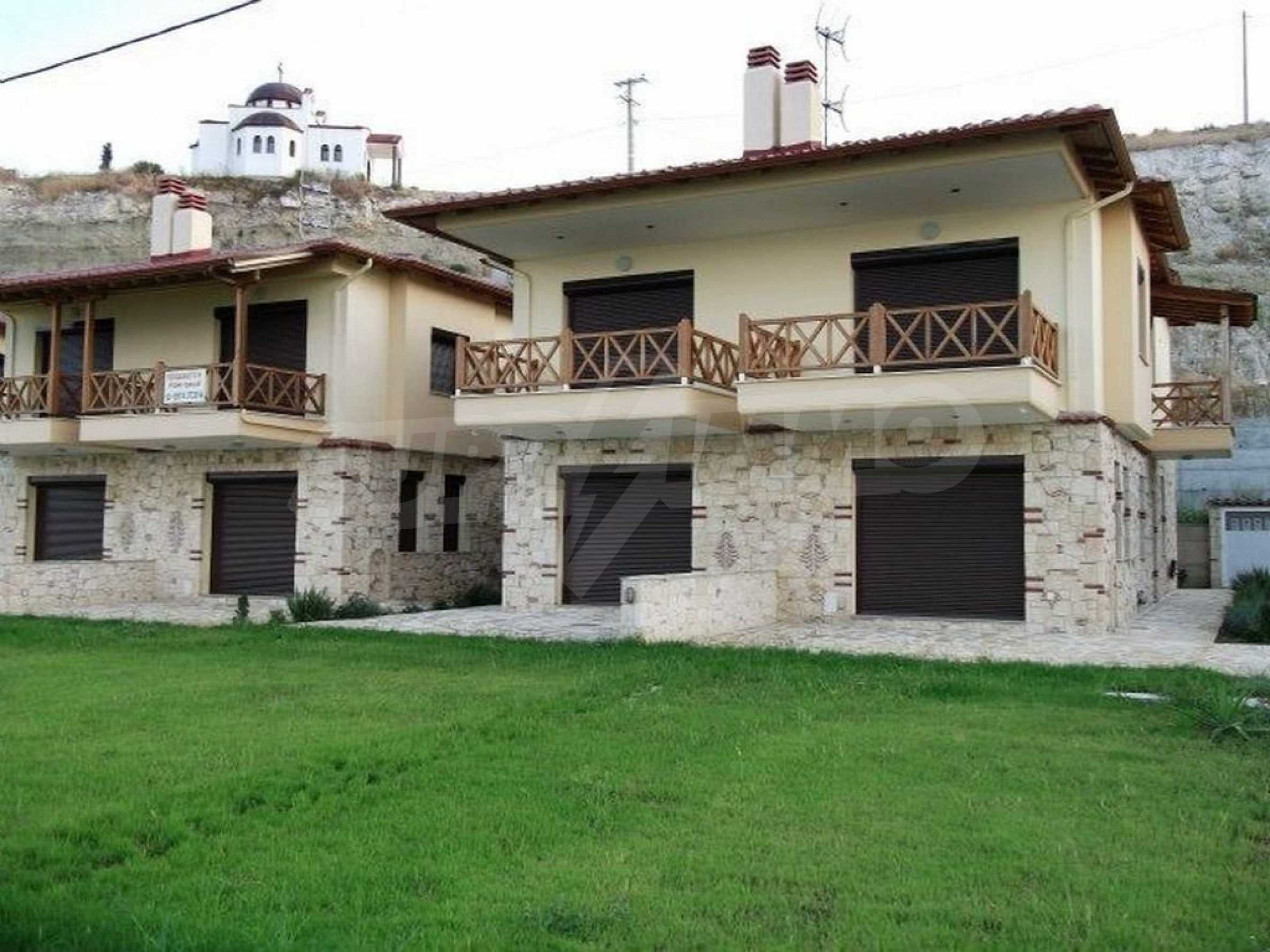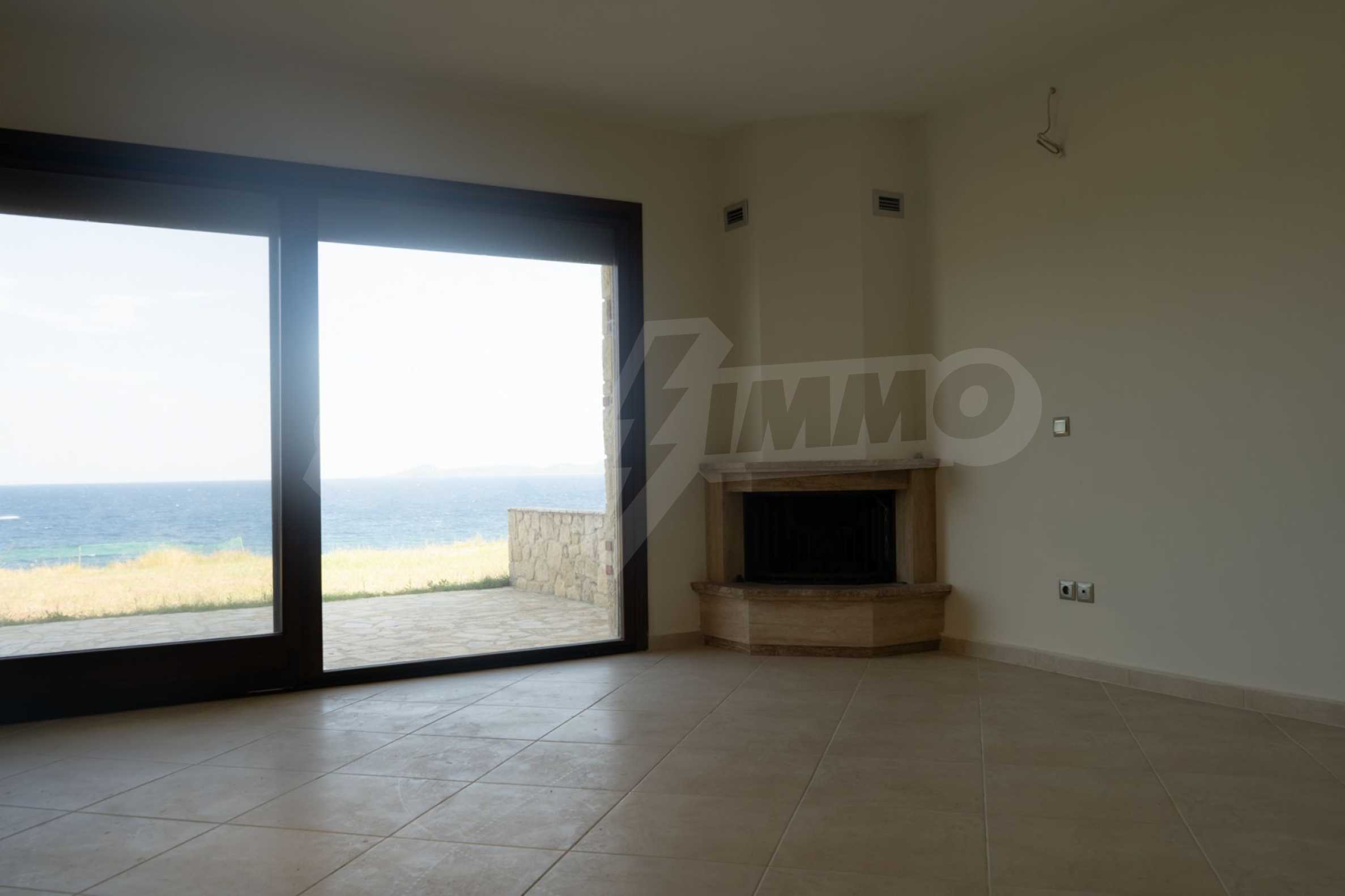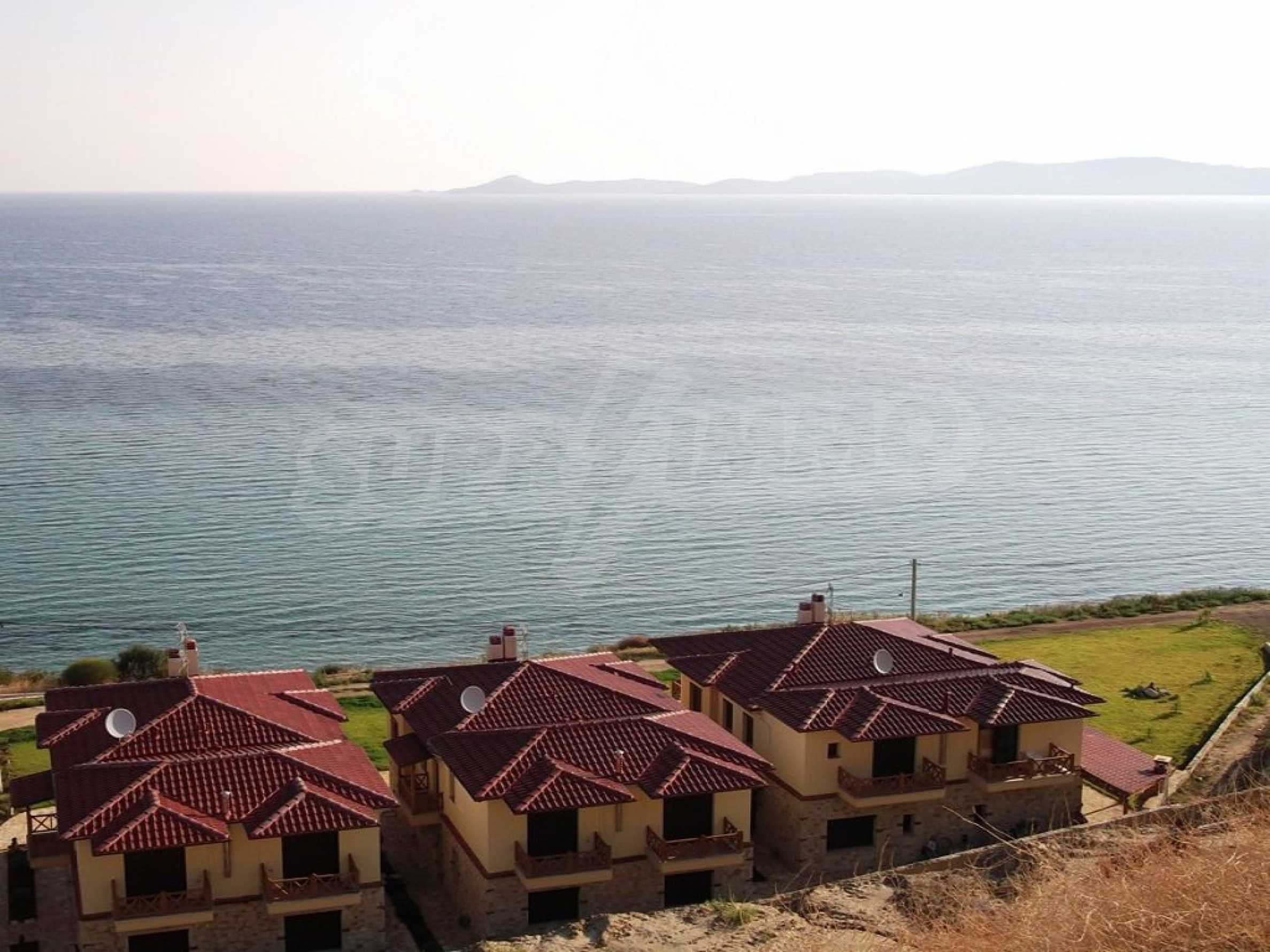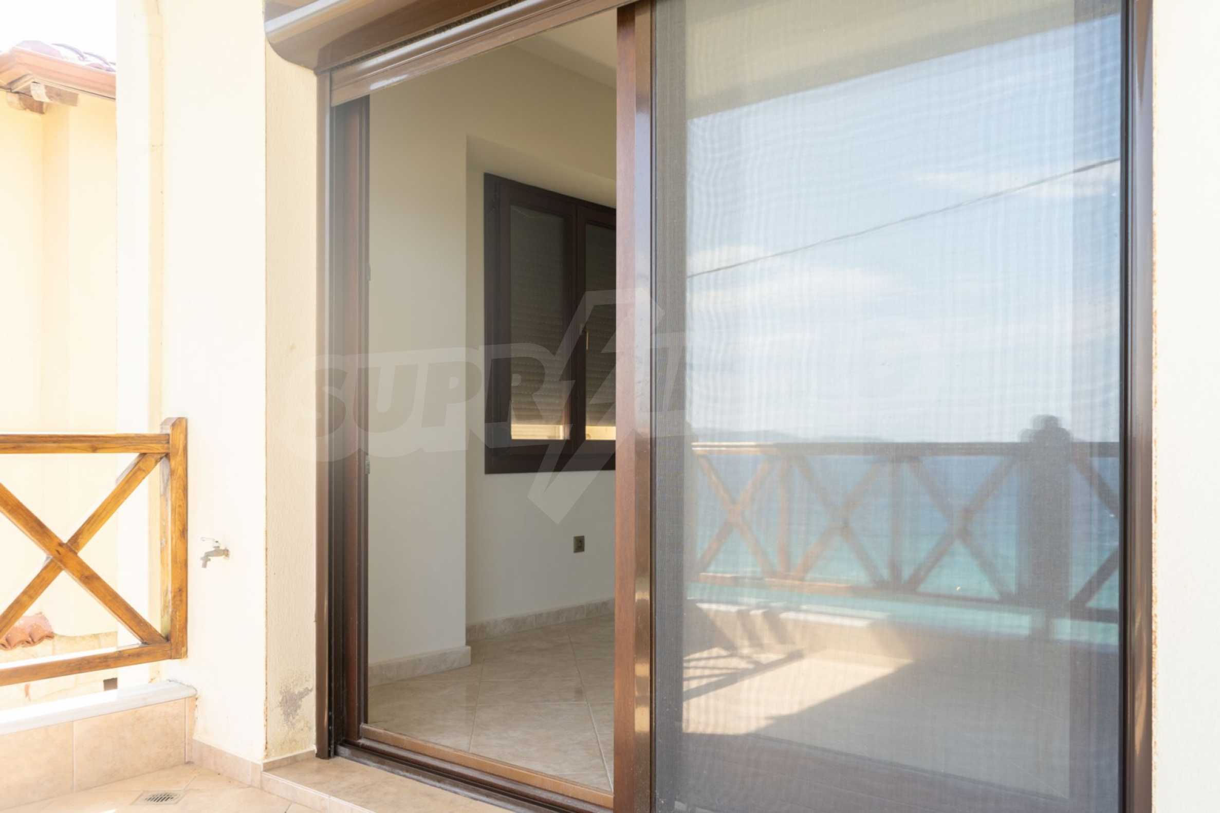 Neu gebaute Wohnung in Nea Roda, Berg Athos, Chalkidiki. Das Dorf liegt im südöstlichen Teil der Halbinsel Chalkidiki, im engsten Teil der Landenge des Athos, 6 km südöstlich von Ierissos. Das Anwesen erstreckt sich über 130 m² an der ersten Strandlinie (10 m) mit außergewöhnlichem Meerblick.