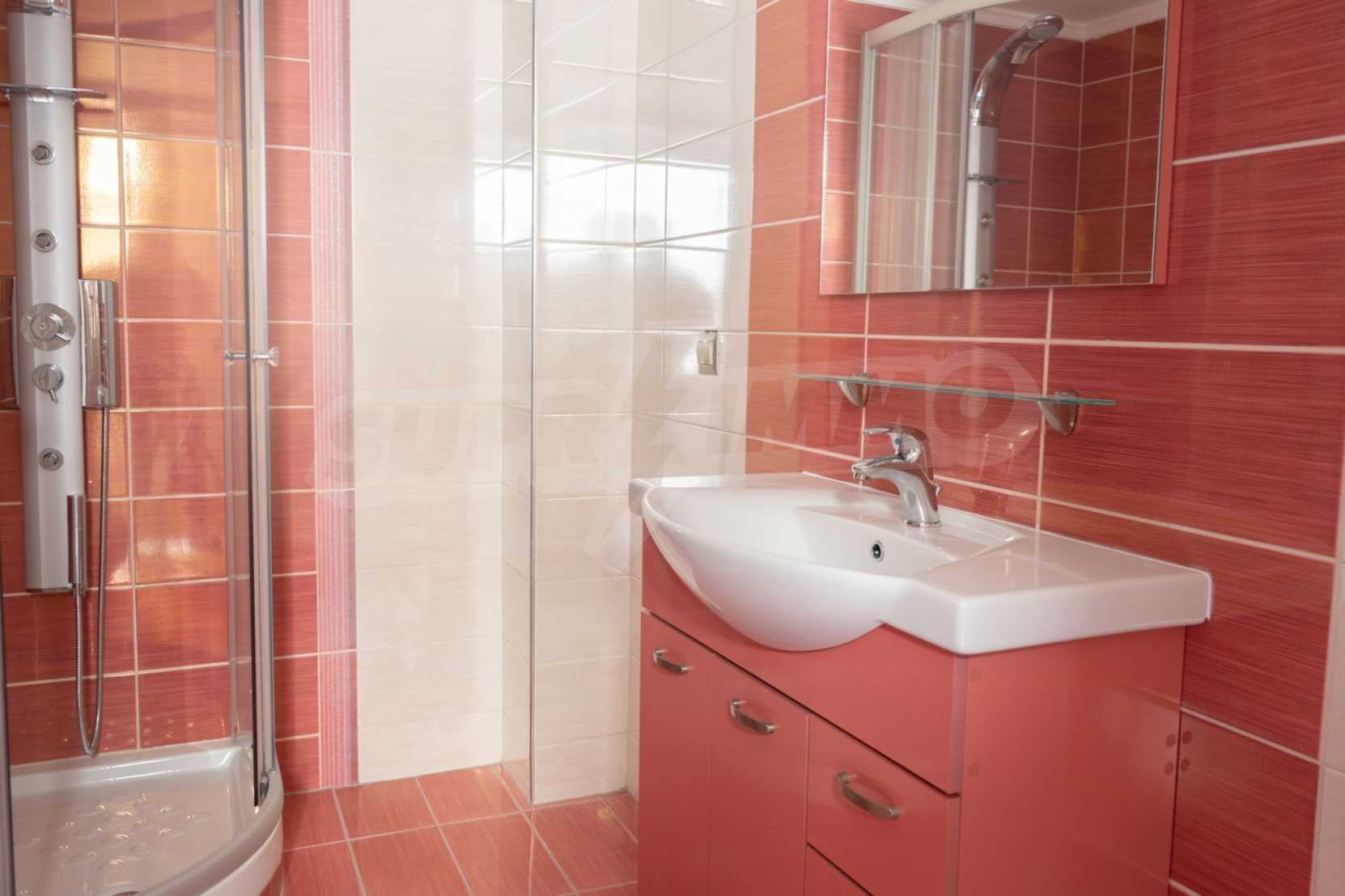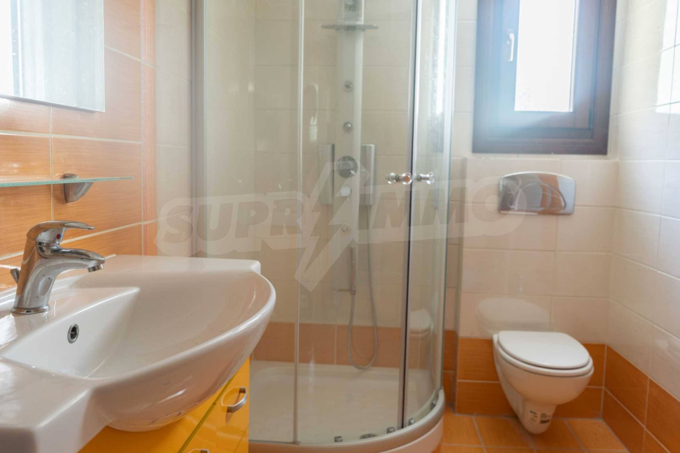 Es besteht aus drei Schlafzimmern, einem Wohnzimmer, einer Küche und zwei Badezimmern. Die Böden sind mit Granitfliesen, die Fenster sind aus Holz. Das Luxusapartment bietet auch andere moderne Annehmlichkeiten - Hydromassage, Whirlpool, Kamin und geräumige Veranden. Darüber hinaus ist das Anwesen von 120 qm umgeben. Garten, gepflegt mit automatischer Bewässerung. Es hat einen Parkplatz.