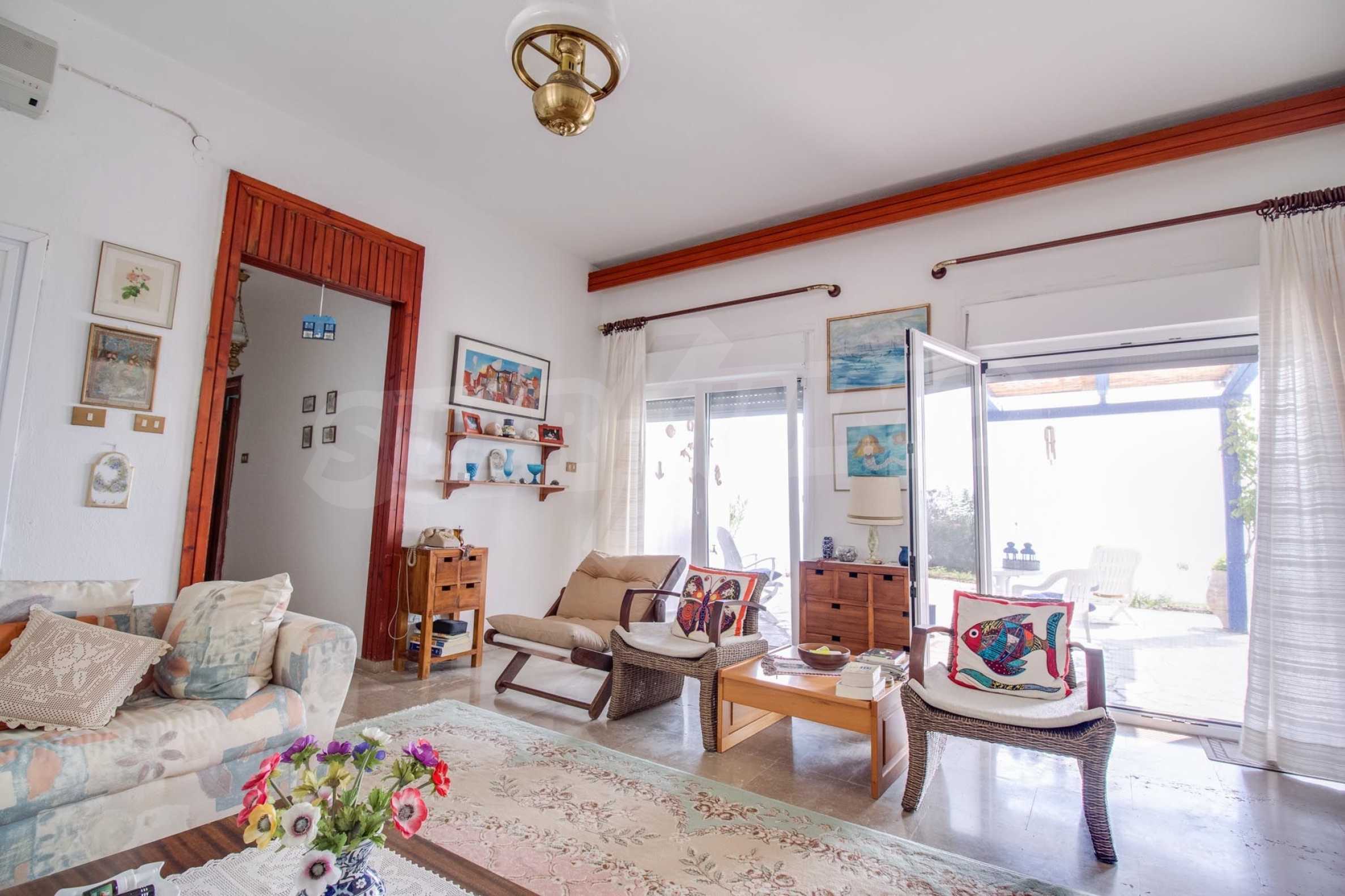 Das Haus hat eine Fläche von 125 qm. und befindet sich in einem großen Hof mit einer Fläche von 2.200 qm. neben einem Sandstrand. Das 1968 erbaute Haus wurde im Jahr 2000 komplett renoviert und die Küche im Jahr 2008. Das Haus verfügt über ein geräumiges Wohnzimmer, 2 Schlafzimmer, ein Badezimmer mit WC und eine Gästetoilette. Das Anwesen verfügt über eine eigene Wasserquelle und eine Klärgrube. Die Fenster im Haus sind aus Aluminium, mit einem Heizkessel im Bad und lokaler Heizung sowie Klimaanlagen in den Zimmern. Im Osten liegt die Villa nur wenige Meter von einem wunderschönen Sandstrand entfernt.