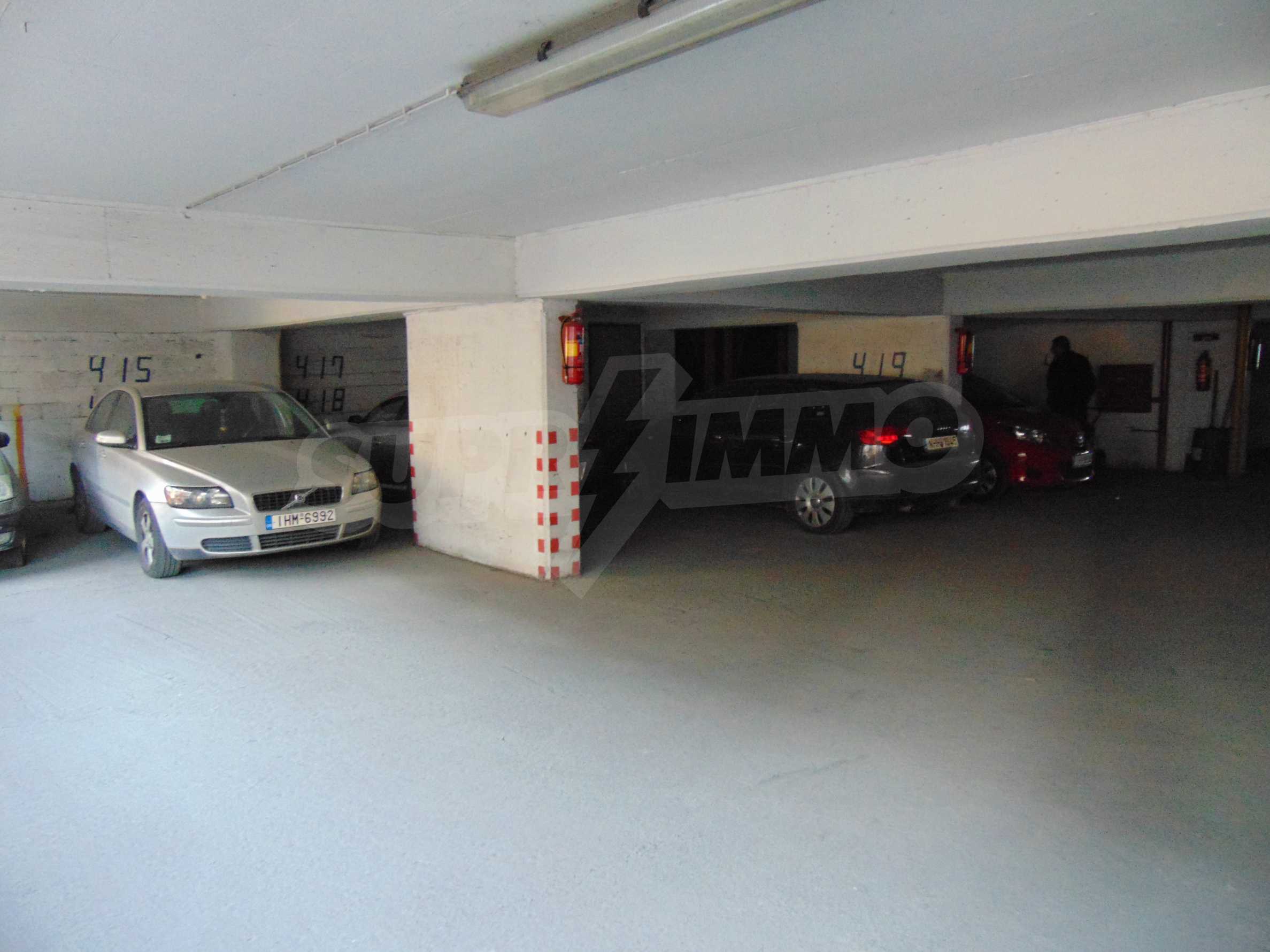 Die lizenzierten Parkplätze im Gebäude sind 182. Die tatsächliche maximale Parkkapazität beträgt jedoch 260 Parkplätze. Die meisten Räumlichkeiten werden monatlich an Kunden vermietet, die speziell nummerierte Parkplätze mieten. Dies sind die sogenannten "Stammkunden". Diese nummerierten Parkplätze befinden sich meist im Untergeschoss des Gebäudes, aber auch auf den Etagen.