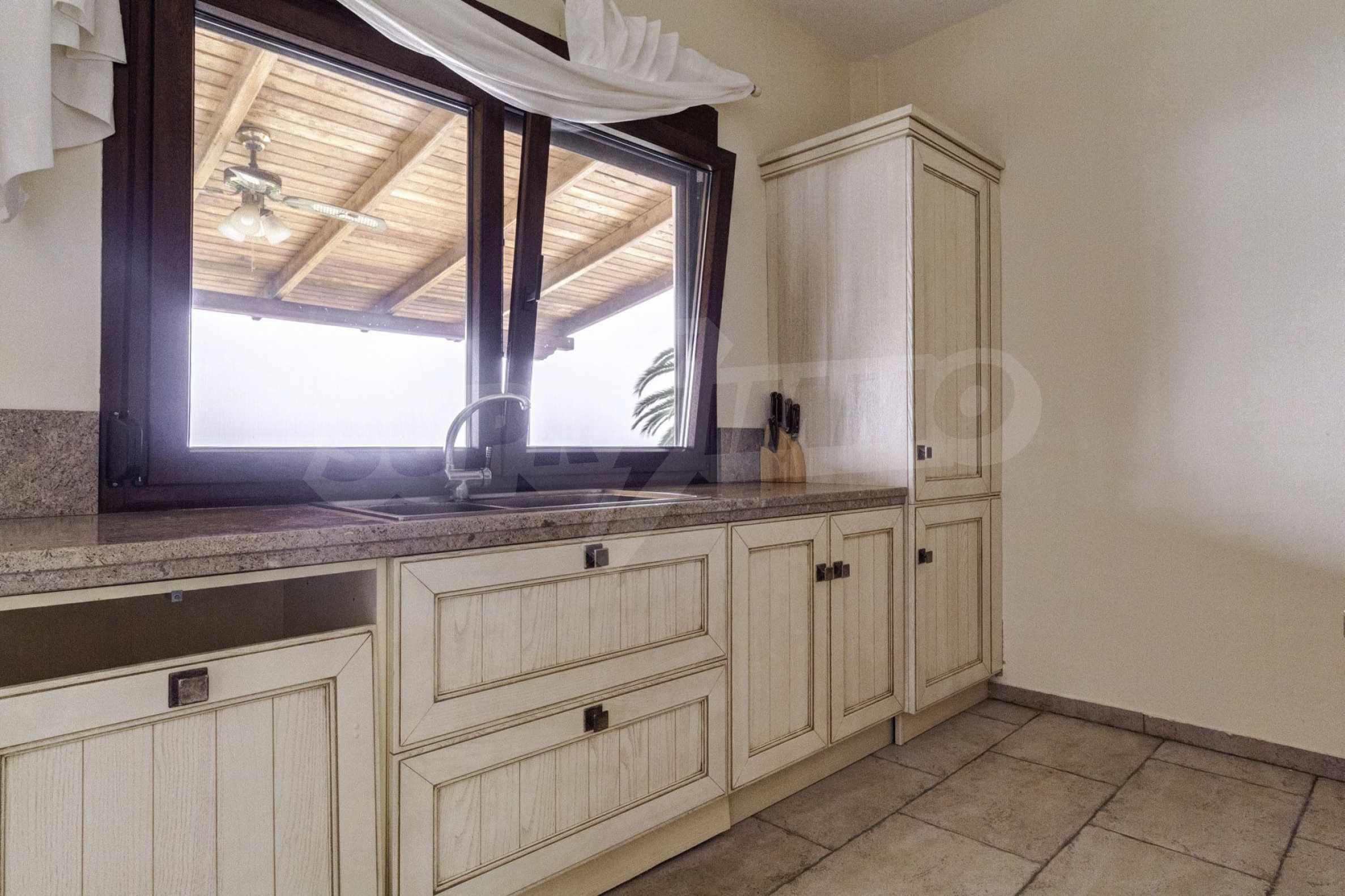 Der Wohnbereich ist in zwei gleiche Ebenen von 75 qm unterteilt. jeweils. Jede Etage besteht aus einem Wohnzimmer, einer Küche, zwei Schlafzimmern und einem Badezimmer. Das Haus wurde 2007 komplett renoviert. Das Anwesen ist mit einer Klimaanlage zum Heizen und Kühlen ausgestattet und garantiert ein komfortables und friedliches Wohnumfeld, da es über die notwendigen Möbel und Geräte für Ihren unvergesslichen Urlaub am Strand verfügt.