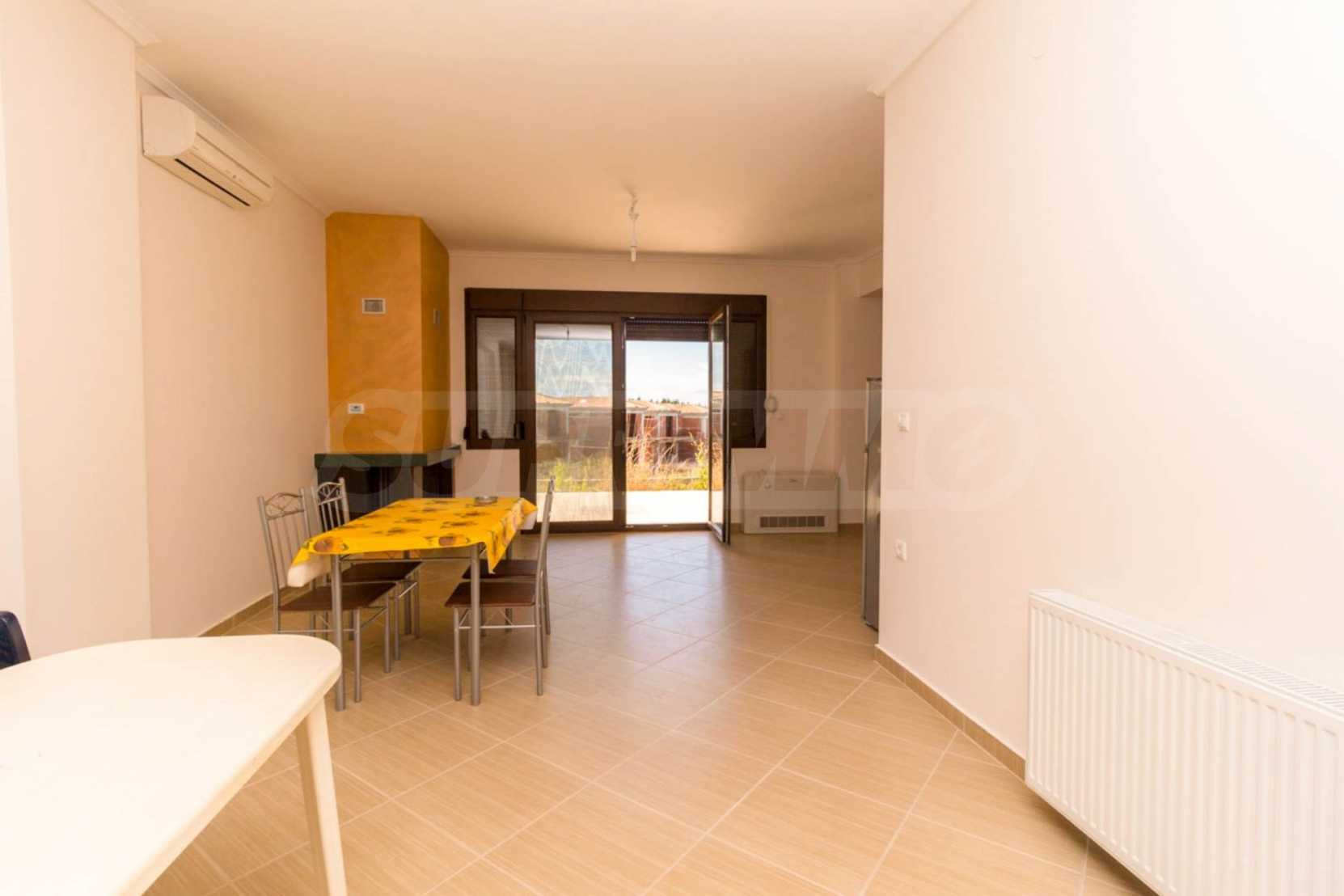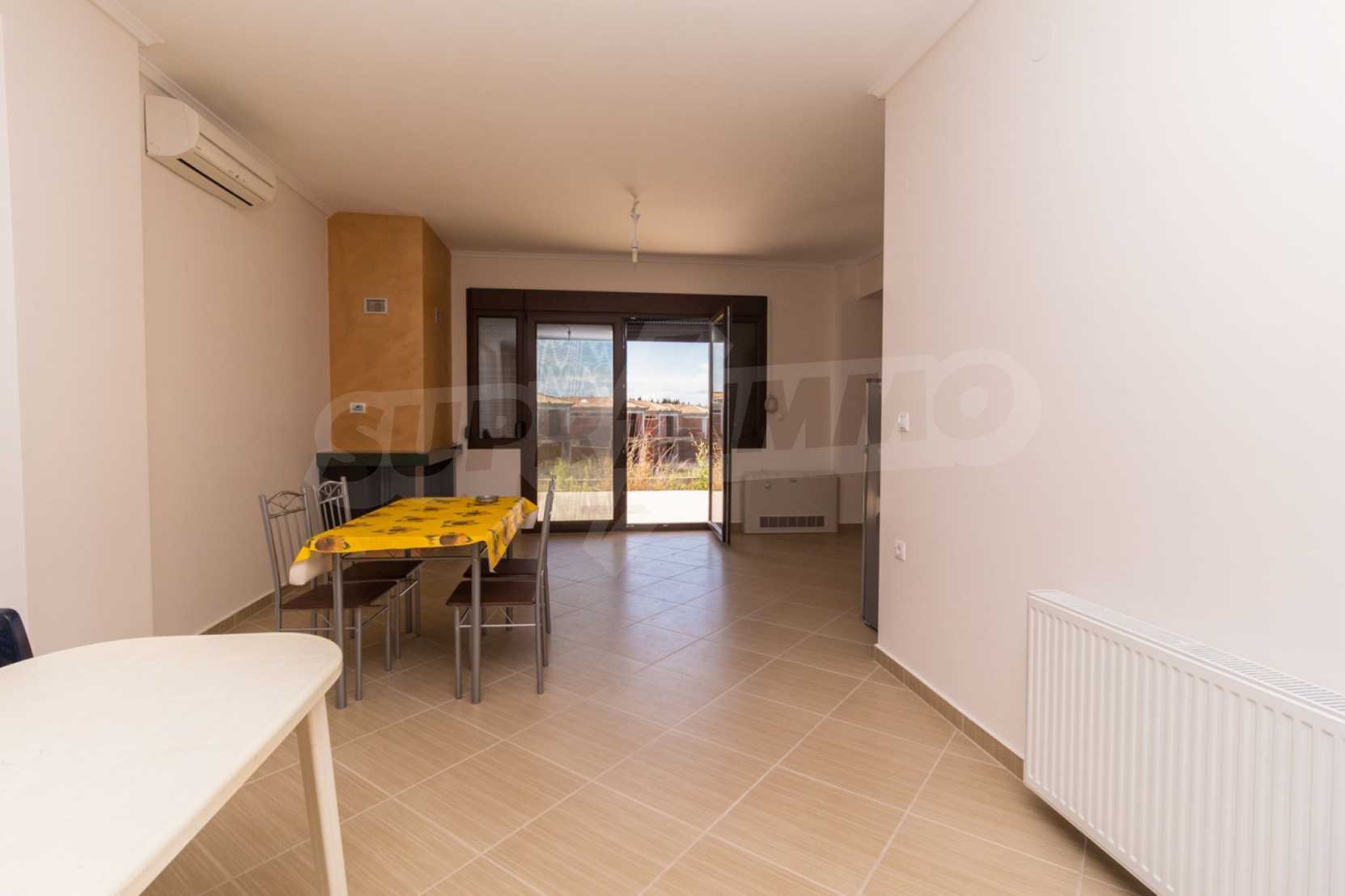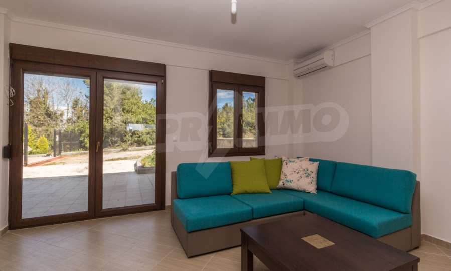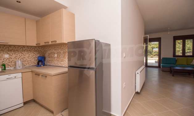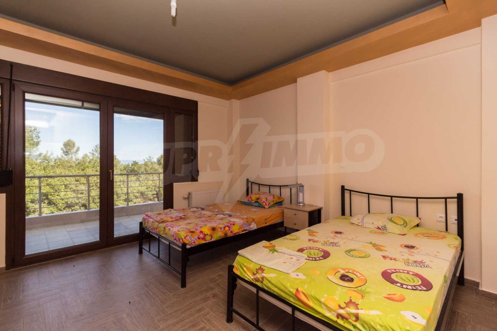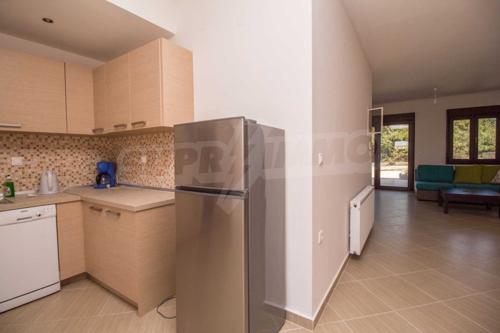 Dieses angenehme Familienferienhaus befindet sich im Dorf Paliuri am Kassandra-Arm der Halbinsel Chalkidiki. Das Haus wurde 2013 erbaut und bietet moderne und angenehme Wohnbedingungen. Es ist Teil eines neu erbauten Komplexes und erstreckt sich über zwei Ebenen. Die gesamte Fläche des Hauses beträgt 130 m², verteilt auf zwei Schlafzimmer und zwei Badezimmer sowie ein großes Wohnzimmer.