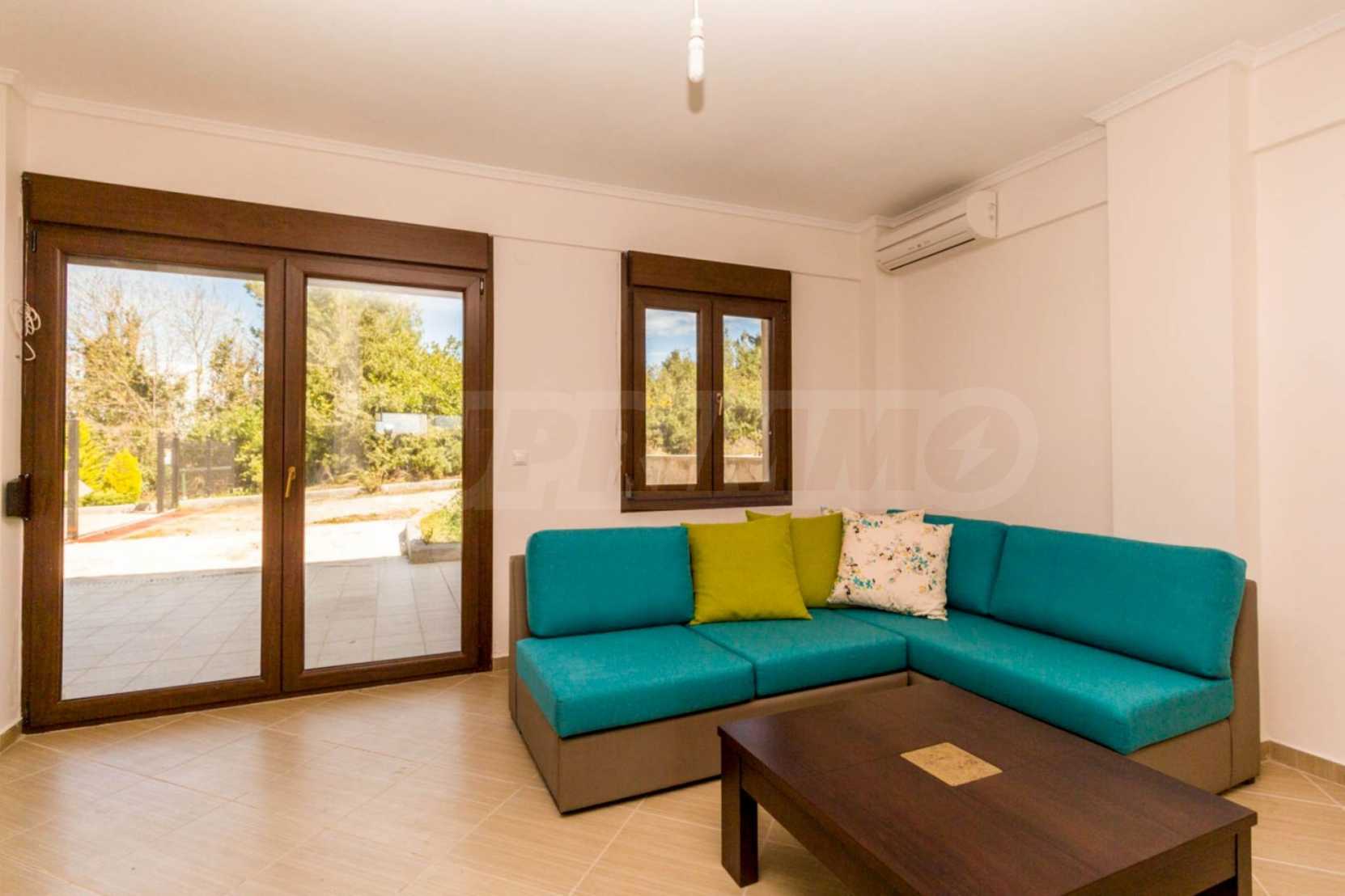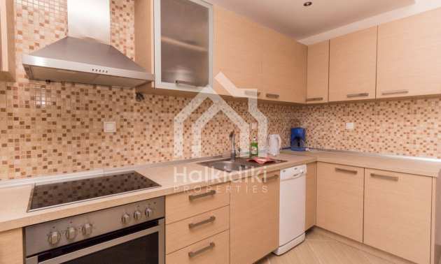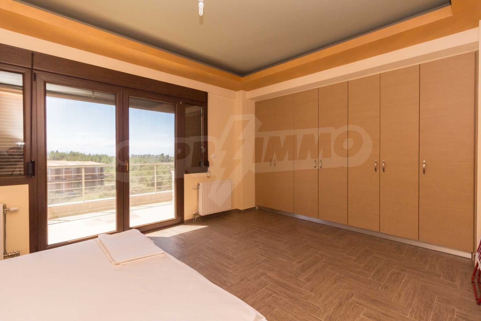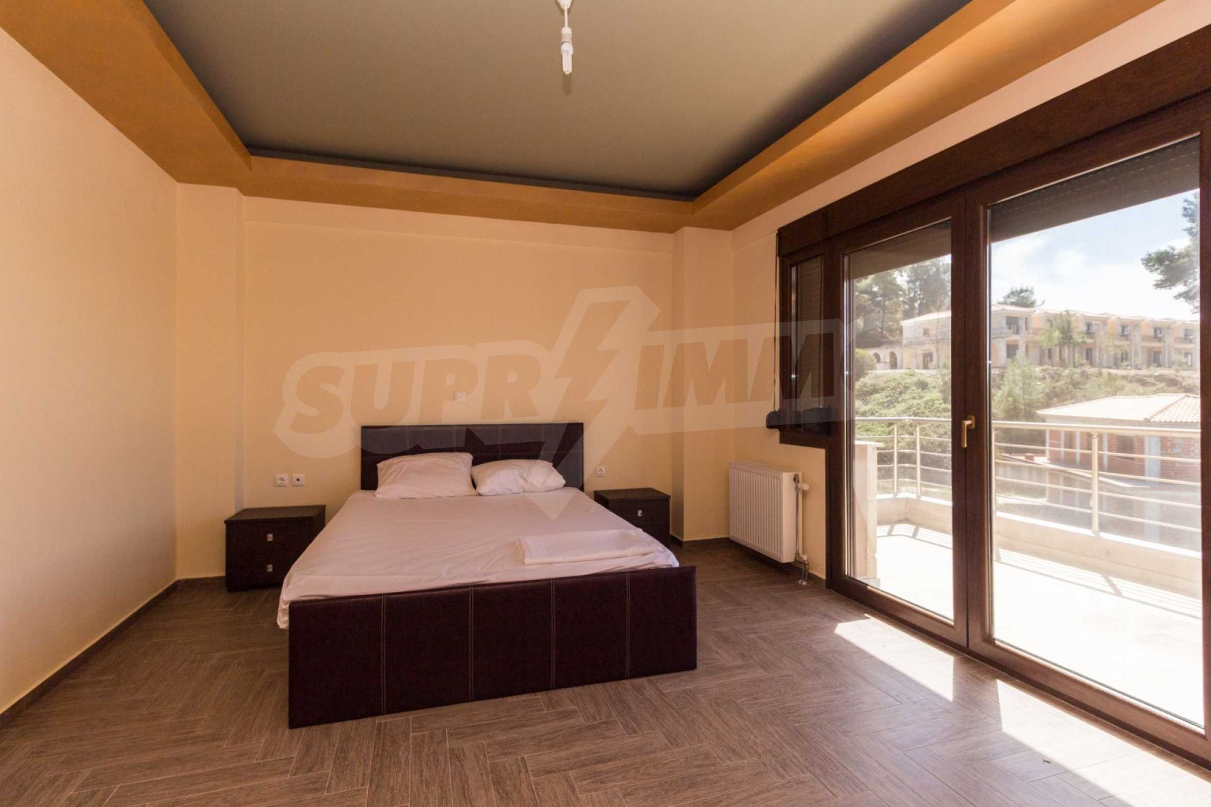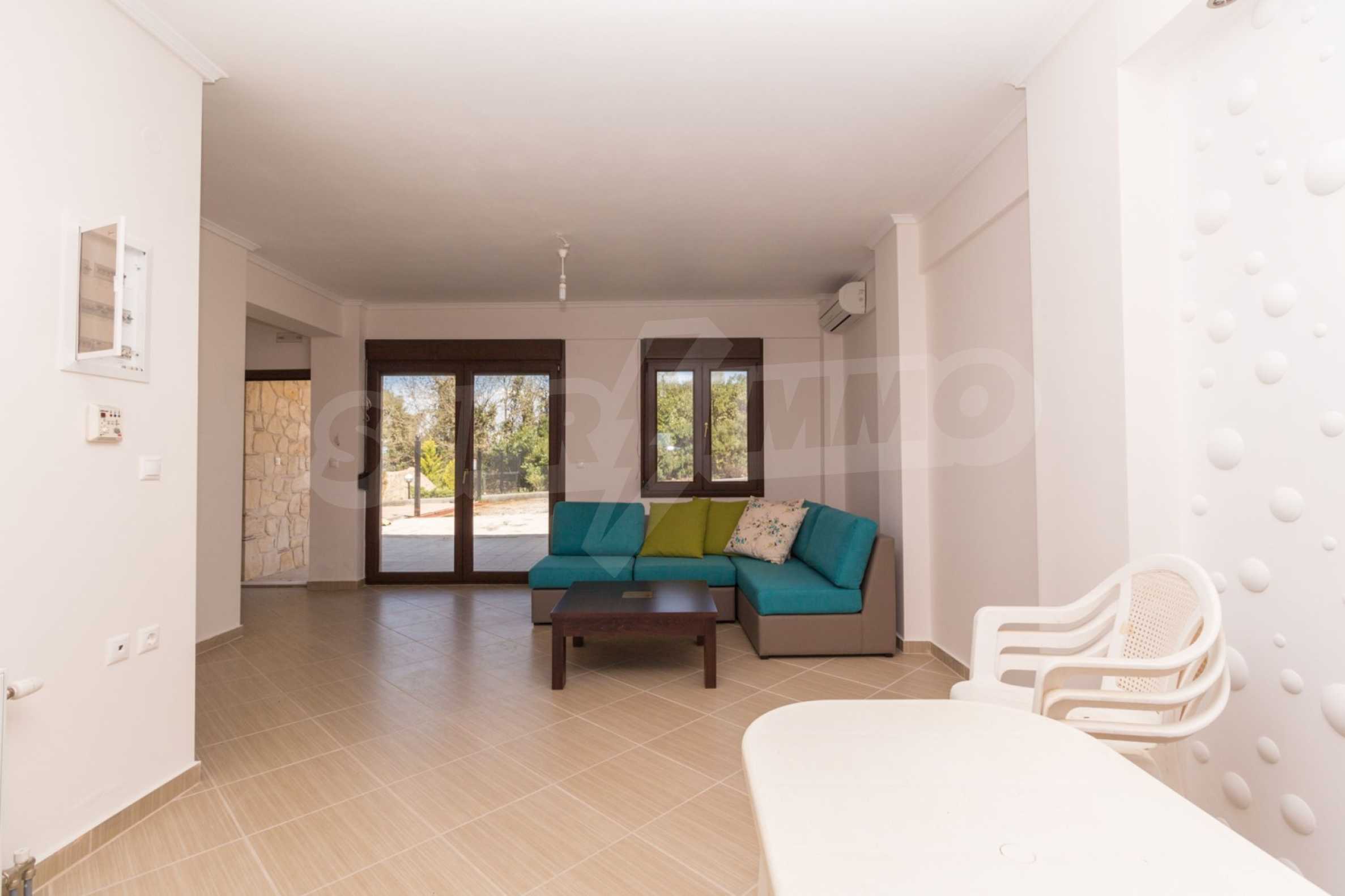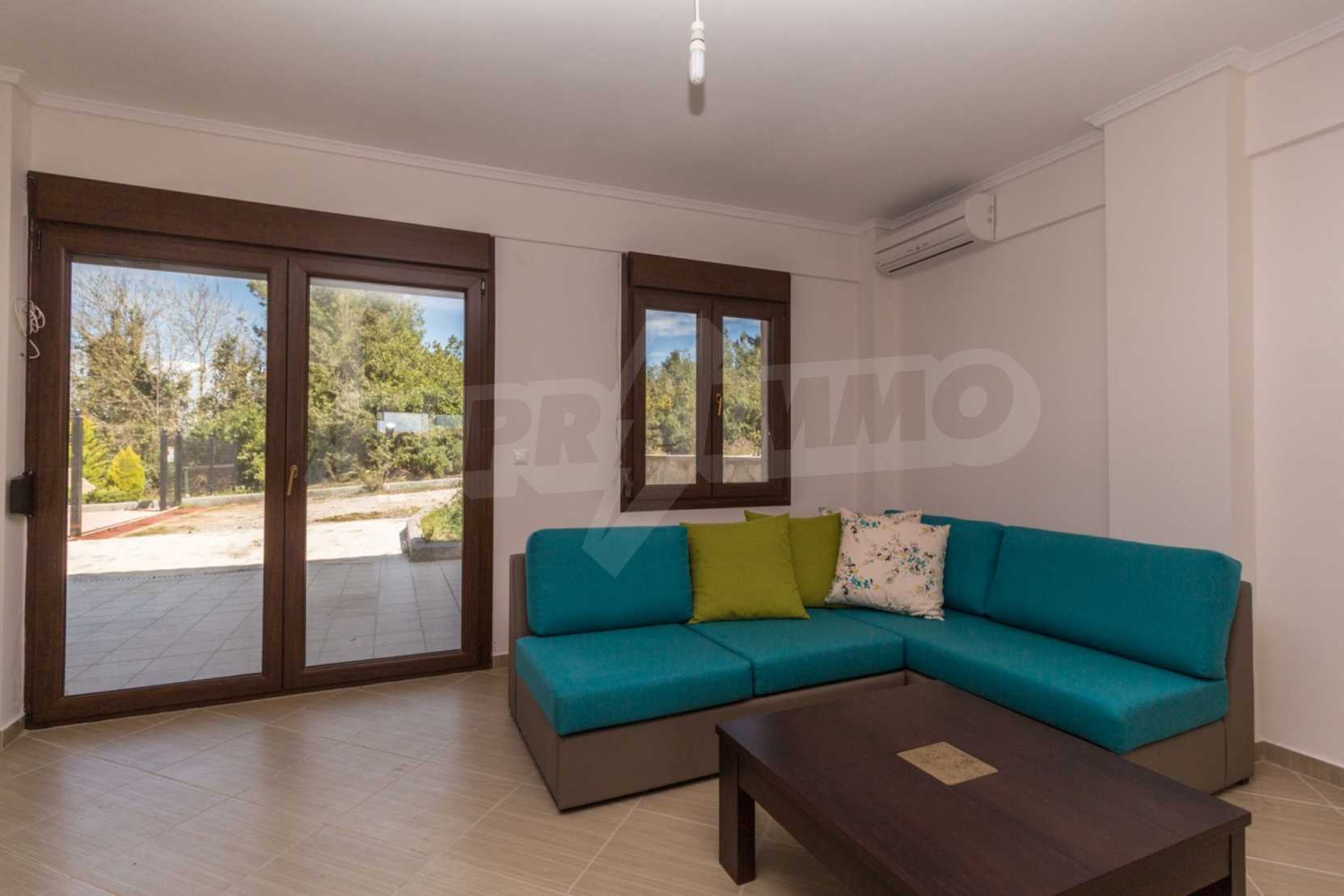 Dieses angenehme Familienferienhaus befindet sich im Dorf Paliuri am Kassandra-Arm der Halbinsel Chalkidiki. Das Haus wurde 2013 erbaut und bietet moderne und angenehme Wohnbedingungen. Es ist Teil eines neu erbauten Komplexes und erstreckt sich über zwei Ebenen. Die gesamte Fläche des Hauses beträgt 130 m², verteilt auf zwei Schlafzimmer und zwei Badezimmer sowie ein großes Wohnzimmer.