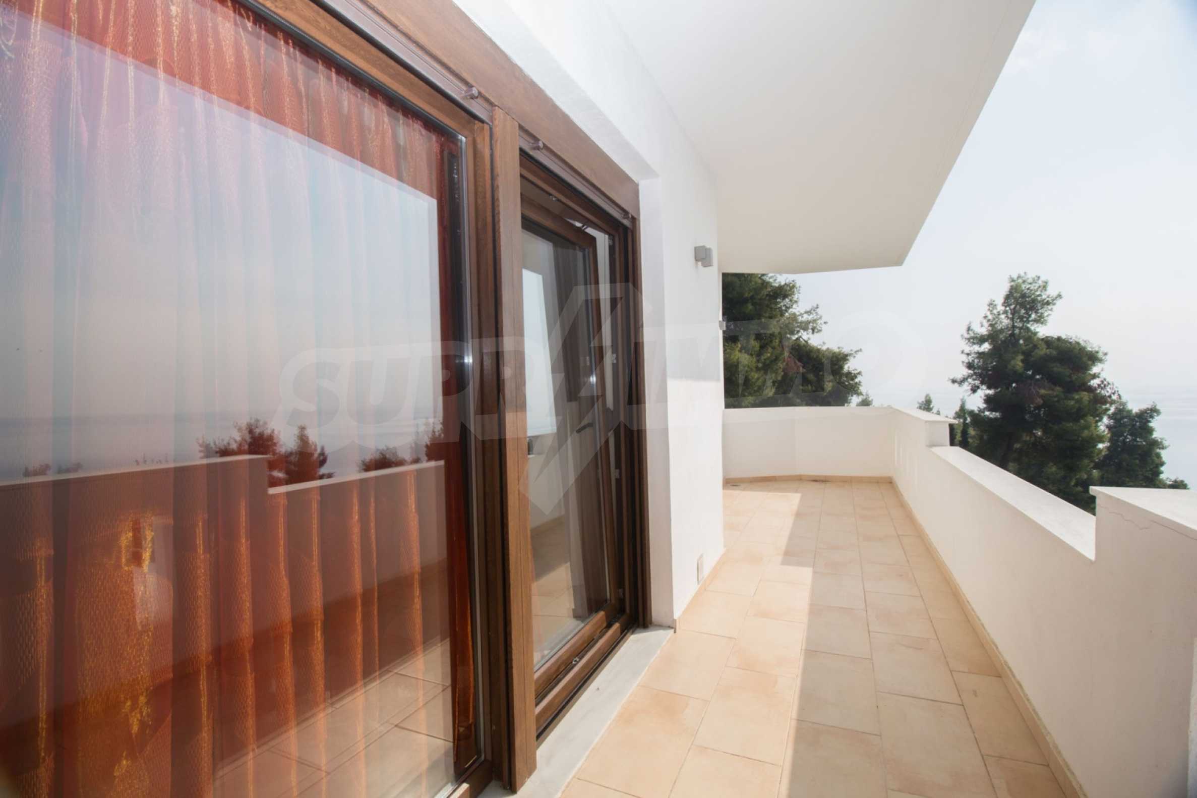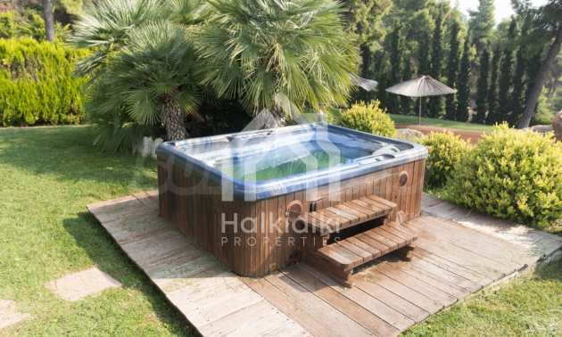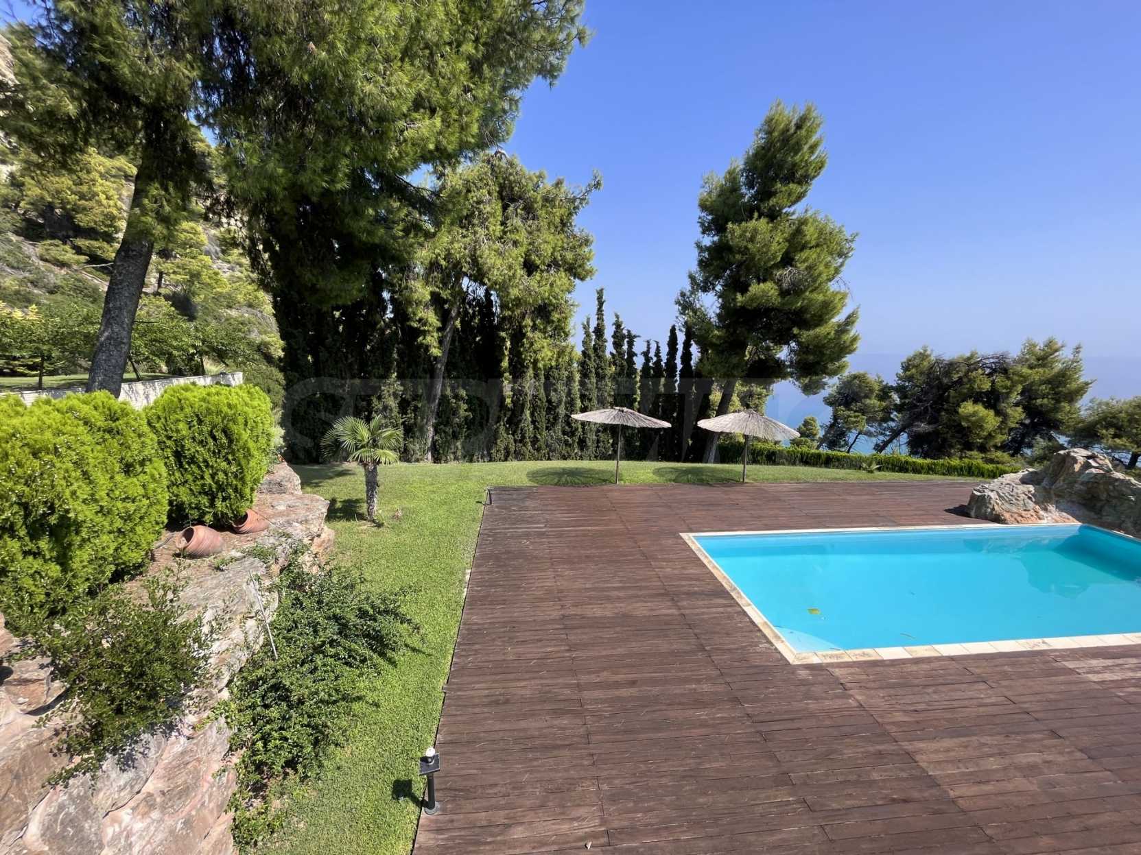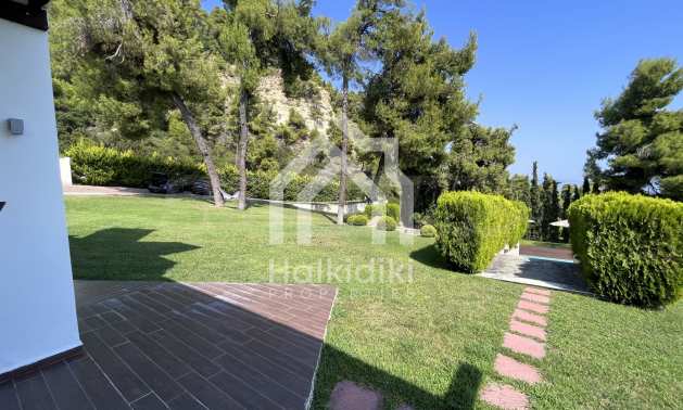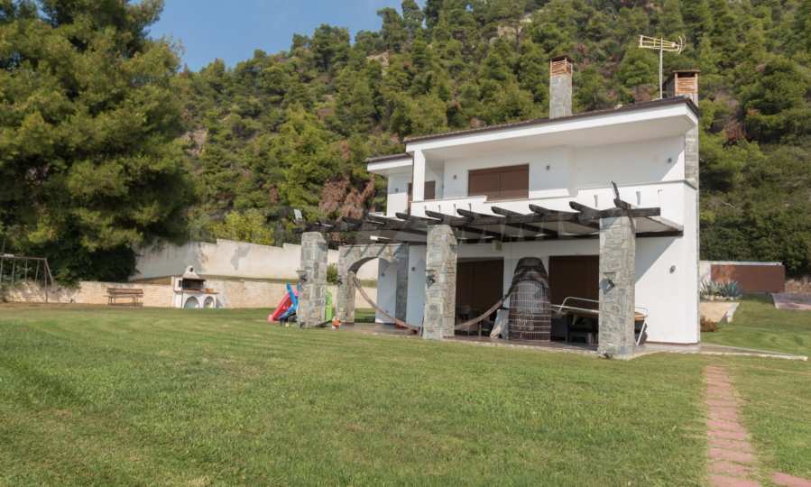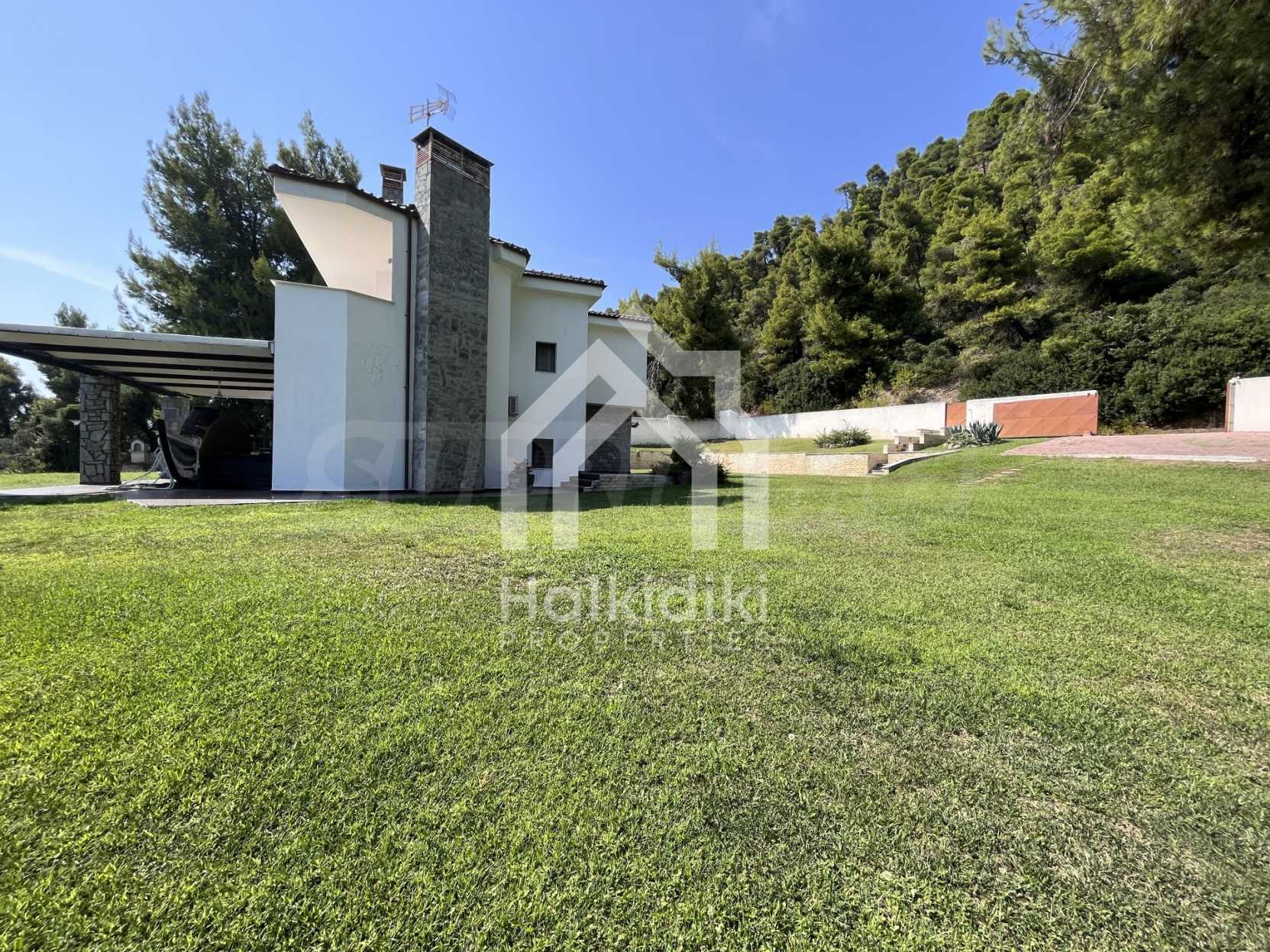 Schöne Villa mit ausgezeichneter Lage im Feriendorf Possidi, Teil des Kassandra-Arms auf Chalkidiki. Die Villa ist von einem Kiefernwald umgeben. Es wurde 2008 erbaut und hat eine Fläche von 200 qm. Bestehend aus einem großen Wohnzimmer mit Kamin, separater Küche, vier Schlafzimmern und drei Bädern mit Toiletten. Die Heizung erfolgt durch Kamin und lokale Heizung sowie Klimaanlagen. Das Anwesen ist mit einer gepanzerten Haustür, eigener Wasserquelle, Balkon, Garage, Schrank, Parkplatz ausgestattet.