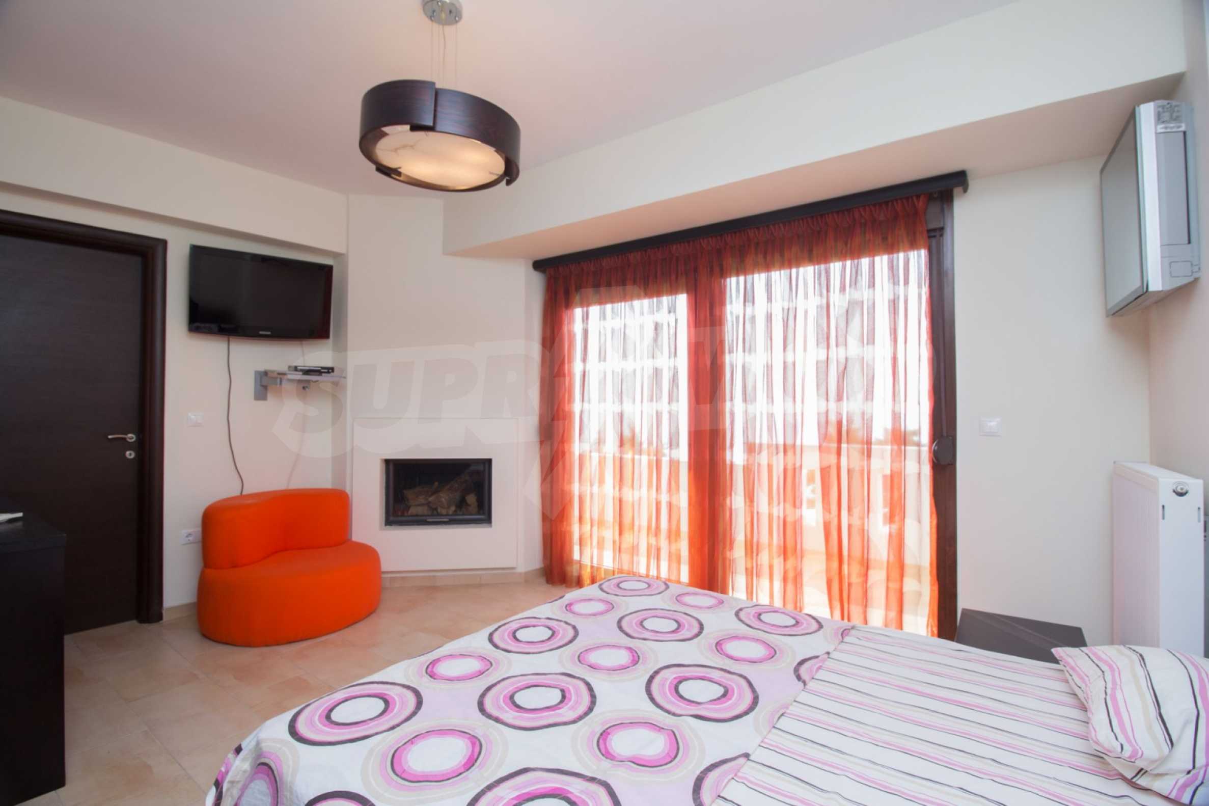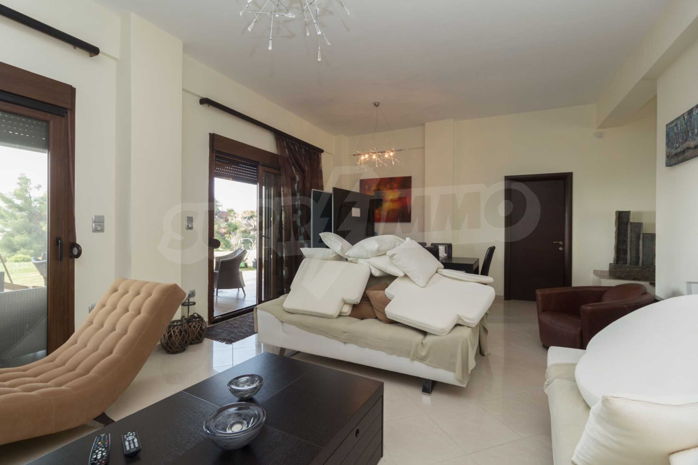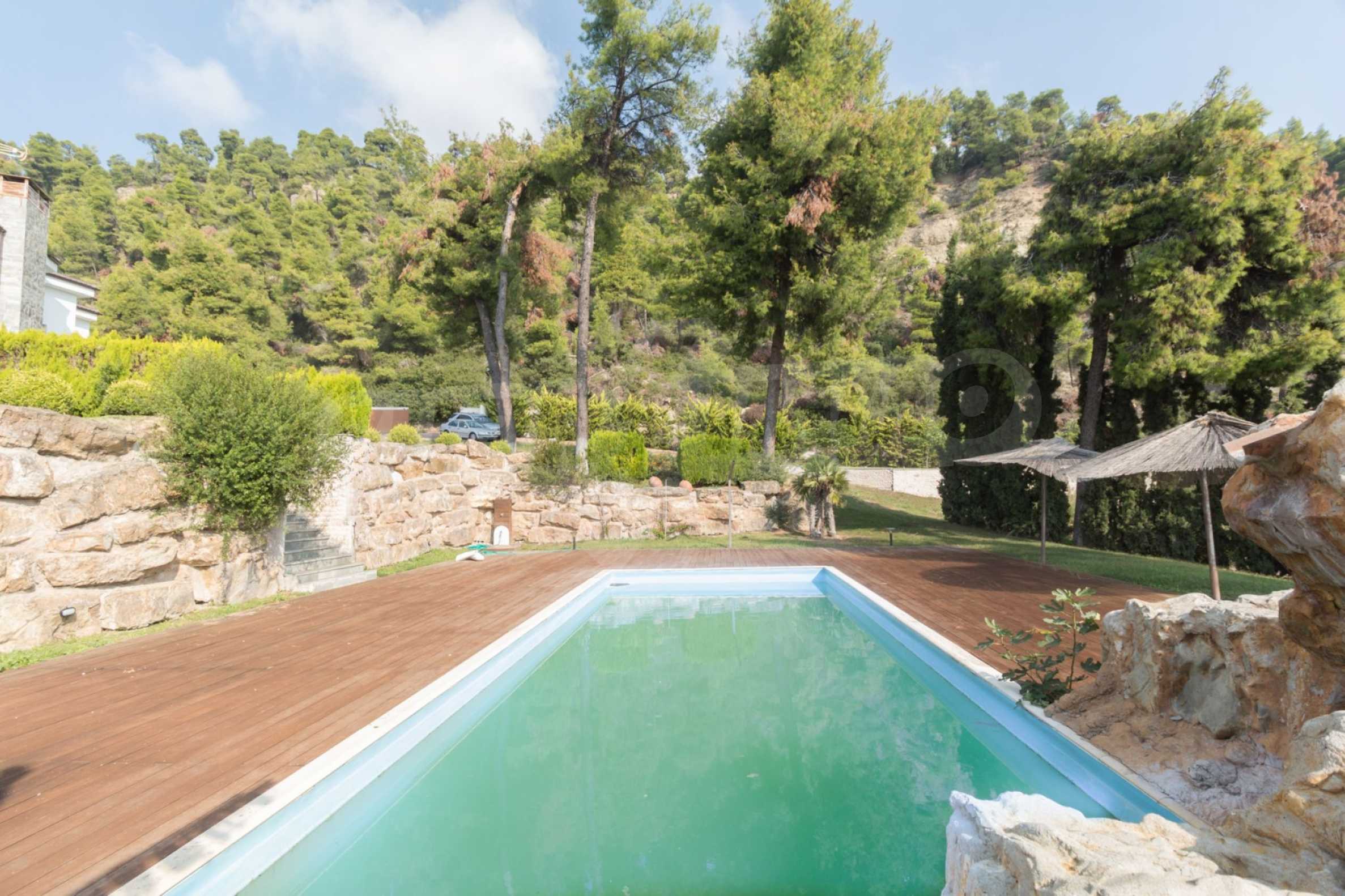 Schöne Villa mit ausgezeichneter Lage im Feriendorf Possidi, Teil des Kassandra-Arms auf Chalkidiki. Die Villa ist von einem Kiefernwald umgeben. Es wurde 2008 erbaut und hat eine Fläche von 200 qm. Bestehend aus einem großen Wohnzimmer mit Kamin, separater Küche, vier Schlafzimmern und drei Bädern mit Toiletten. Die Heizung erfolgt durch Kamin und lokale Heizung sowie Klimaanlagen. Das Anwesen ist mit einer gepanzerten Haustür, eigener Wasserquelle, Balkon, Garage, Schrank, Parkplatz ausgestattet.