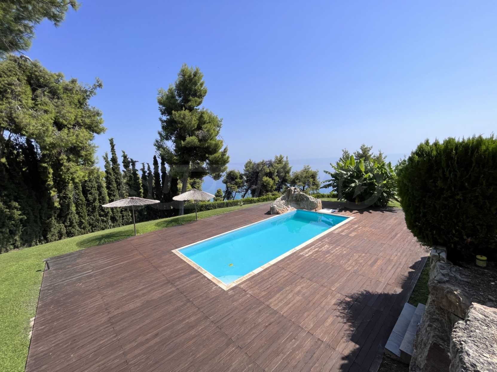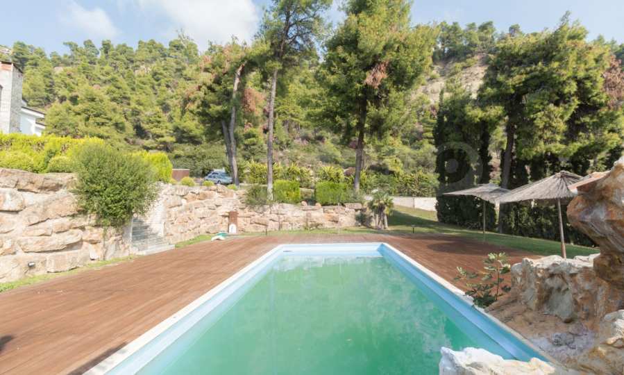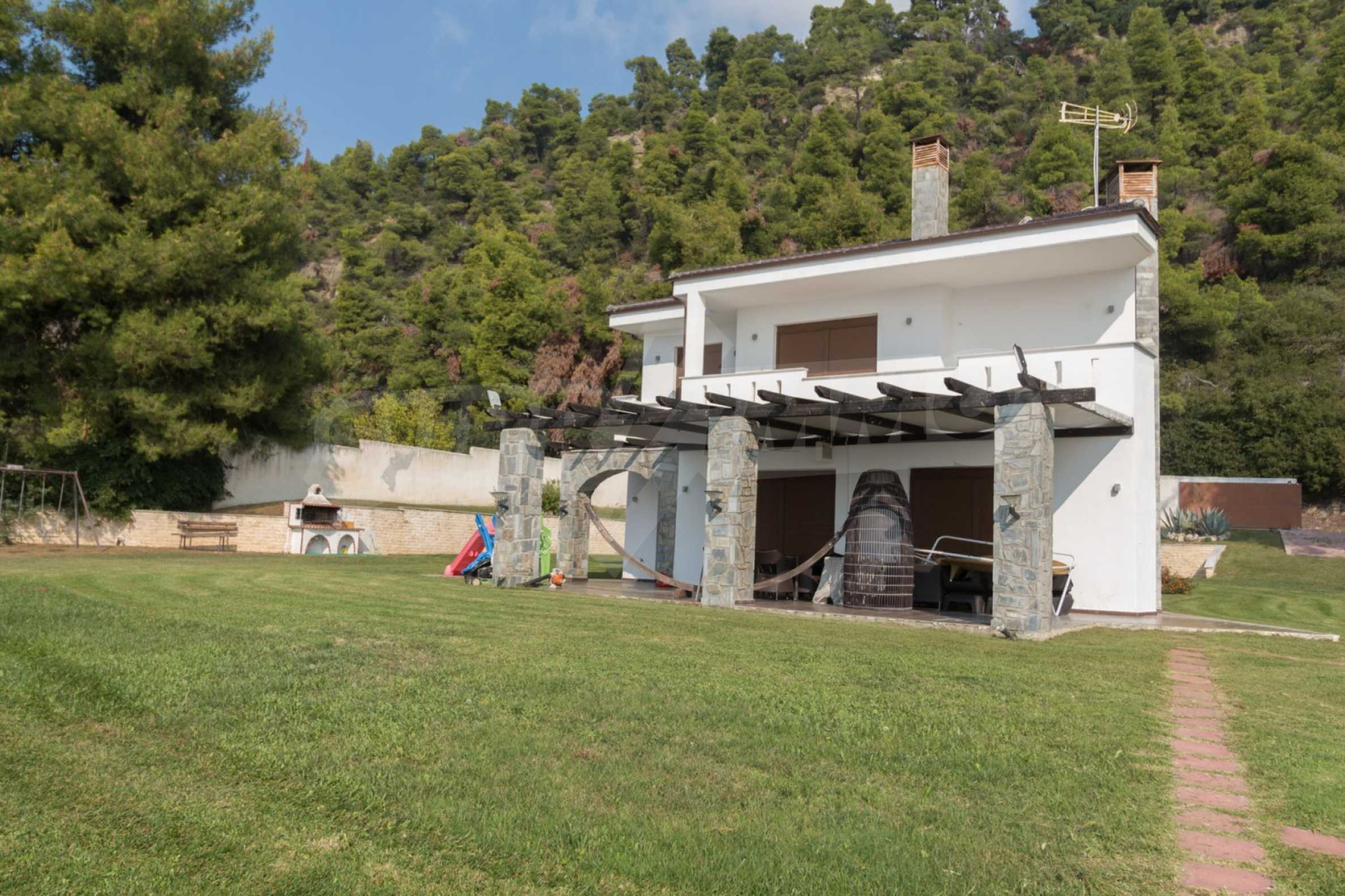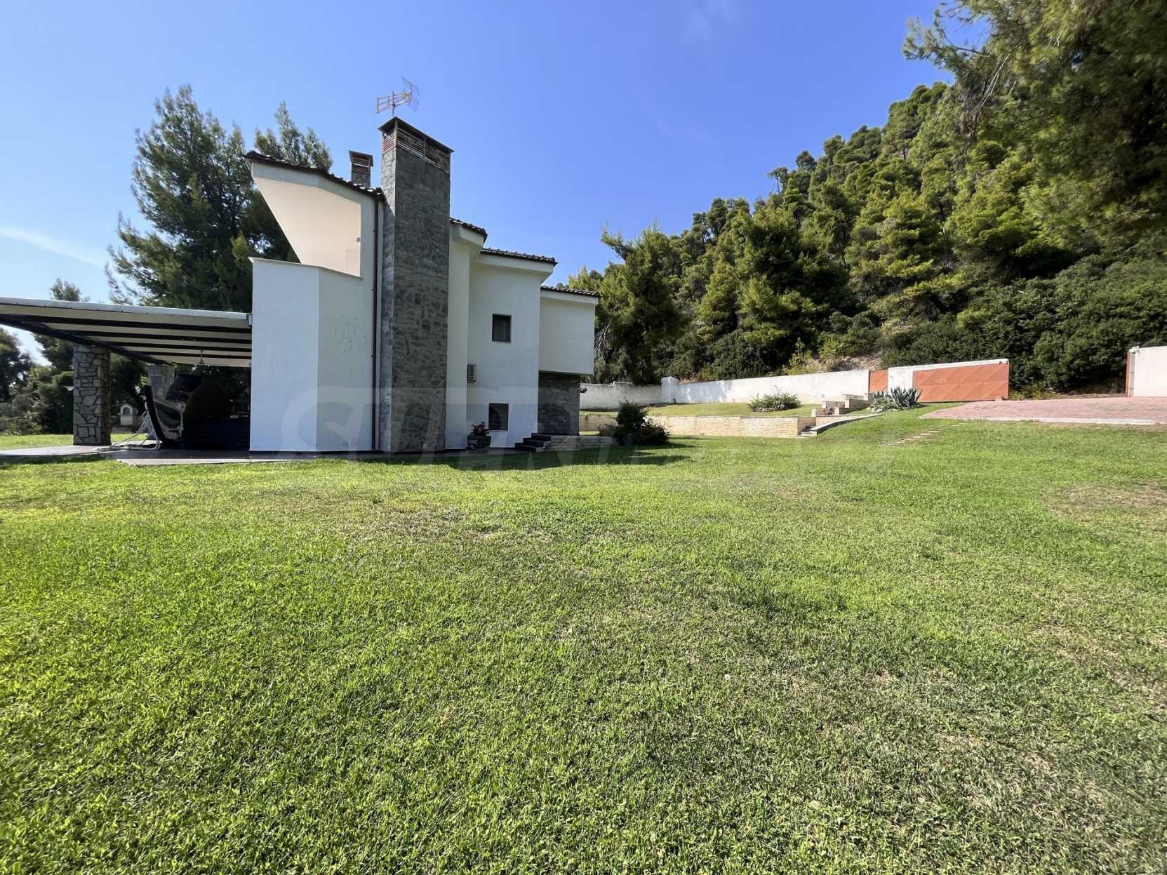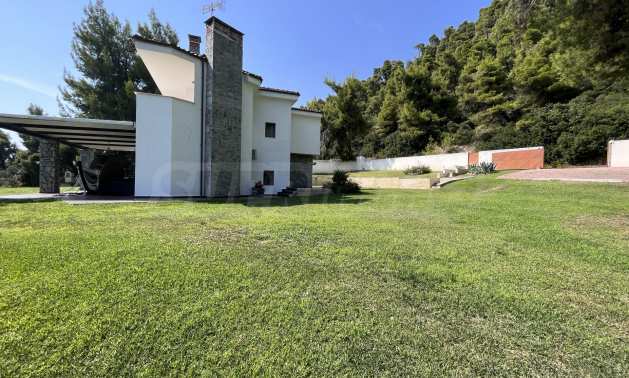 Schöne Villa mit ausgezeichneter Lage im Feriendorf Possidi, Teil des Kassandra-Arms auf Chalkidiki. Die Villa ist von einem Kiefernwald umgeben. Es wurde 2008 erbaut und hat eine Fläche von 200 qm. Bestehend aus einem großen Wohnzimmer mit Kamin, separater Küche, vier Schlafzimmern und drei Bädern mit Toiletten. Die Heizung erfolgt durch Kamin und lokale Heizung sowie Klimaanlagen. Das Anwesen ist mit einer gepanzerten Haustür, eigener Wasserquelle, Balkon, Garage, Schrank, Parkplatz ausgestattet.