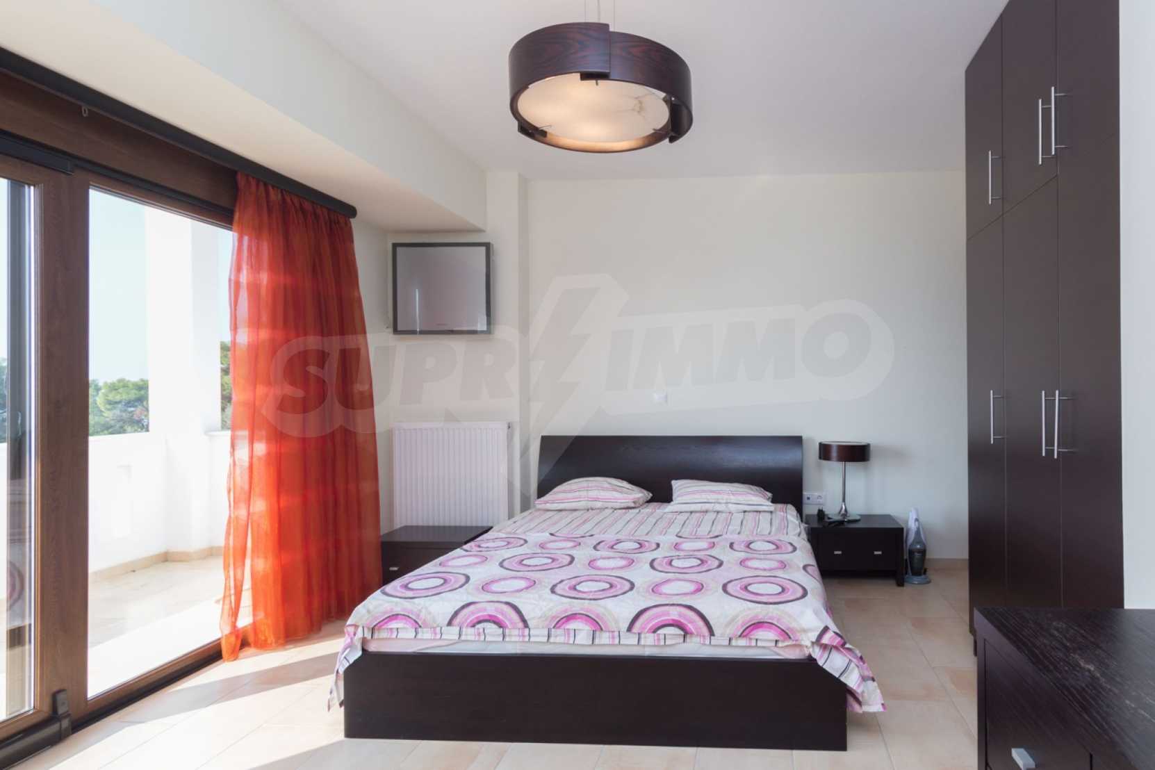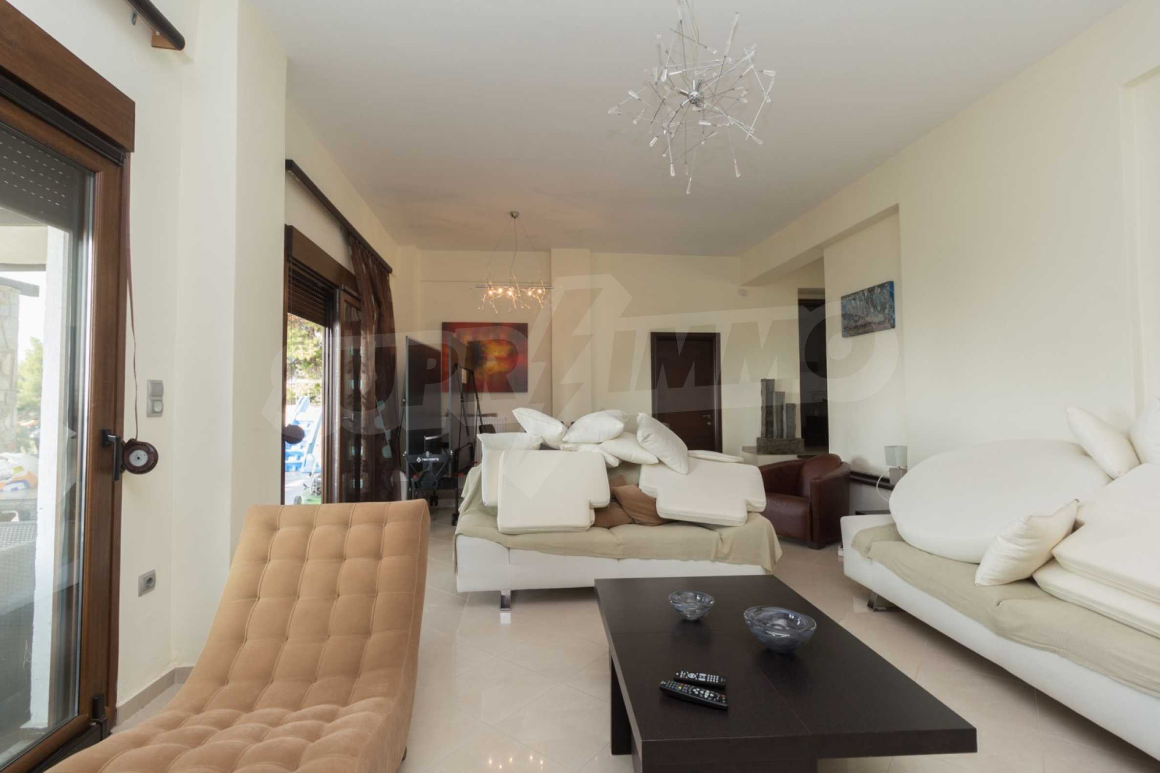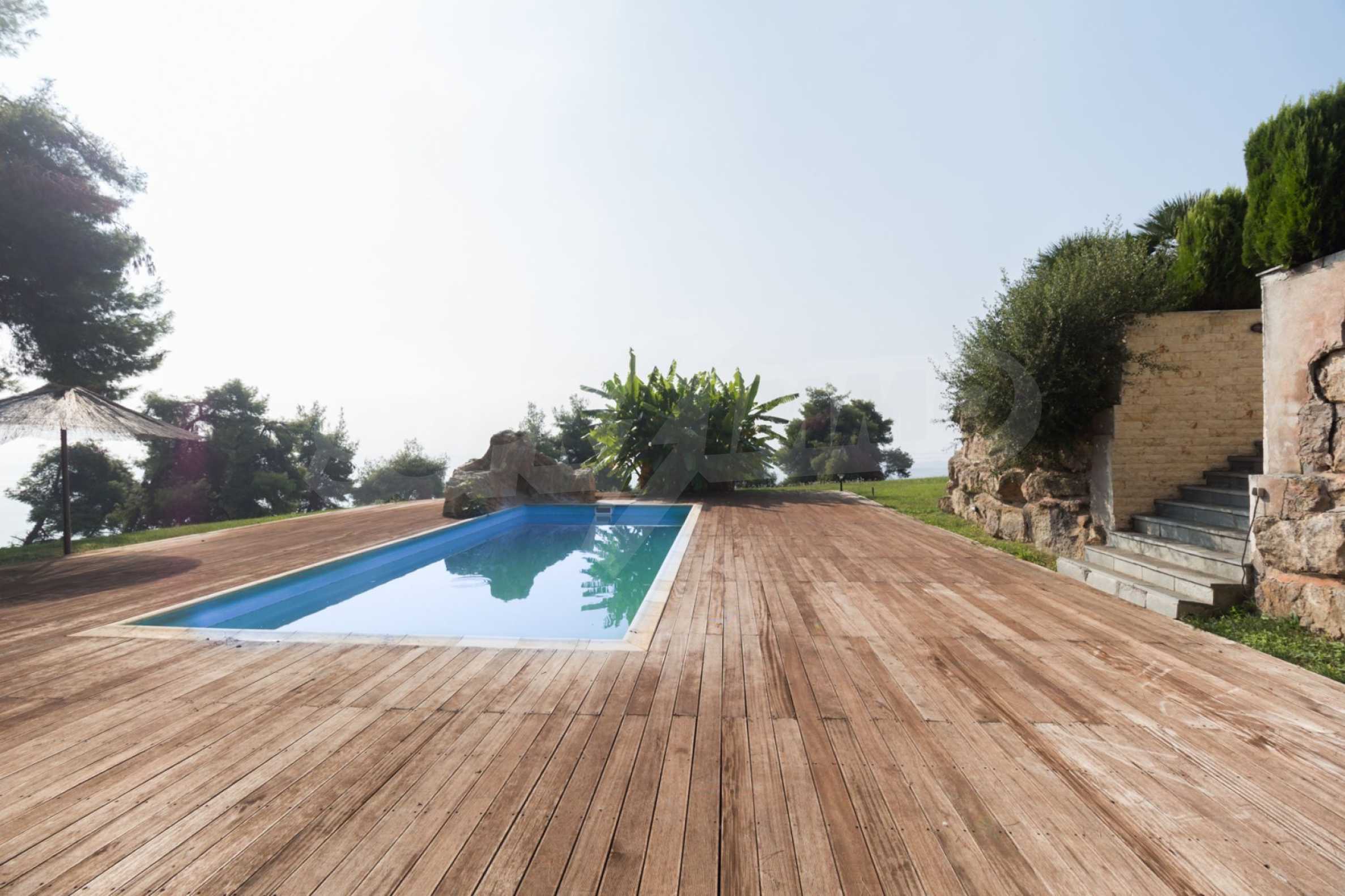Schöne Villa mit ausgezeichneter Lage im Feriendorf Possidi, Teil des Kassandra-Arms auf Chalkidiki. Die Villa ist von einem Kiefernwald umgeben. Es wurde 2008 erbaut und hat eine Fläche von 200 qm. Bestehend aus einem großen Wohnzimmer mit Kamin, separater Küche, vier Schlafzimmern und drei Bädern mit Toiletten. Die Heizung erfolgt durch Kamin und lokale Heizung sowie Klimaanlagen. Das Anwesen ist mit einer gepanzerten Haustür, eigener Wasserquelle, Balkon, Garage, Schrank, Parkplatz ausgestattet.