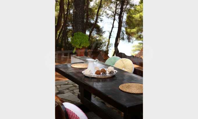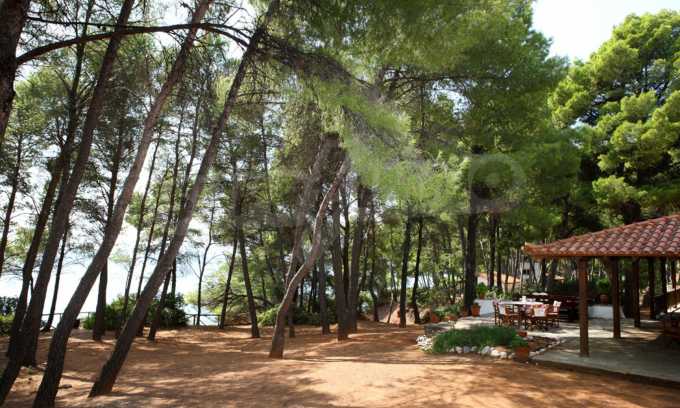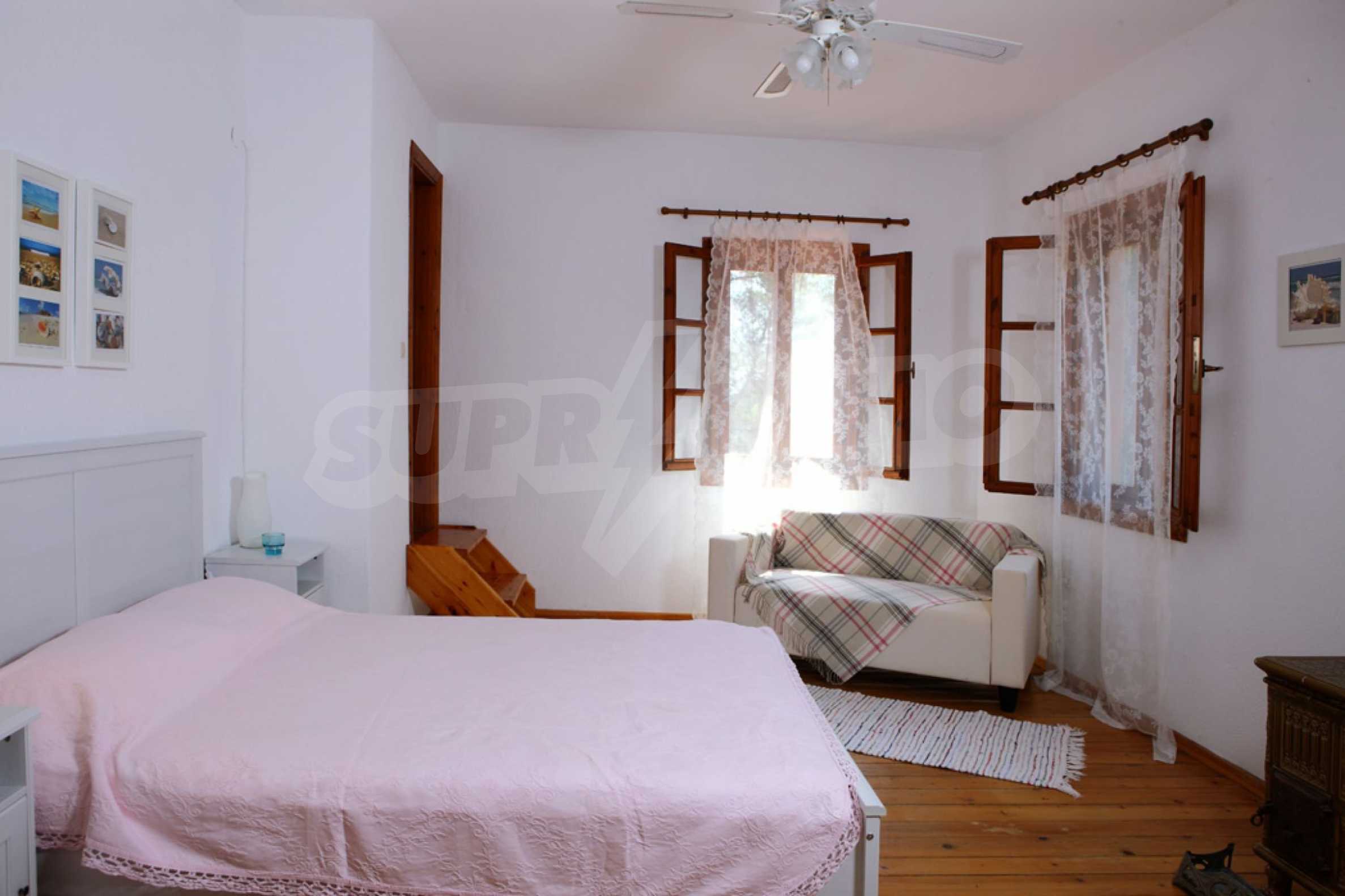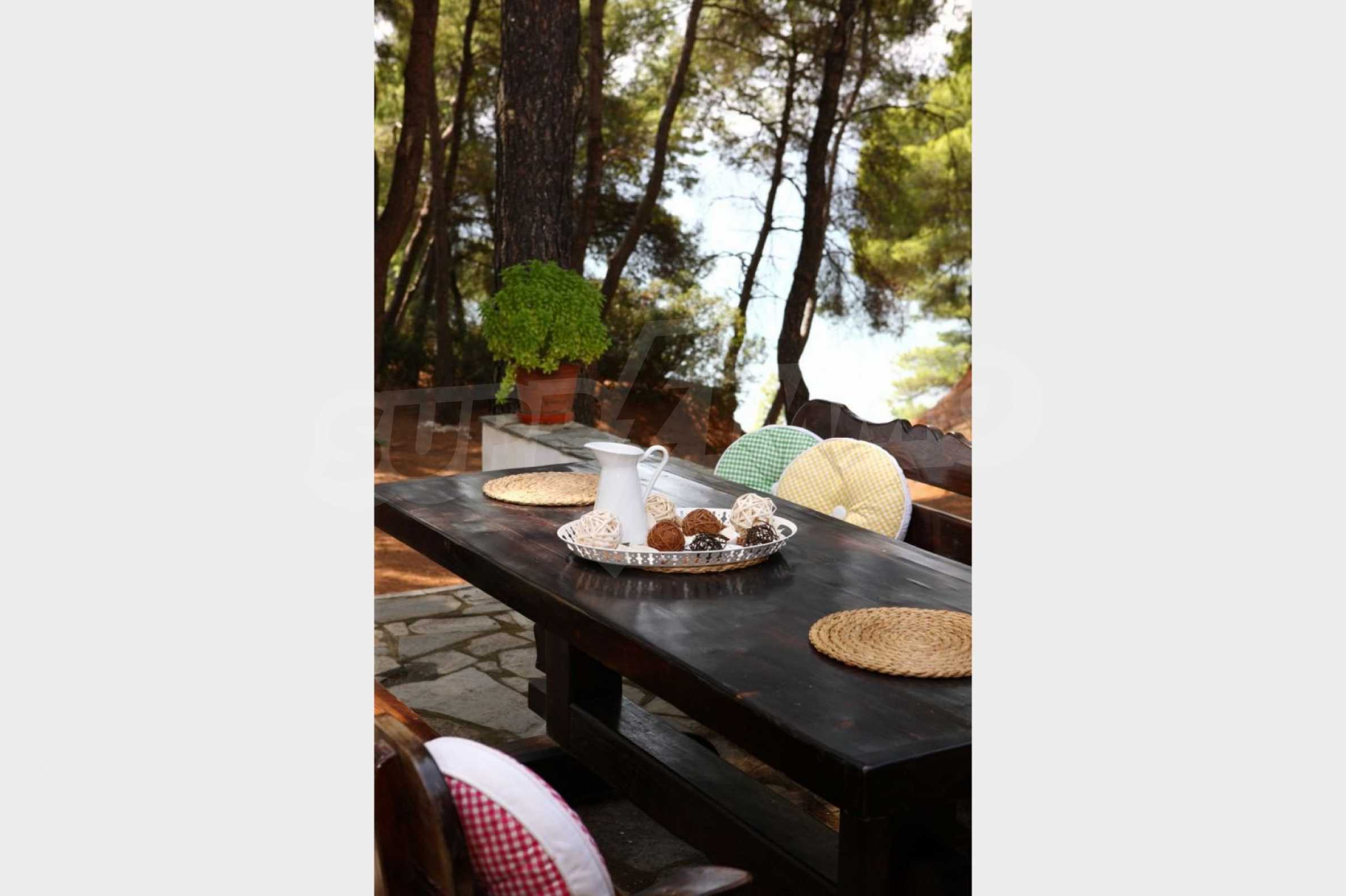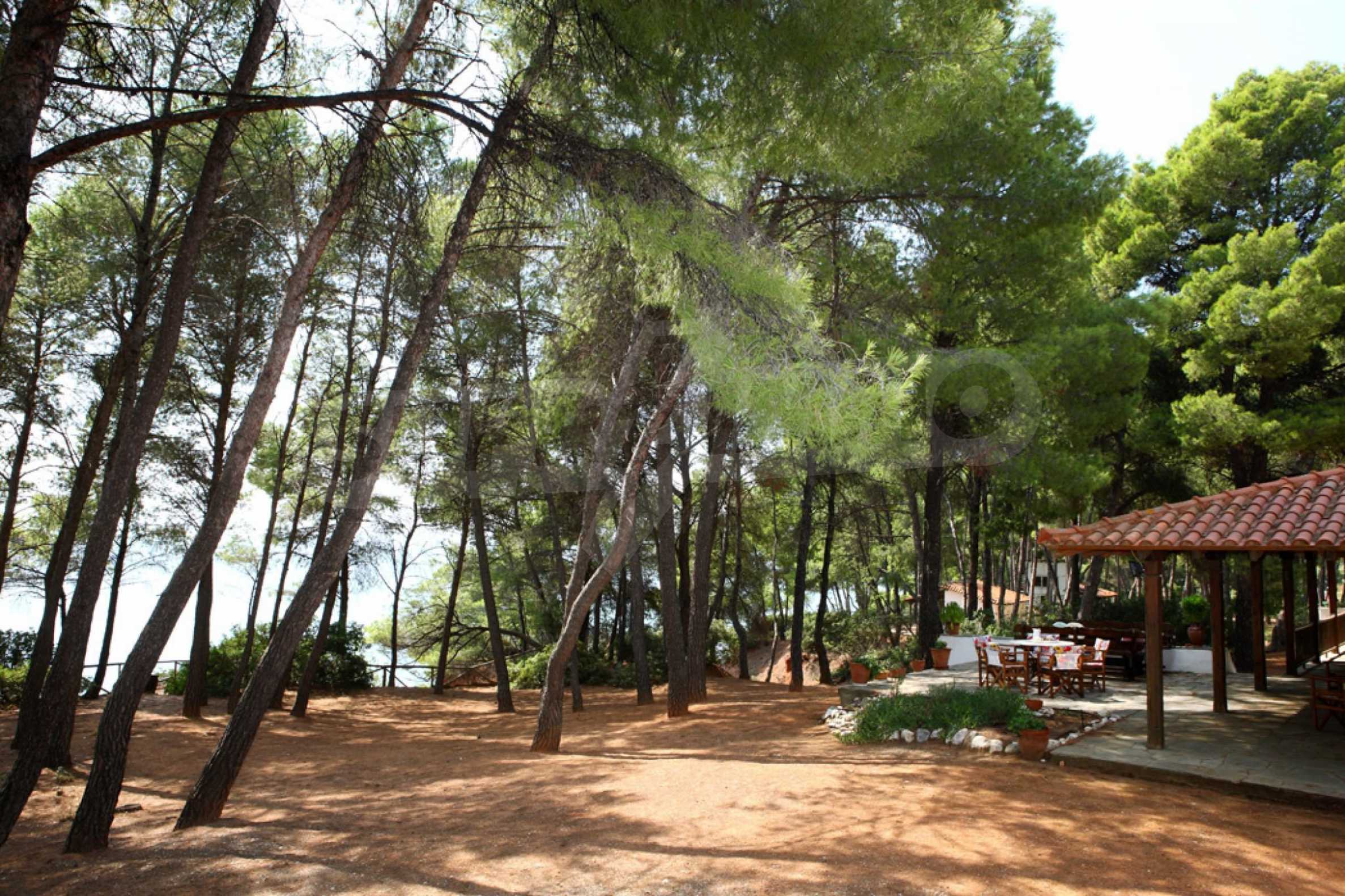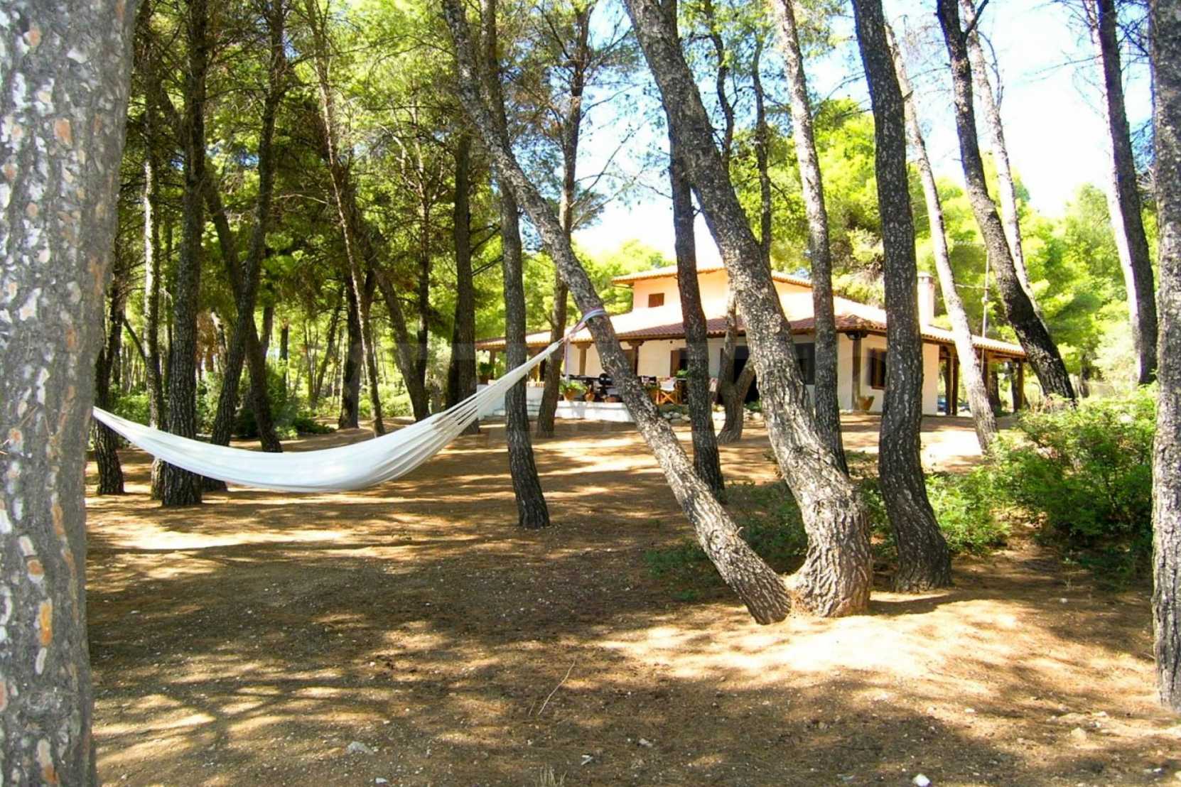 Die Heizung erfolgt über einen Kamin und eine Klimaanlage. Das Anwesen verfügt über Holzfenster und Holzböden. Das Anwesen verfügt über einen Schrank, Keller und Parkplatz. Die Unterkunft bietet Meerblick und der Strand ist in der Nähe. Rund um das Haus gibt es ein großes Grundstück von 5200 qm mit vielen Bäumen und viel Grün.