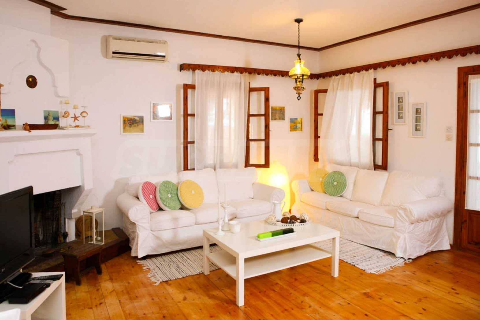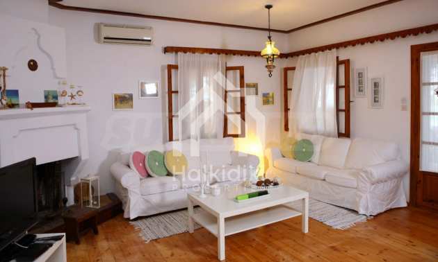 Große und geräumige Villa im Feriendorf Metamorfosi am Sithonia-Arm, Teil der Halbinsel Chalkidiki. Die Villa wurde 1978 erbaut und erstreckt sich über eine Fläche von 255 qm. Das Haus ist auf drei Ebenen gebaut und bietet fünf Schlafzimmer und drei Badezimmer. Auf der ersten Ebene befinden sich zwei Schlafzimmer und ein Badezimmer. Auf der zweiten Ebene gibt es eine Küche und ein großes Wohnzimmer, zwei Schlafzimmer und ein Badezimmer, und auf der dritten Ebene gibt es ein weiteres Schlafzimmer und ein Badezimmer. Das Haus ist voll möbliert und mit allem ausgestattet, was Sie brauchen.