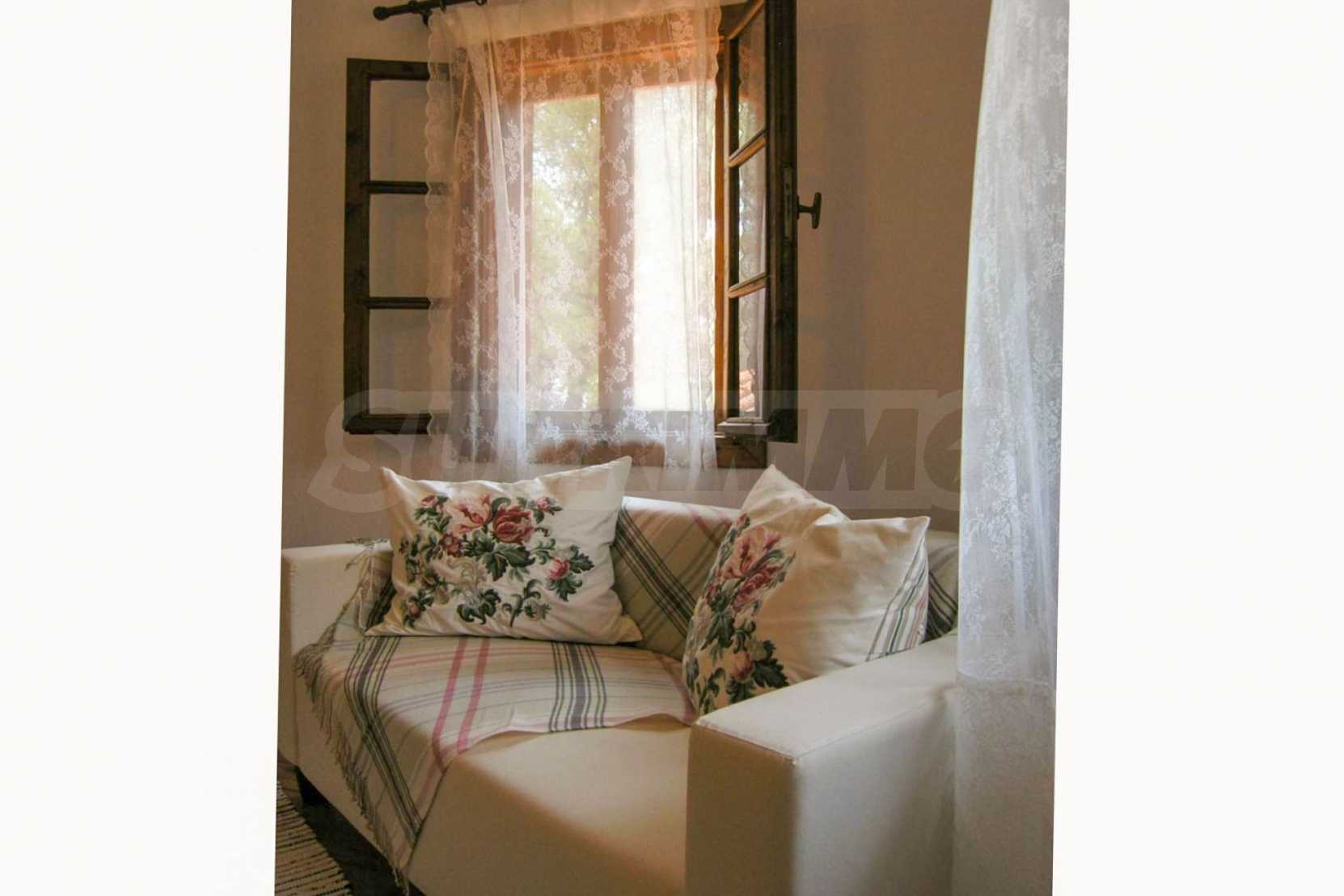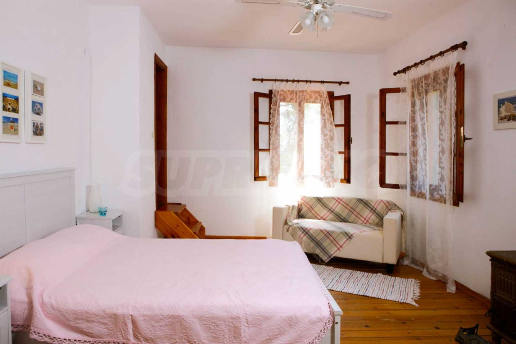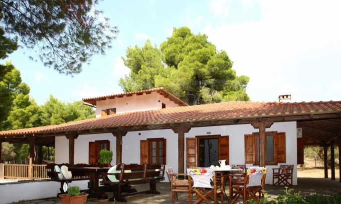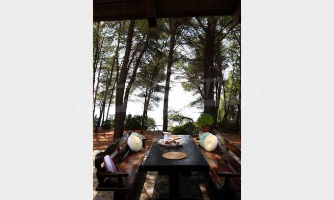 Die Heizung erfolgt über einen Kamin und eine Klimaanlage. Das Anwesen verfügt über Holzfenster und Holzböden. Das Anwesen verfügt über einen Schrank, Keller und Parkplatz. Die Unterkunft bietet Meerblick und der Strand ist in der Nähe. Rund um das Haus gibt es ein großes Grundstück von 5200 qm mit vielen Bäumen und viel Grün.