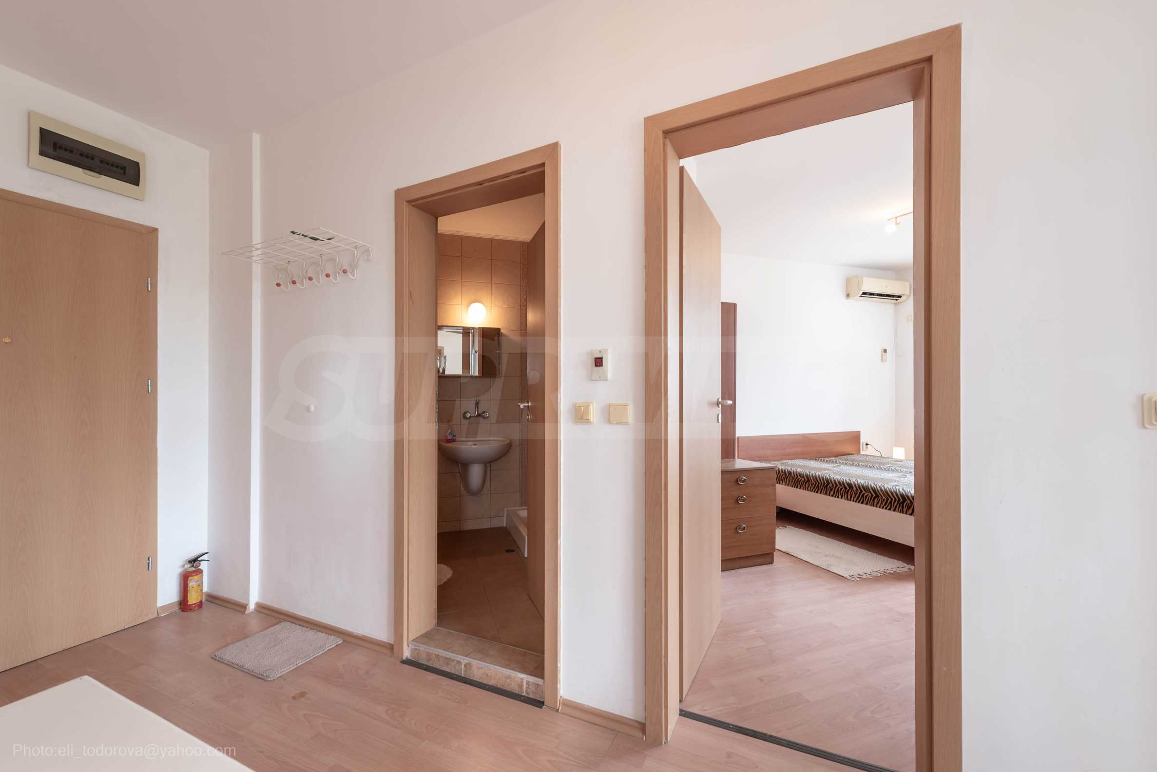 Es besteht aus einer Panoramaterrasse, 2 Schlafzimmern, Wohnzimmer mit Kochnische, 2 Badezimmern mit Toiletten (eines davon gehört zum Hauptschlafzimmer). Die Unterkunft bietet Aussicht auf den Pool, das Grün des Resorts und das Meer.