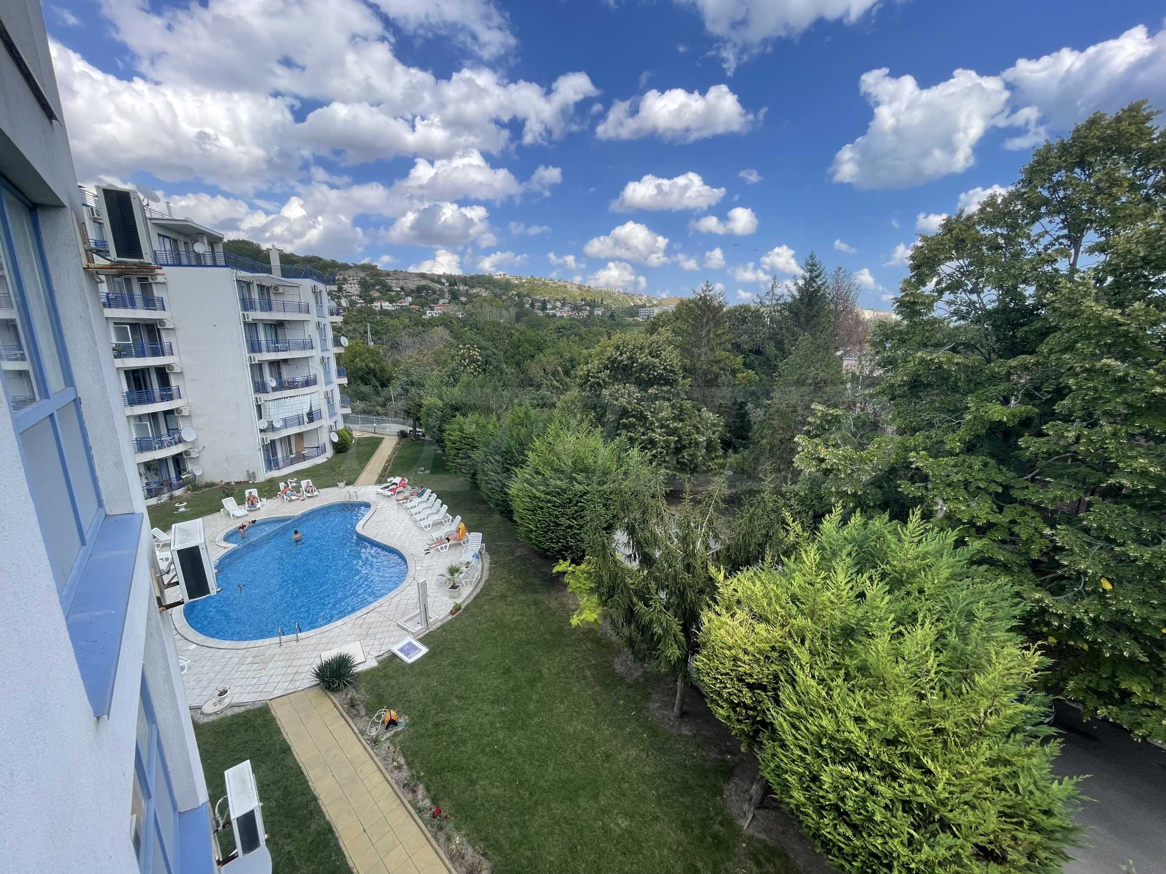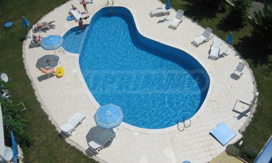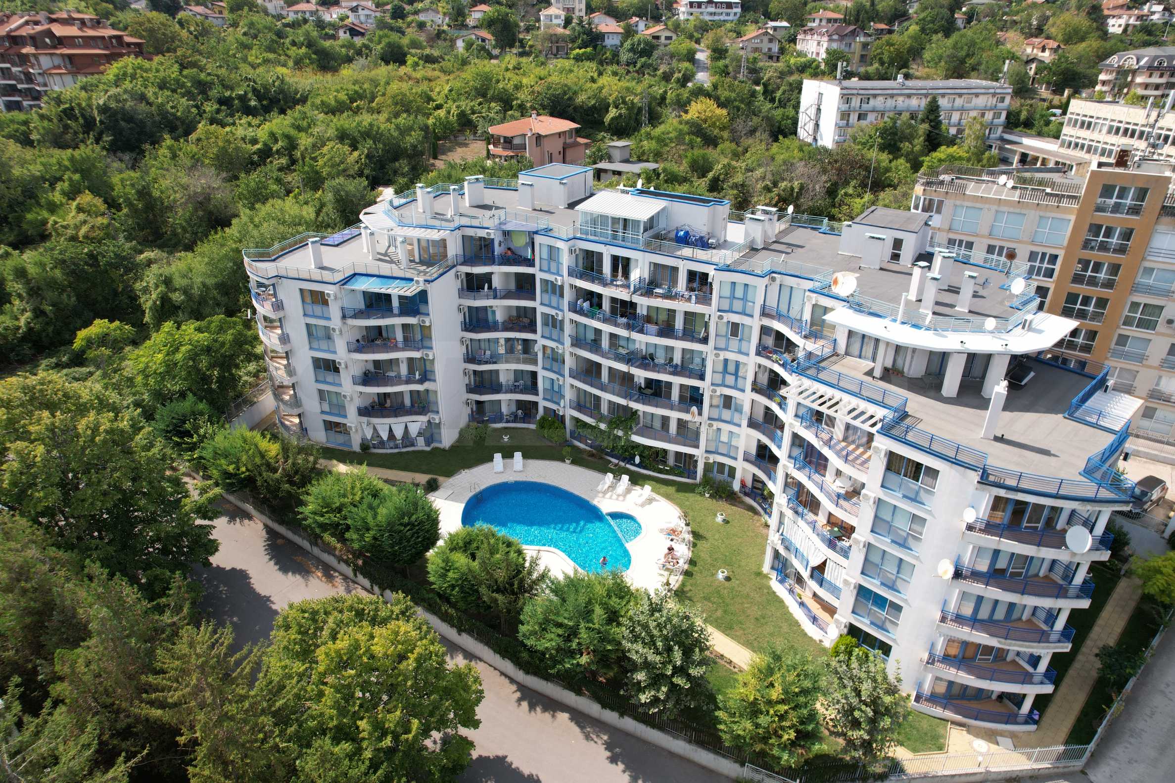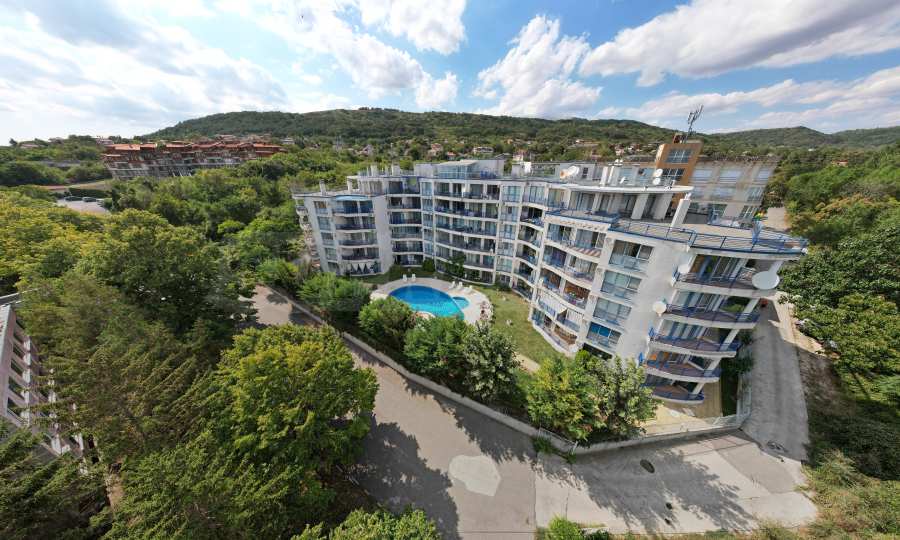 Der Komplex, in dem sich die angebotene Immobilie befindet, besteht aus zwei Spiegelgebäuden, die auf einem Grundstück von 2950 m² errichtet wurden. Die Gesamtzahl der Apartments beträgt 84. Zu den weiteren Annehmlichkeiten zählen ein Außenpool, ein Fitnesscenter und eine Bar.